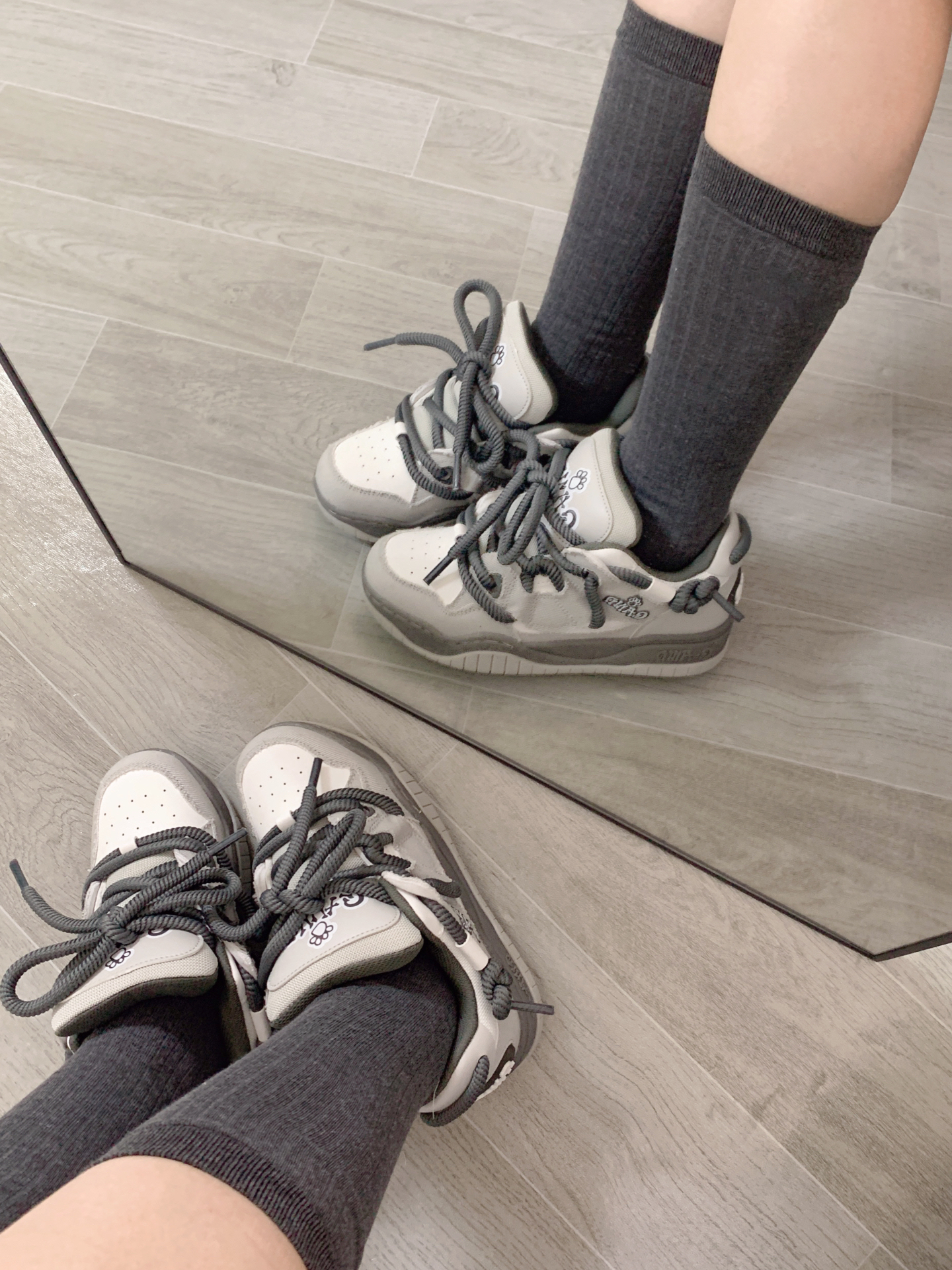 OOTD今日还是经典早秋卫衣穿搭 白色卫衣➕格子百褶裙➕和鞋子同色系灰色小腿袜 不过最近一直下雨☔️真是心疼我心爱的鞋子了 无论是配裙子还是裤子都显得很时尚 灰色板鞋配上灰色的小腿袜真是别有一番风味 时尚与舒适并存了哈哈哈✌🏻