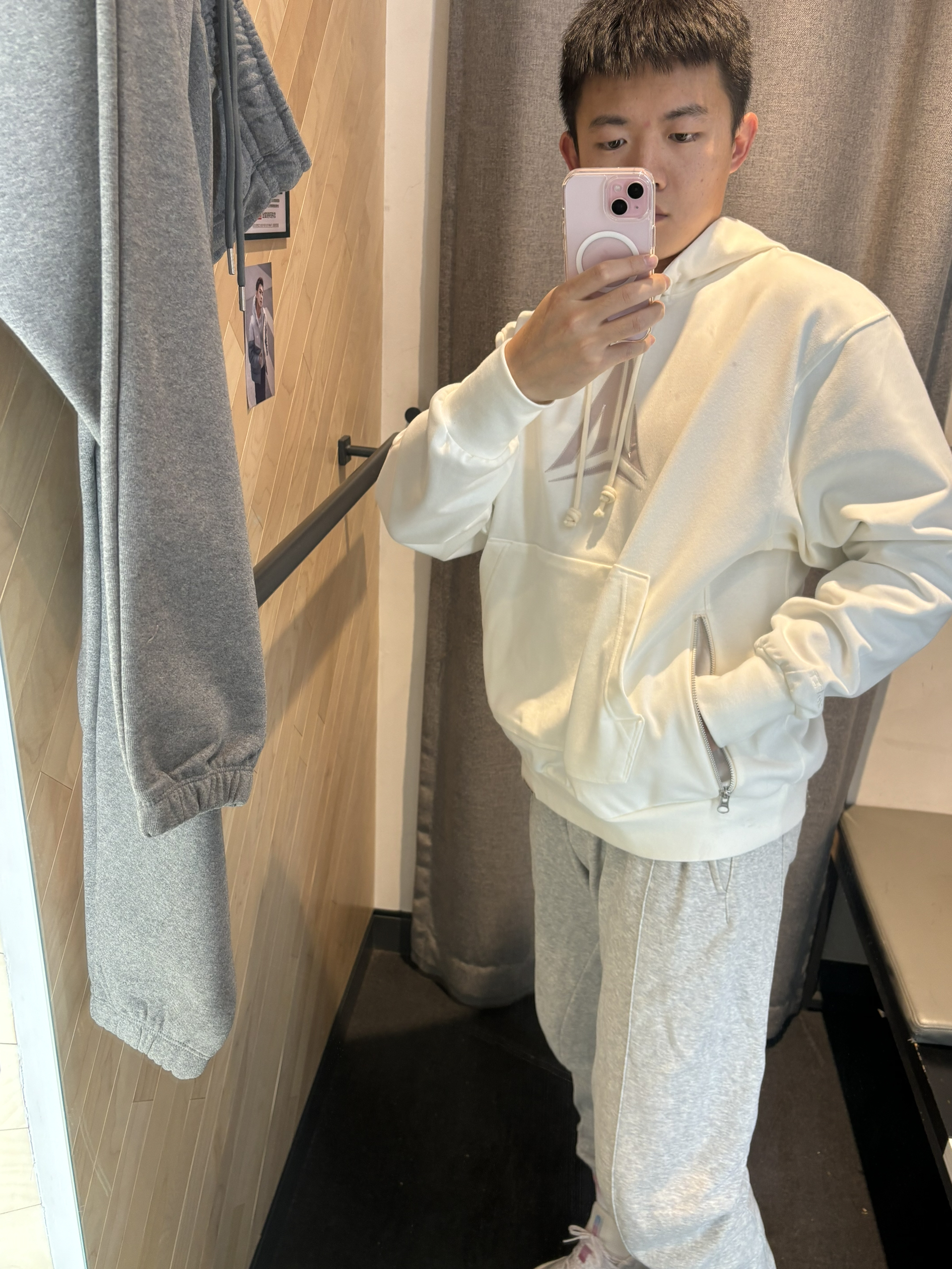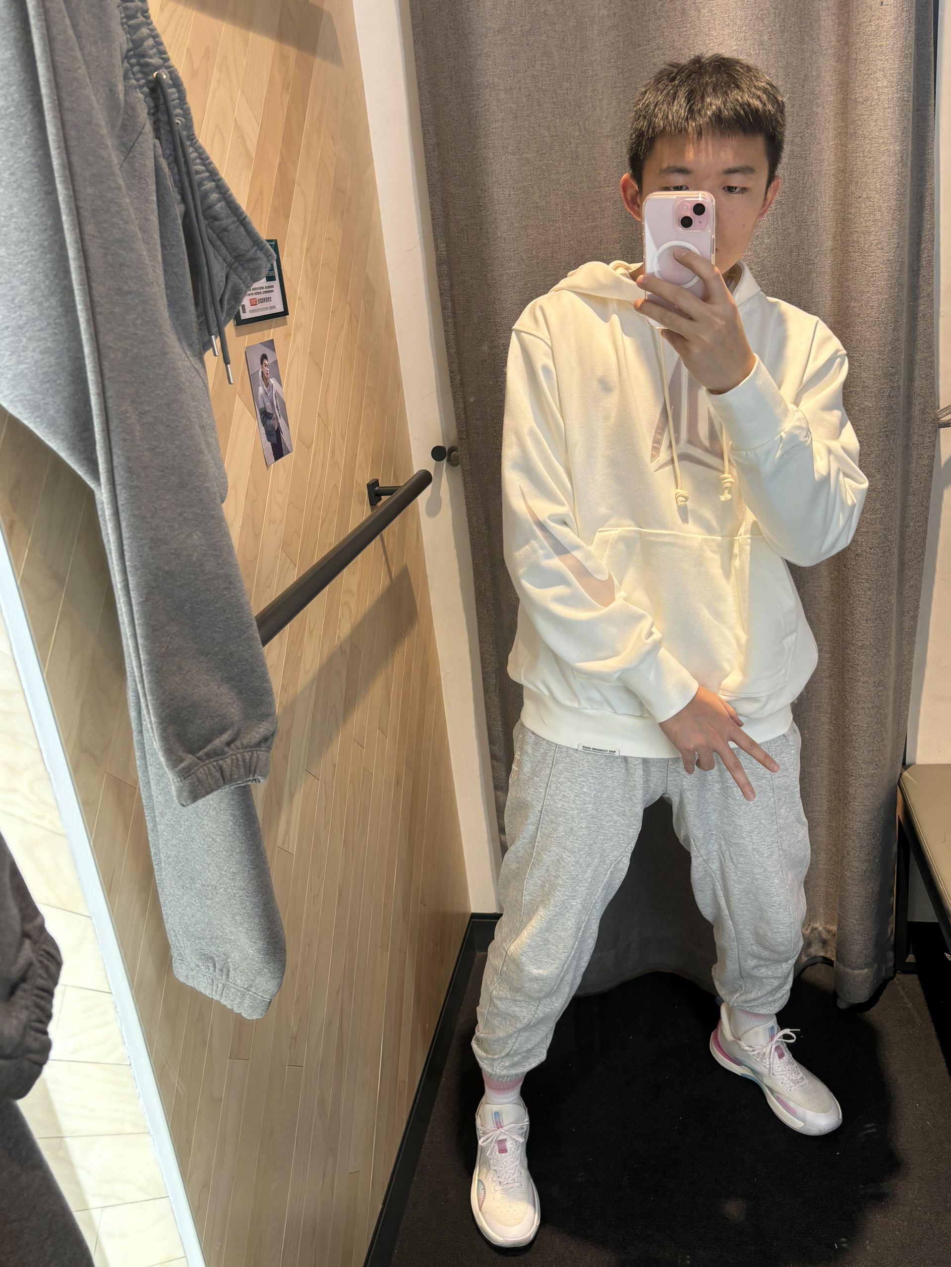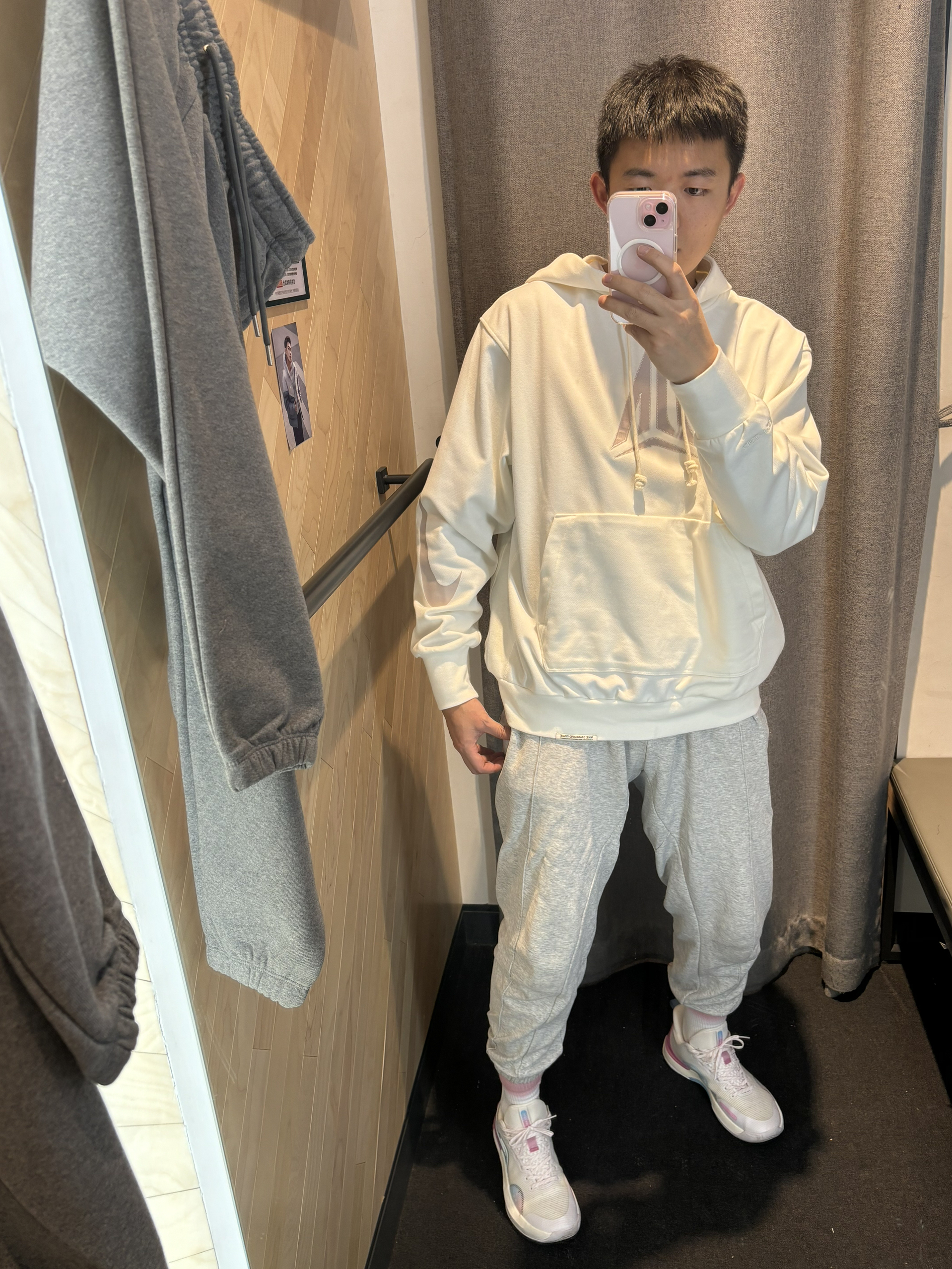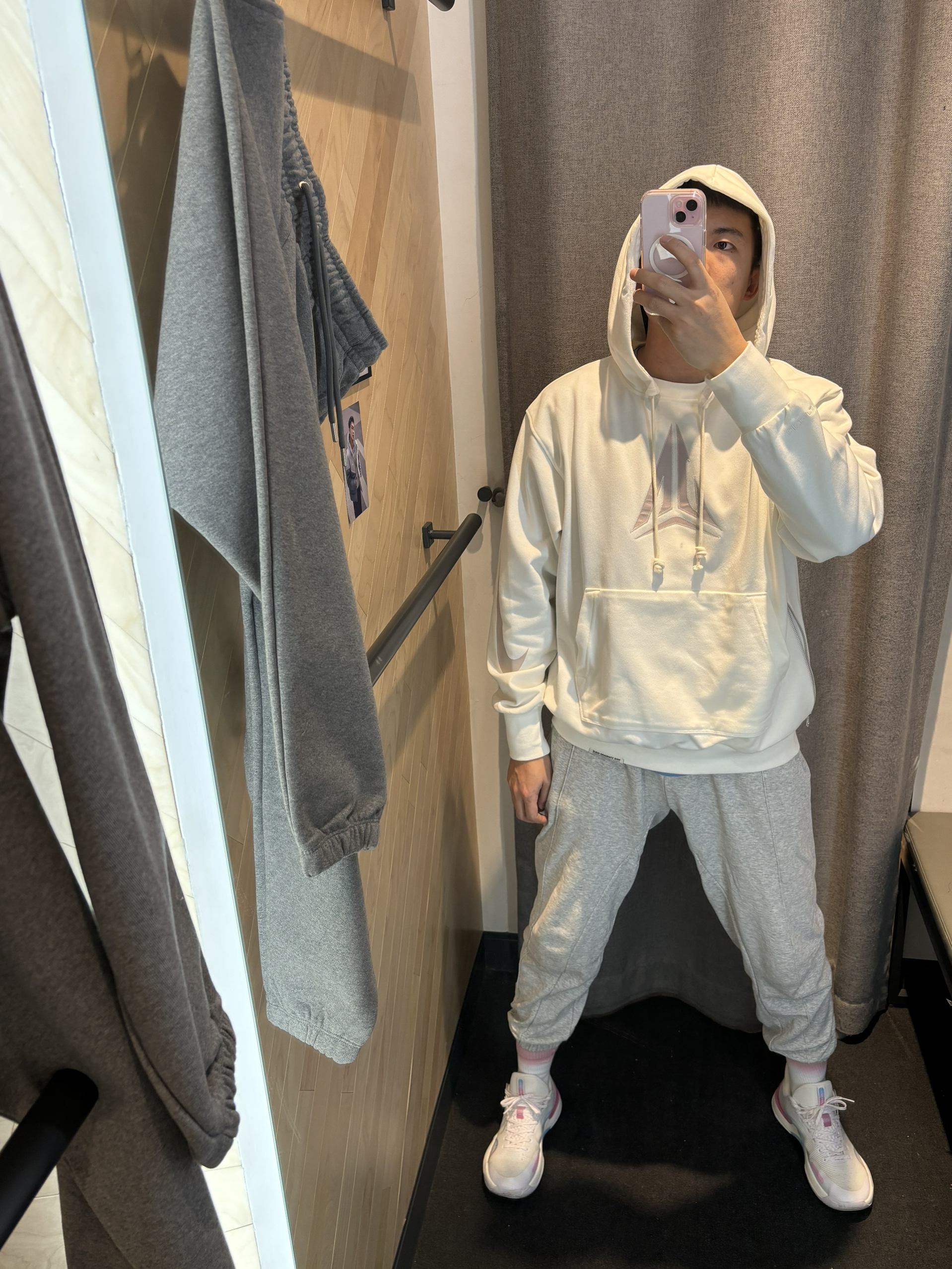 #新年少不了这双鞋 #穿着频率最高的ootd #新年宜扮靓出门 #新鞋你得这么搭 兄弟们莫兰特新卫衣来了 搭配选择白灰色都可以😌 袖口有大nike logo 右边口袋还有拉链可以放东西 莫兰特的标挺好看的 搭配灰色束脚裤,一双简单浅色系球鞋即可 尺码选择xl码 180/70kg