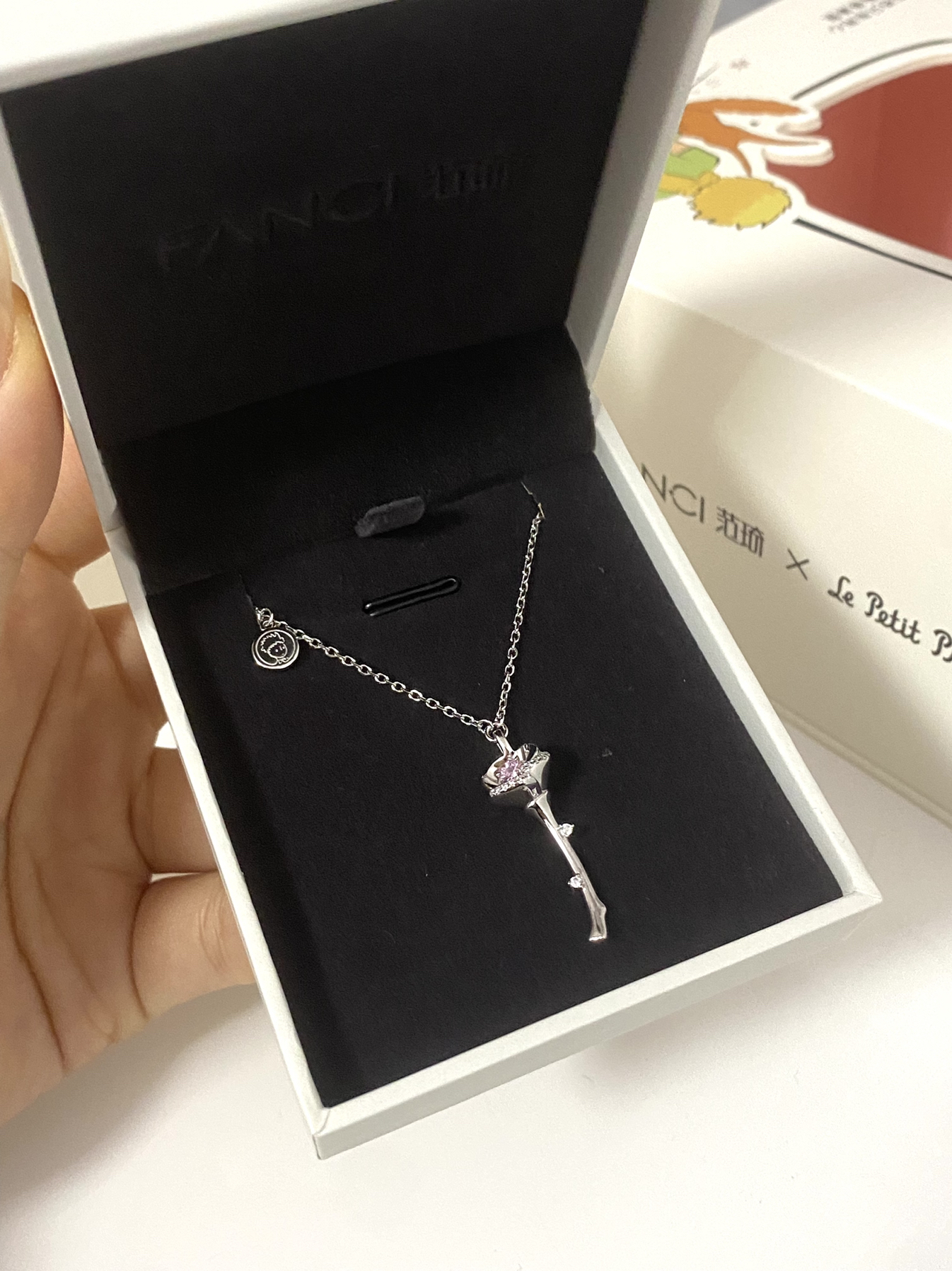 和男朋友一周年纪念日没想到这个大直男居然送我这款范琦和小王子联名限定系列的项链 真的太好看啦!真的很难不爱! 小王子限定款设计超走心 小玫瑰吊坠 镶嵌宝石 简单又高级 材质是925银 不易变形 不易掉色 男朋友这次真的狠狠拿捏住我了!
