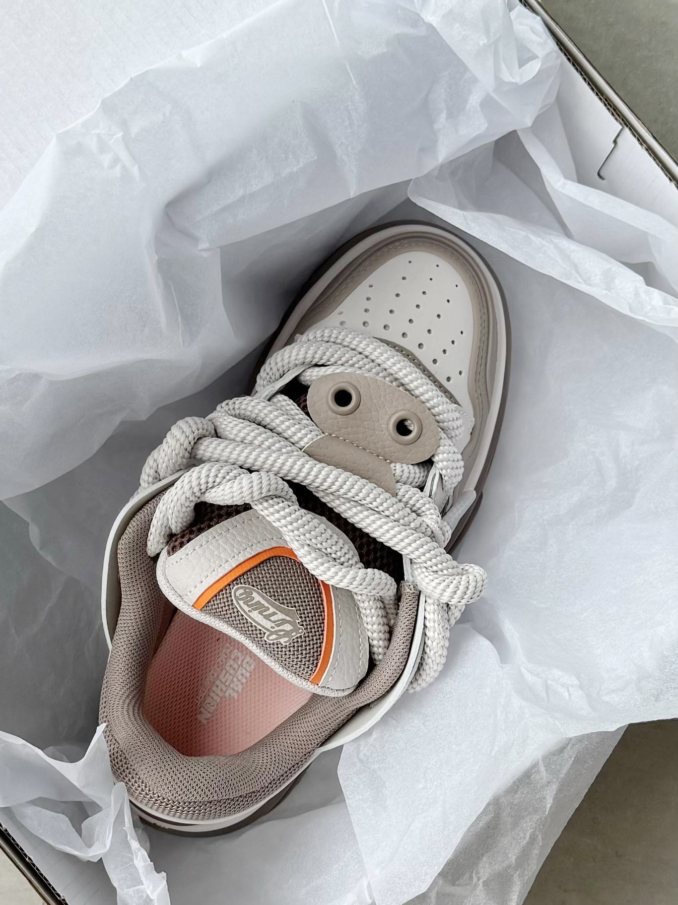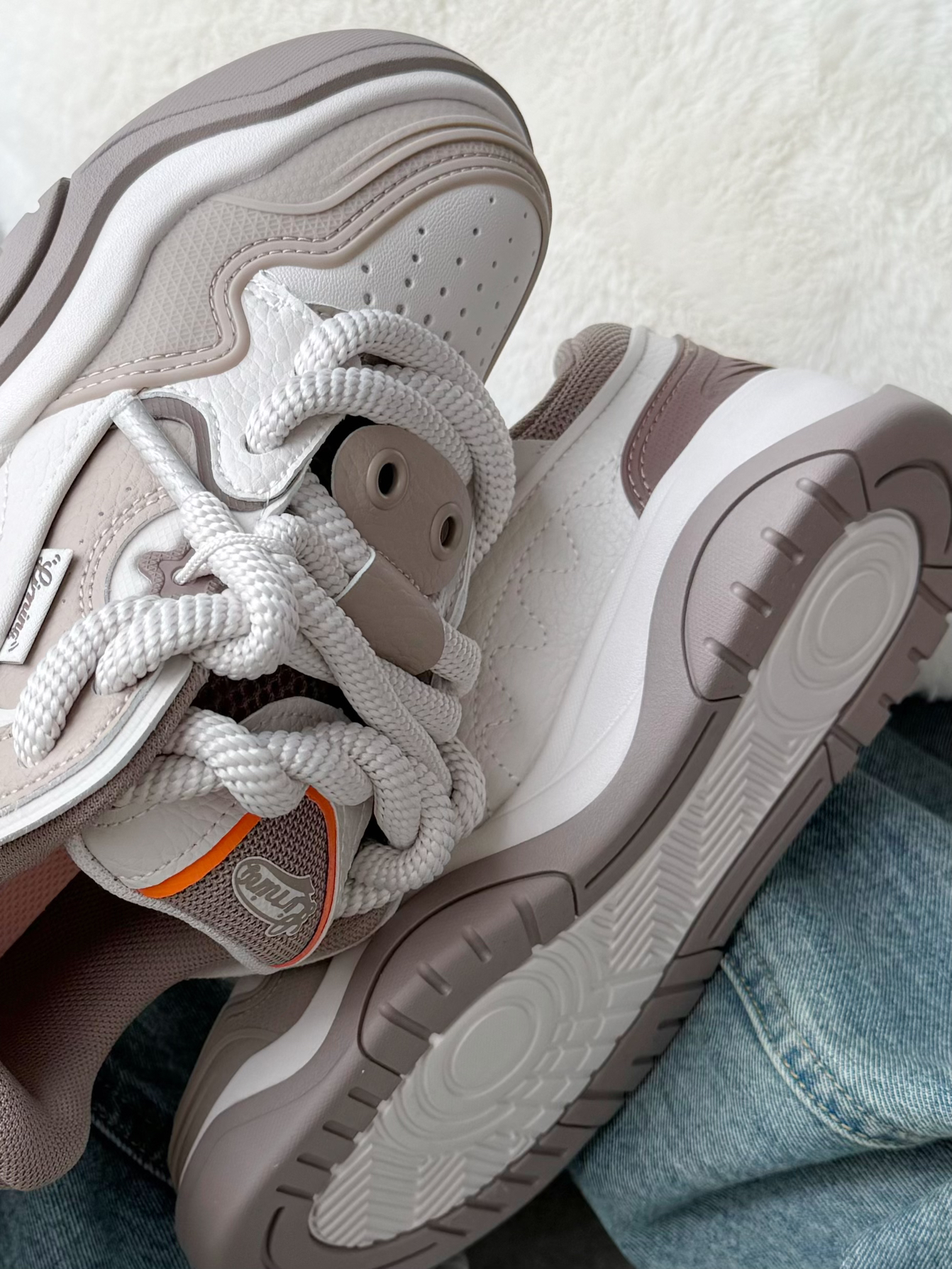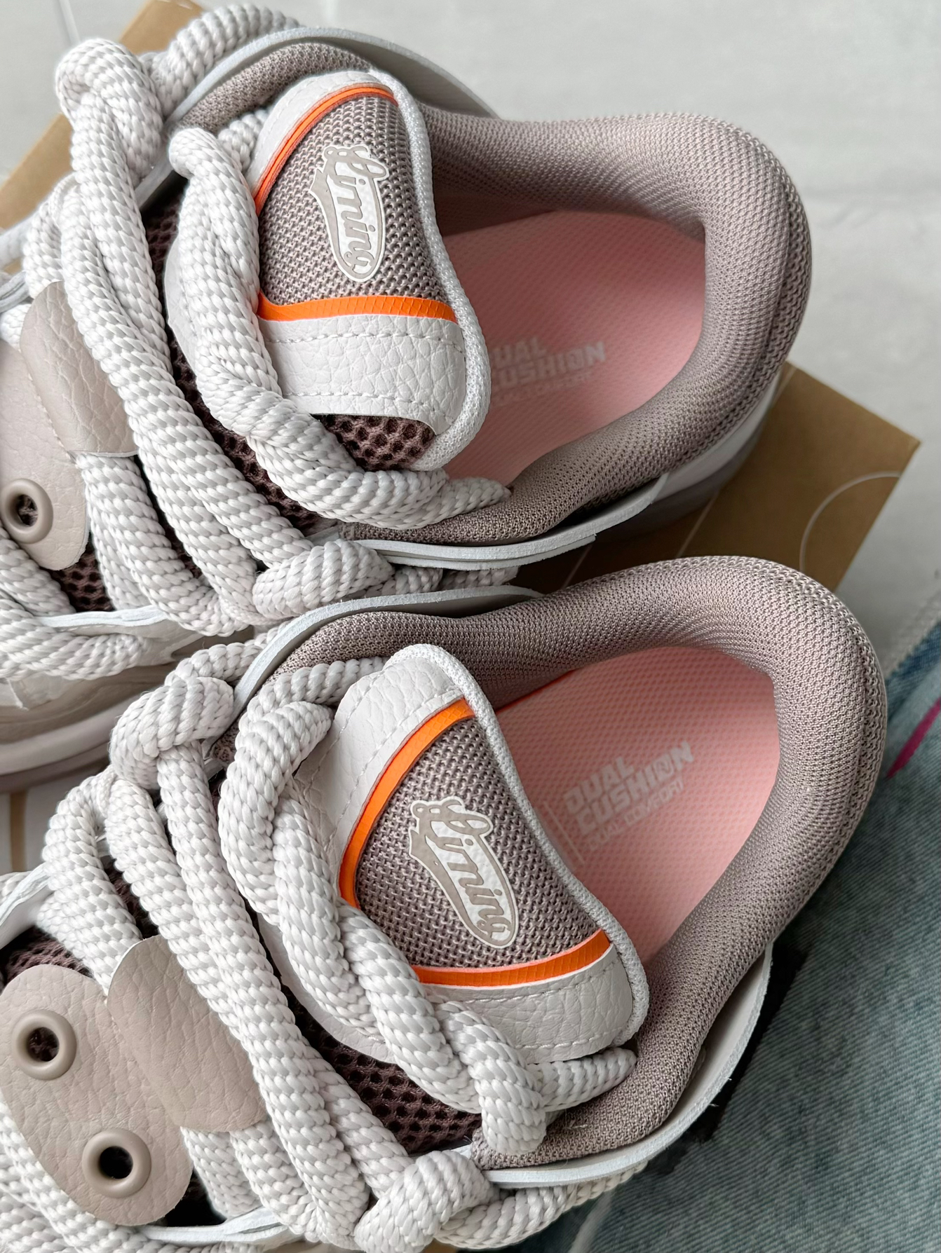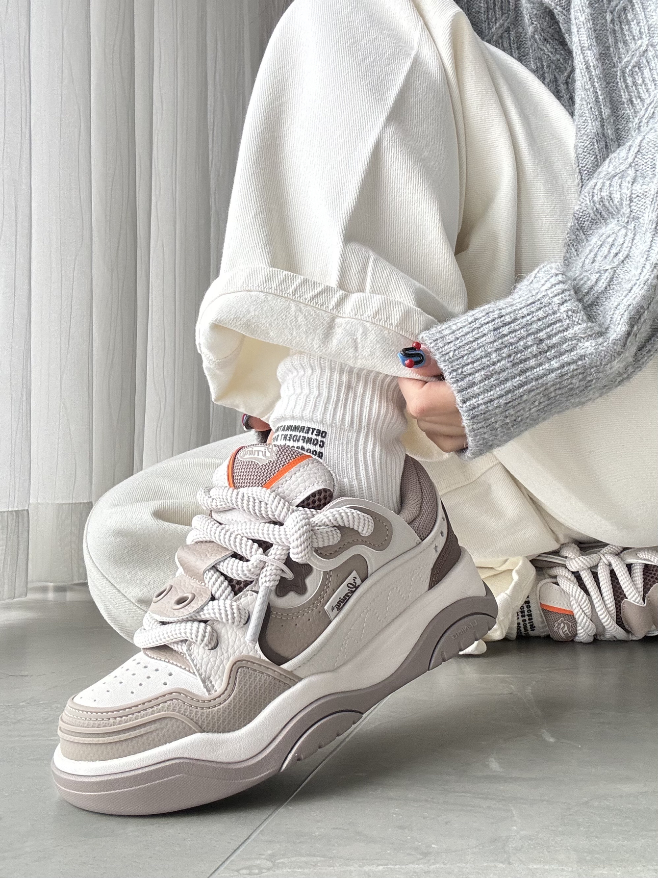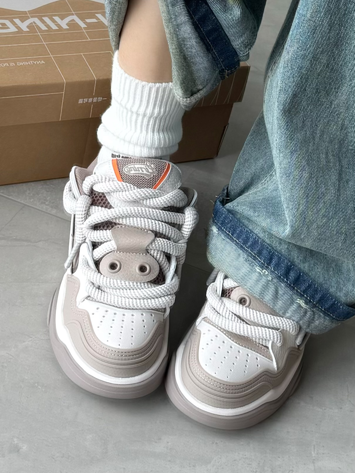 LiNing征程2.0嘭嘭鞋有点小帅有点可爱 整个鞋型都是胖墩墩er的… 上脚不显脚大!反而看上去很乖巧✌🏻 搭配牛仔裤看上去更加街头酷帅一些 搭配裙子短裤什么的可爱又多一点! 厚底大概增高3.4厘米 小个子轻松显高显腿细~