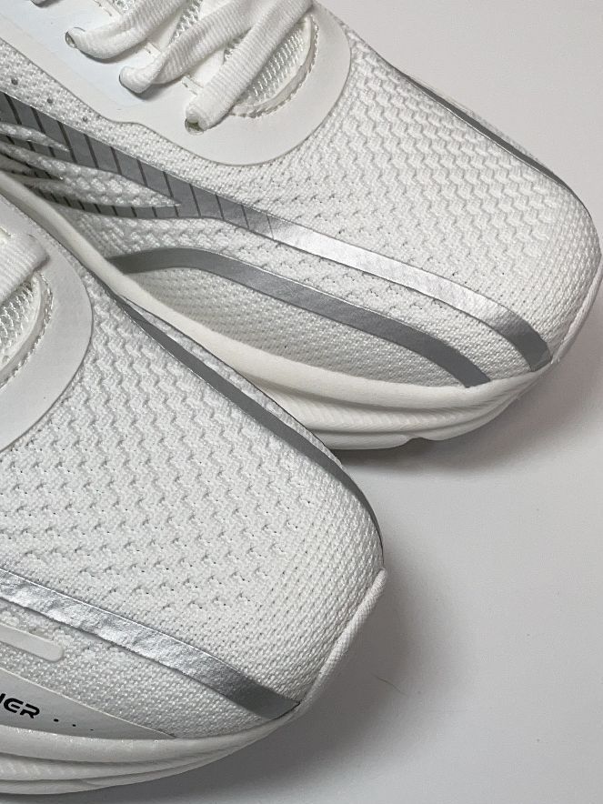 第一眼就被纯白的配色给吸引了 平时无论是跑步还是通勤都很好搭衣服鞋底很软,回弹力表现也不错 跑步的时候能够很好的缓冲和支撑能减轻跑步时候脚步的疲劳感 整体采用网面的材料,跑步的时候很透气鞋底不规则纹理设计,抓地力强,不容易滑倒 很适合平时体测或者锻炼时候穿 100+的价格性价比很高,强烈推荐学生党入手一双