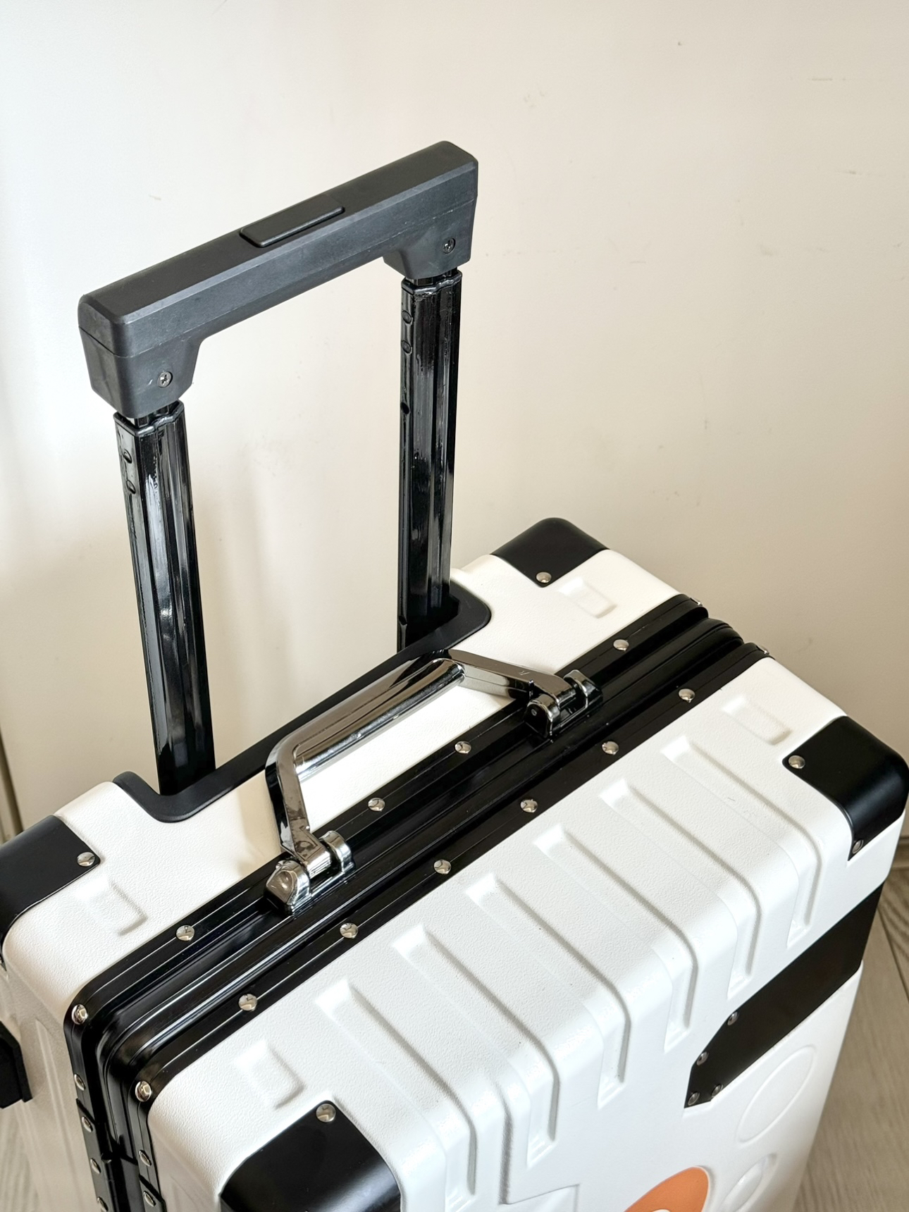 去旅游前入手的行李箱,看了很多最后选了这款行李箱!容量很大滑轮也比较静音,而且材质也是硬硬梆梆很结实的pc材质,韧性好,不怕被摔烂咯。 奶白色磨砂款颜色中和度也比较自然,干干净净的很耐看!最重要的是真的不贵!性价比我觉得蛮高的!! 轮子上静音万向轮,拖起来顺滑声音也不大,很适合咱i人使用~自带两个密码锁双重保障我的行李安全,更加安心了。别看它小小一个,内里的容量可以装挺多东西的,而且还有隔层有助于...