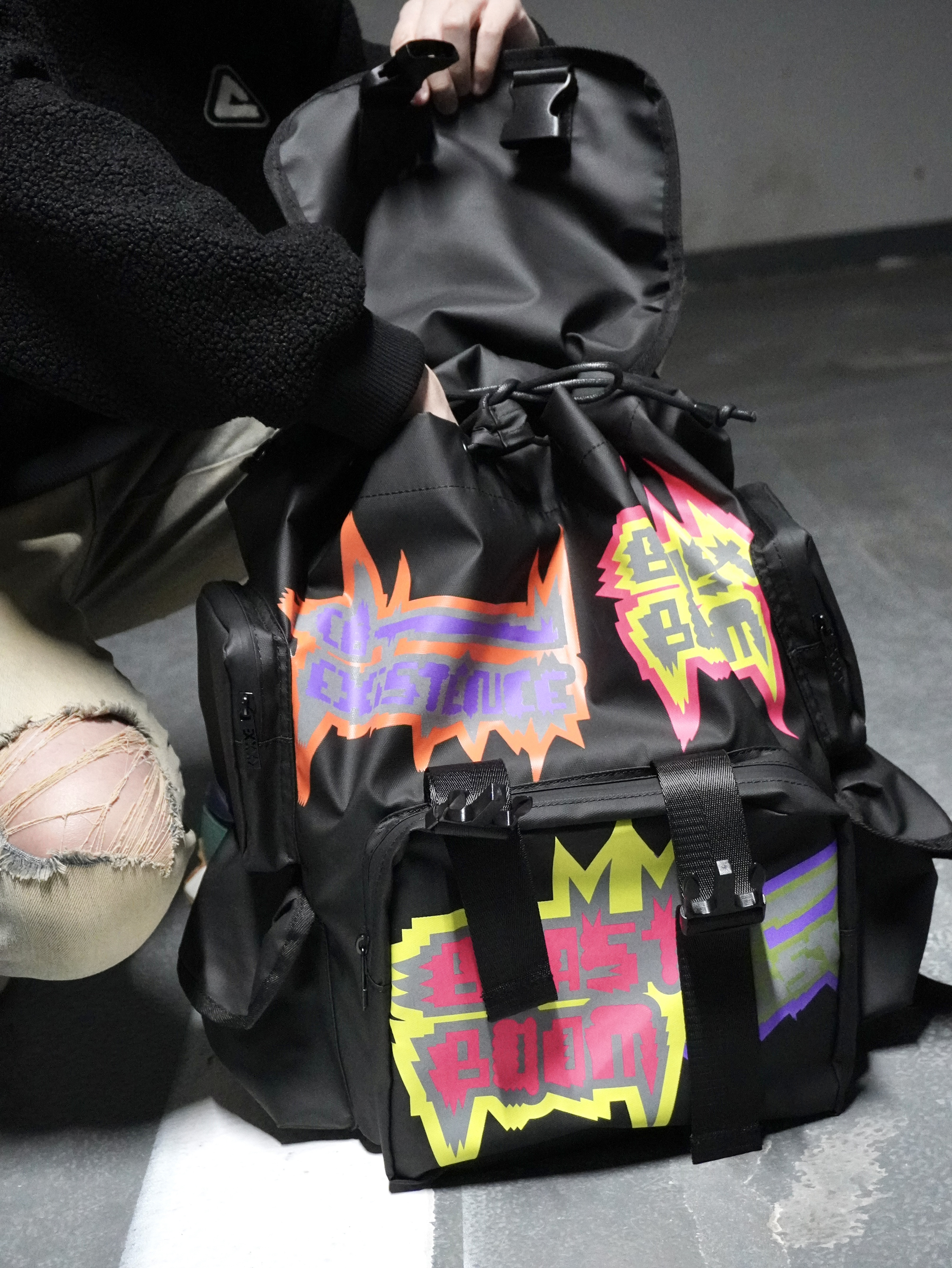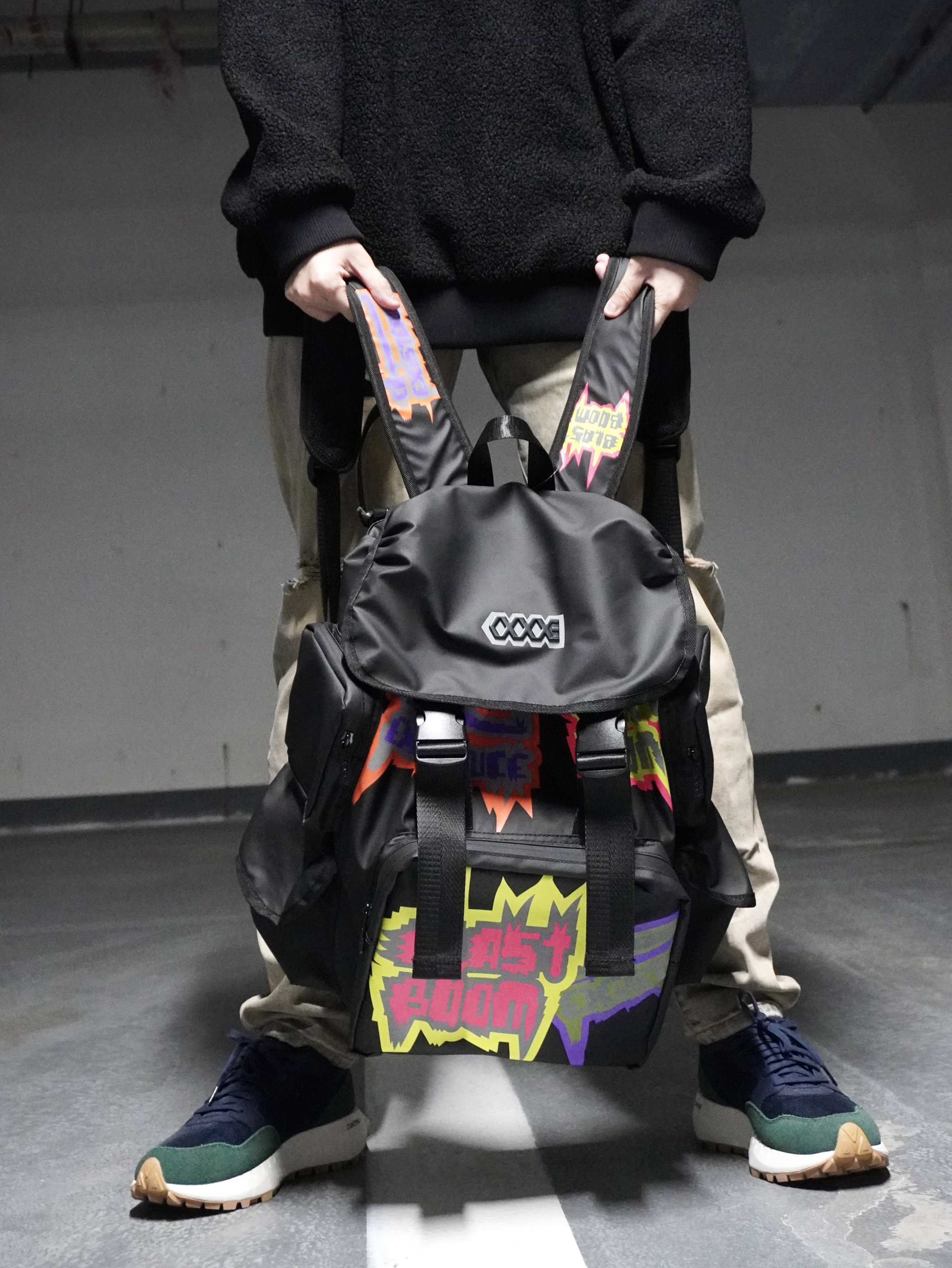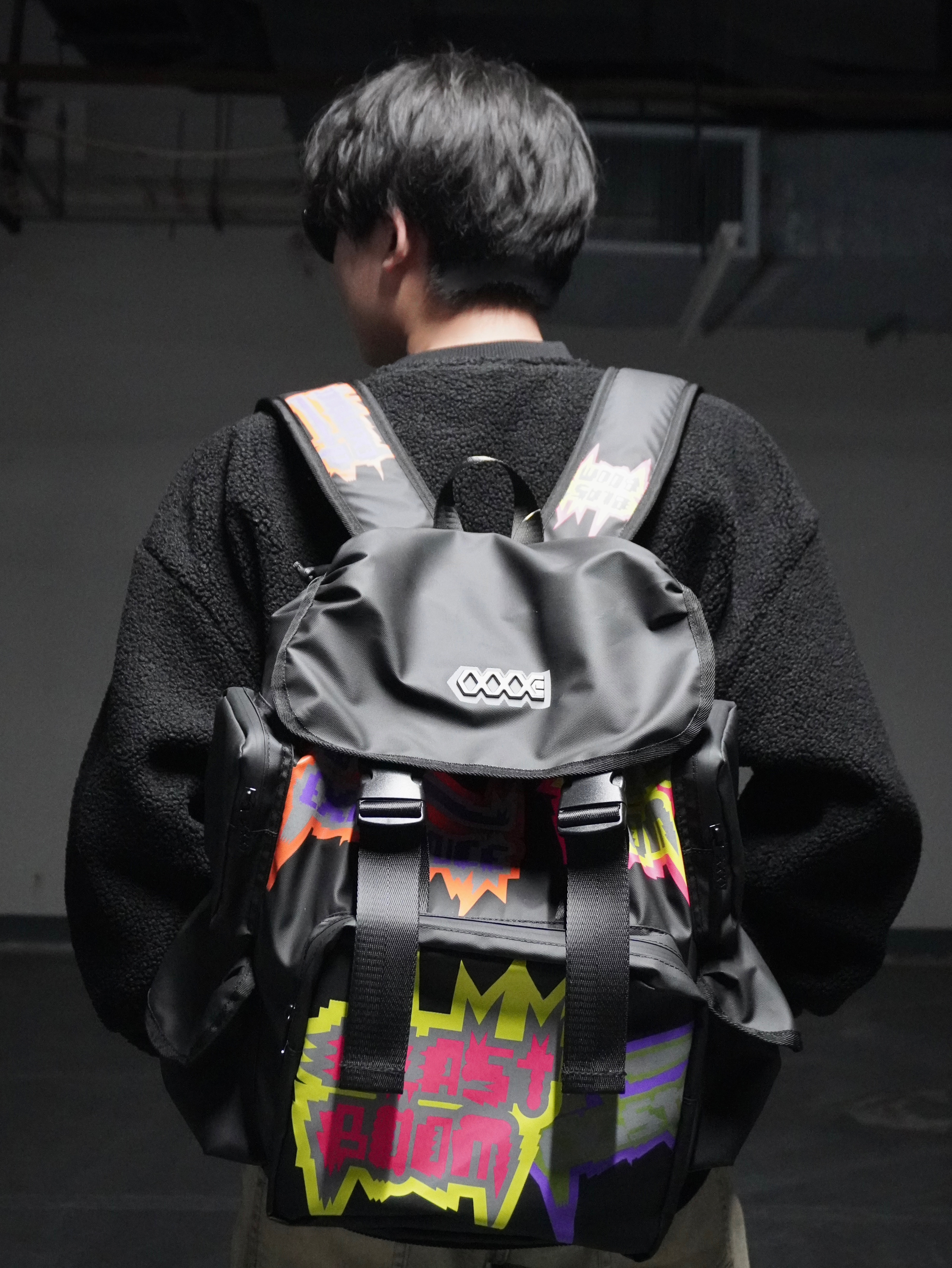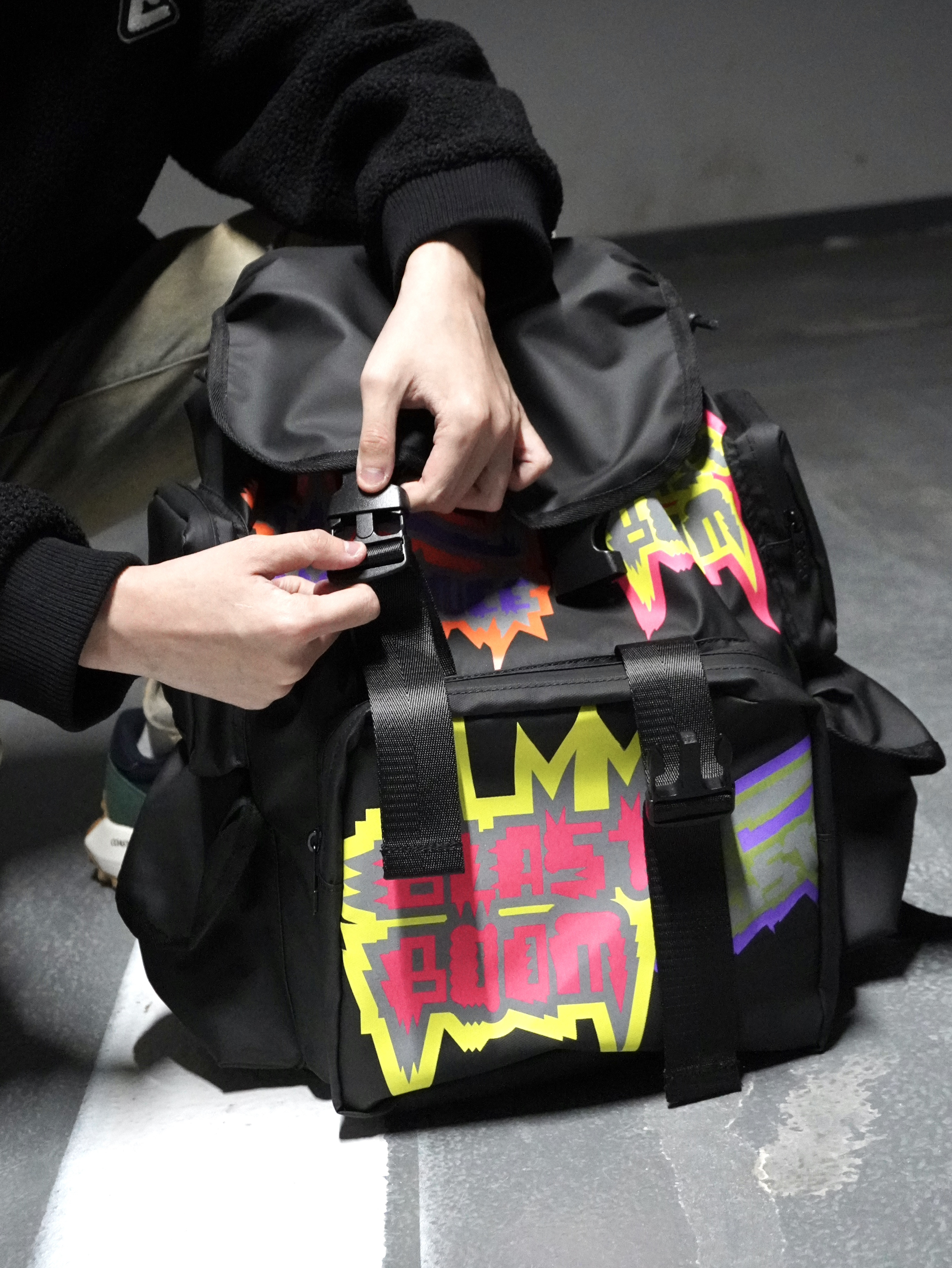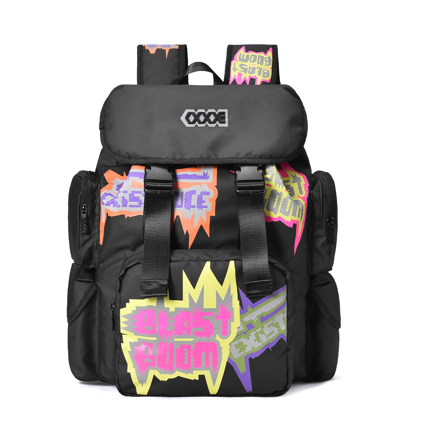经常出差当然少不了一款旅行双肩包 最近入手了COEXISTENCE这款大容量包 平时旅行游玩 或健身打球都很实用 双卡扣设计有很好的安全保障 包包面料是防水和耐刮材质 美式涂鸦外观看上去很有高级感 大容量可以放球鞋或替换衣物 送人或者自用都是不错的选择哦 搭配黑色抓绒卫衣和修身破洞牛仔裤 再选择一双舒适复古的运动鞋 新年和朋友出去玩 给你搭配好啦!