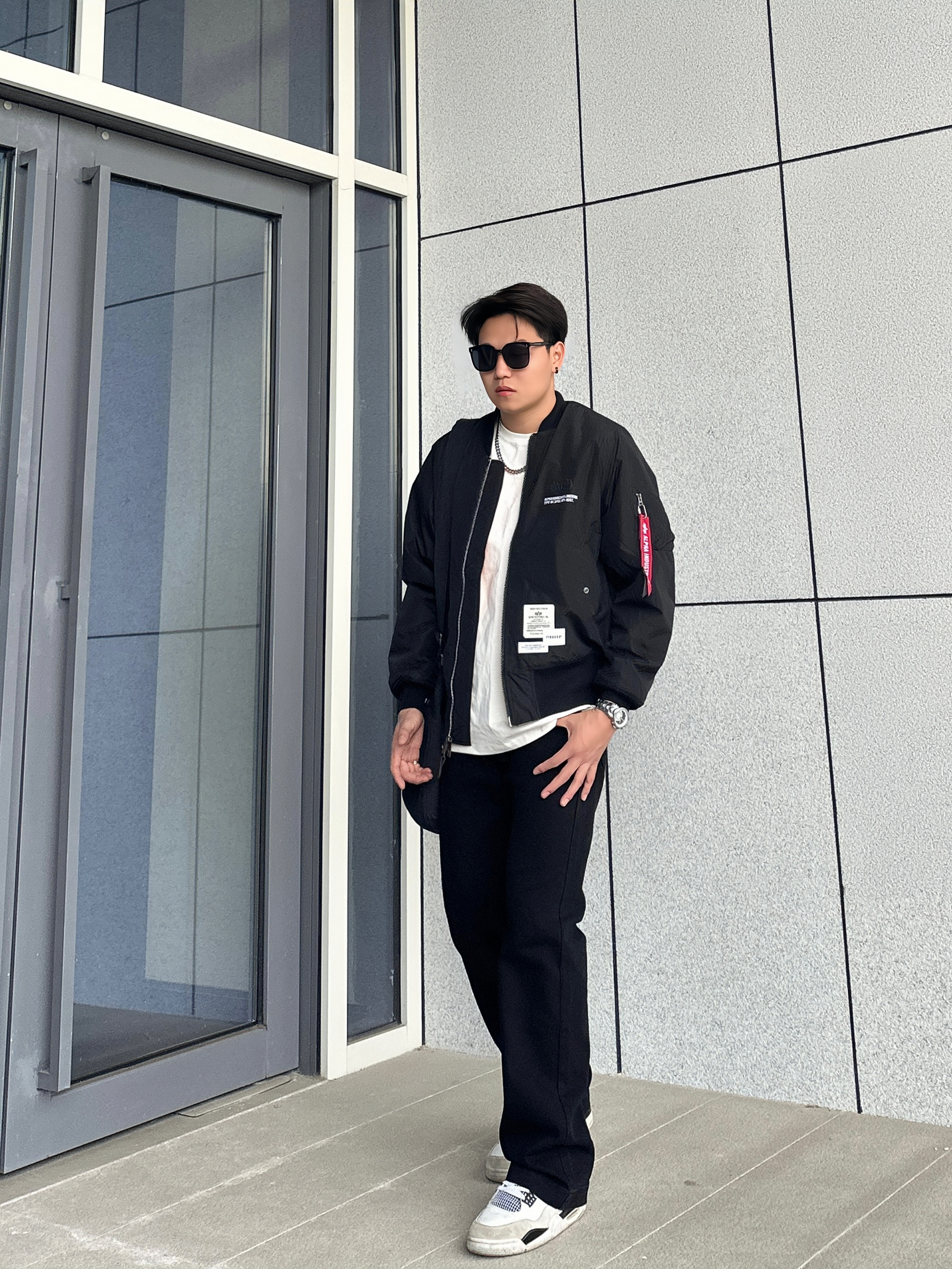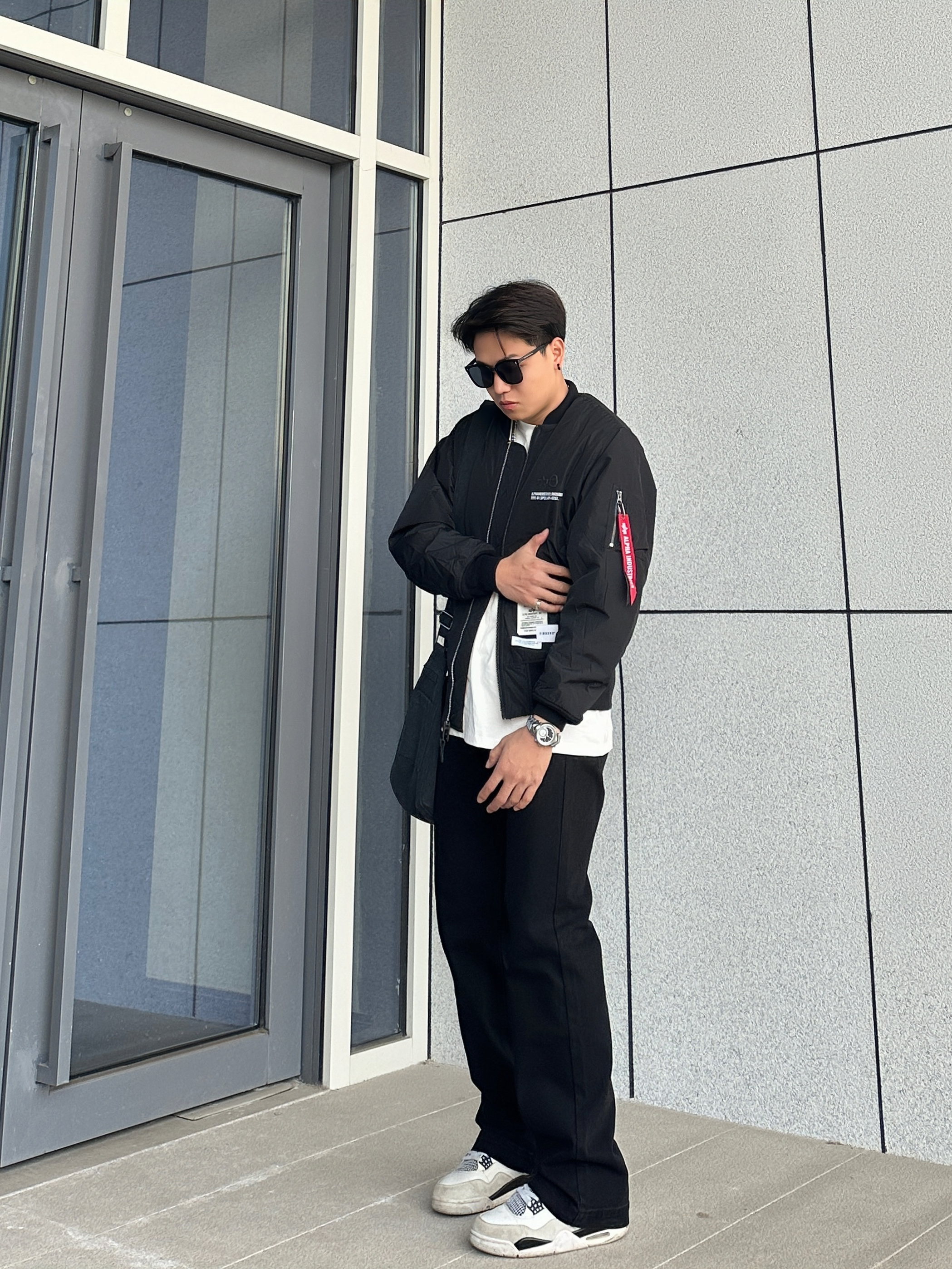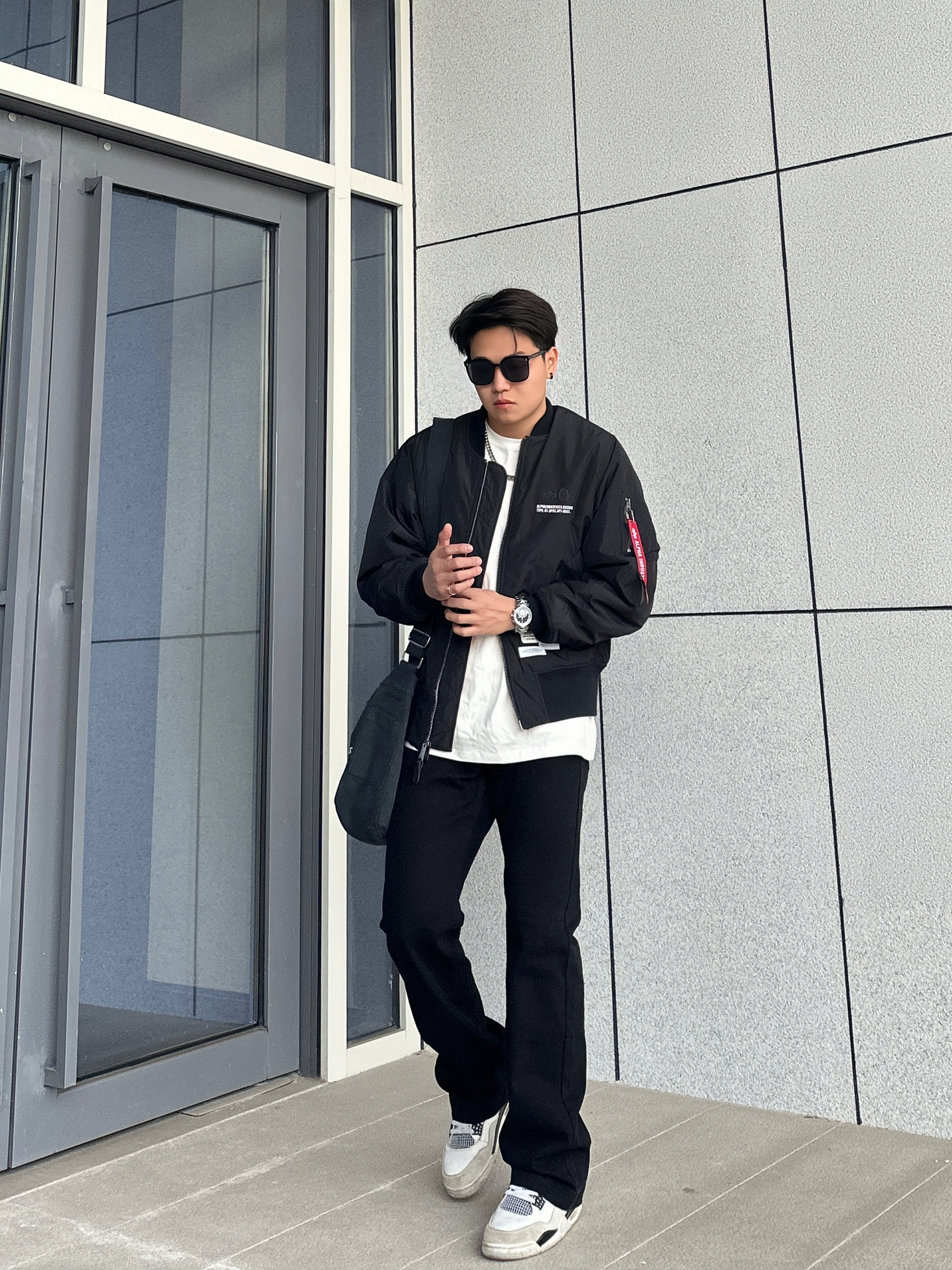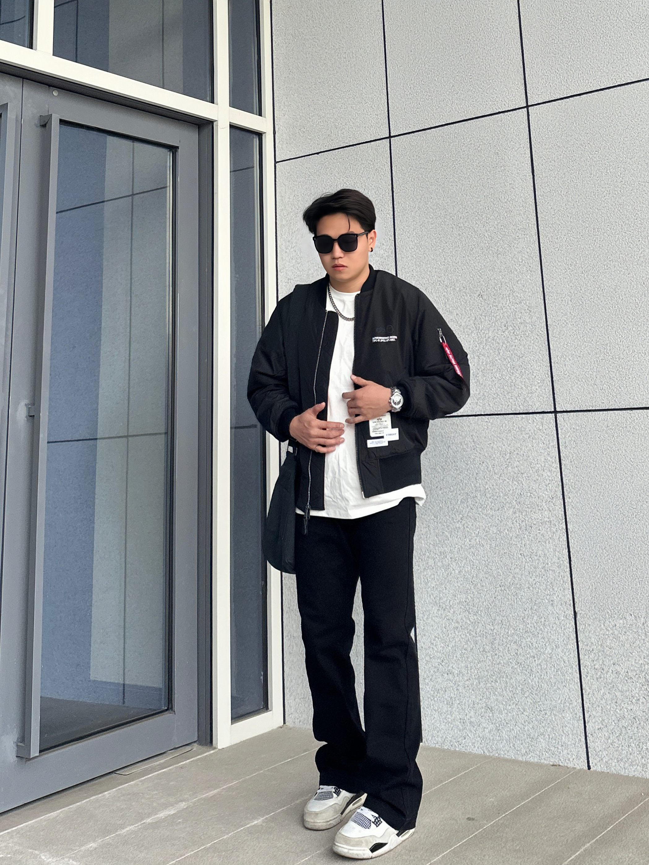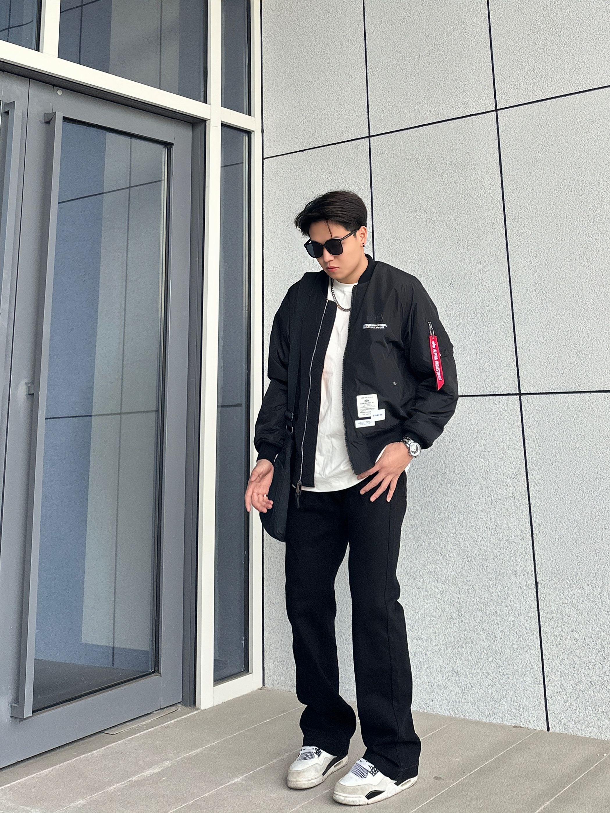 ⛓️今日美式街头穿搭分享 一身黑真的超酷 太帅了完全拒绝不了 👔上身一件飞行员夹克 这种短宽款的夹克无论男女穿都很有范 微阔的版型真的很板正 还不显臃肿 上身保暖不会觉得笨重 很难拒绝这么好看的飞行员夹克 👖搭配一条基础微喇牛仔裤 直筒微喇的版型上身很有造型感 微弹的面料也很舒服 👟百搭的鞋款AJ4白水泥 我个人很喜欢的鞋型 日常搭配上脚是真的很帅 基本上不挑裤型 不知道穿哪双穿它准没错 一整身...