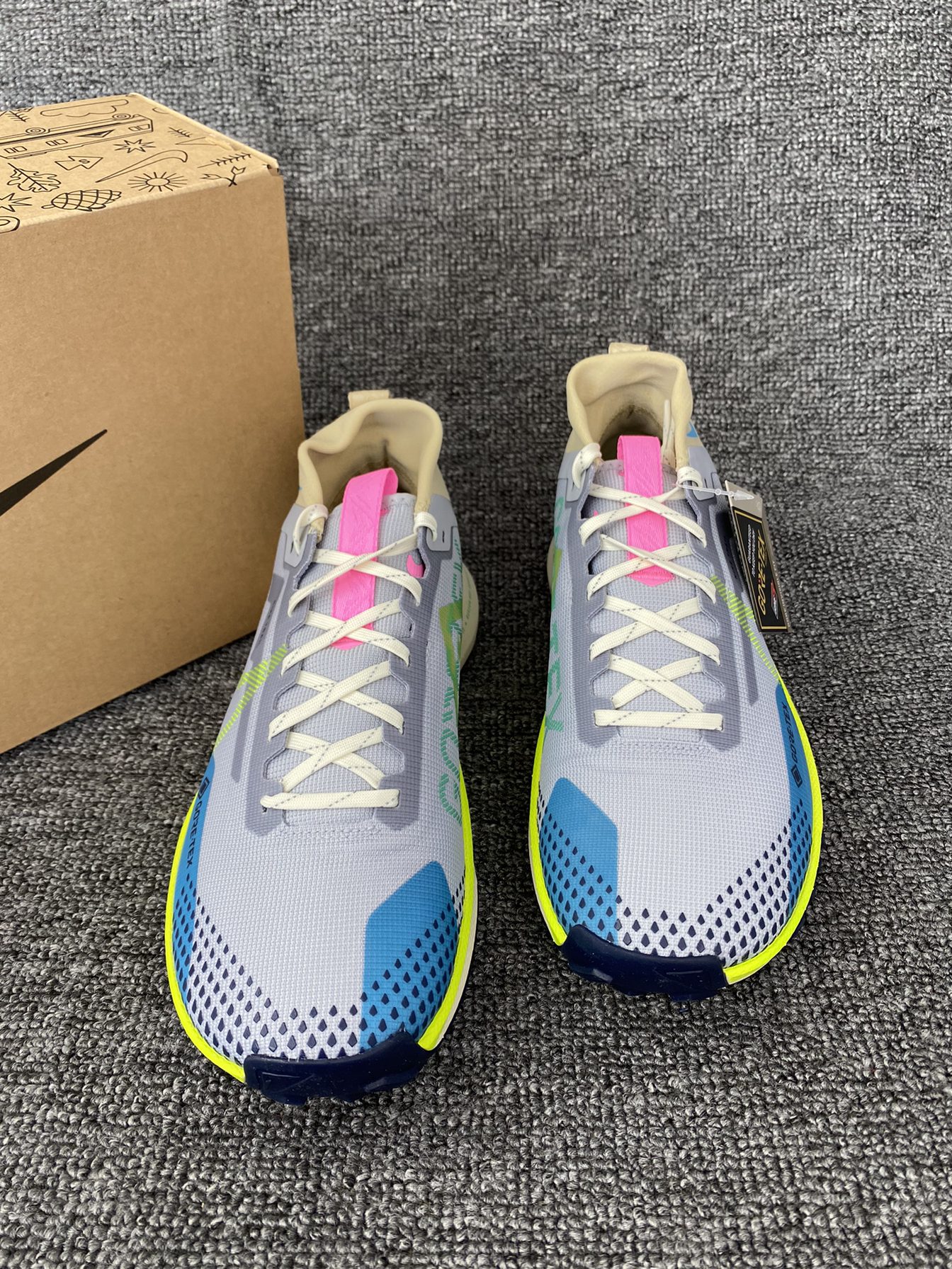 鞋子整体以灰色为主,蓝色和黄色点缀 整体很有活力感 鞋面是织物材质,加入了GTX材质 提供透气性的同时也具有一定的防水效果 鞋帮处做了袜套的设计,可以说是中帮球鞋 全掌的React中底配置,缓震感不错👍 不过耐久性欠佳!而橡胶大底非常耐磨~ 🏃这款鞋子相对来说会更适合户外运动 跑步的话就不是很合适 尺码方面建议按平常穿的选择就好啦~