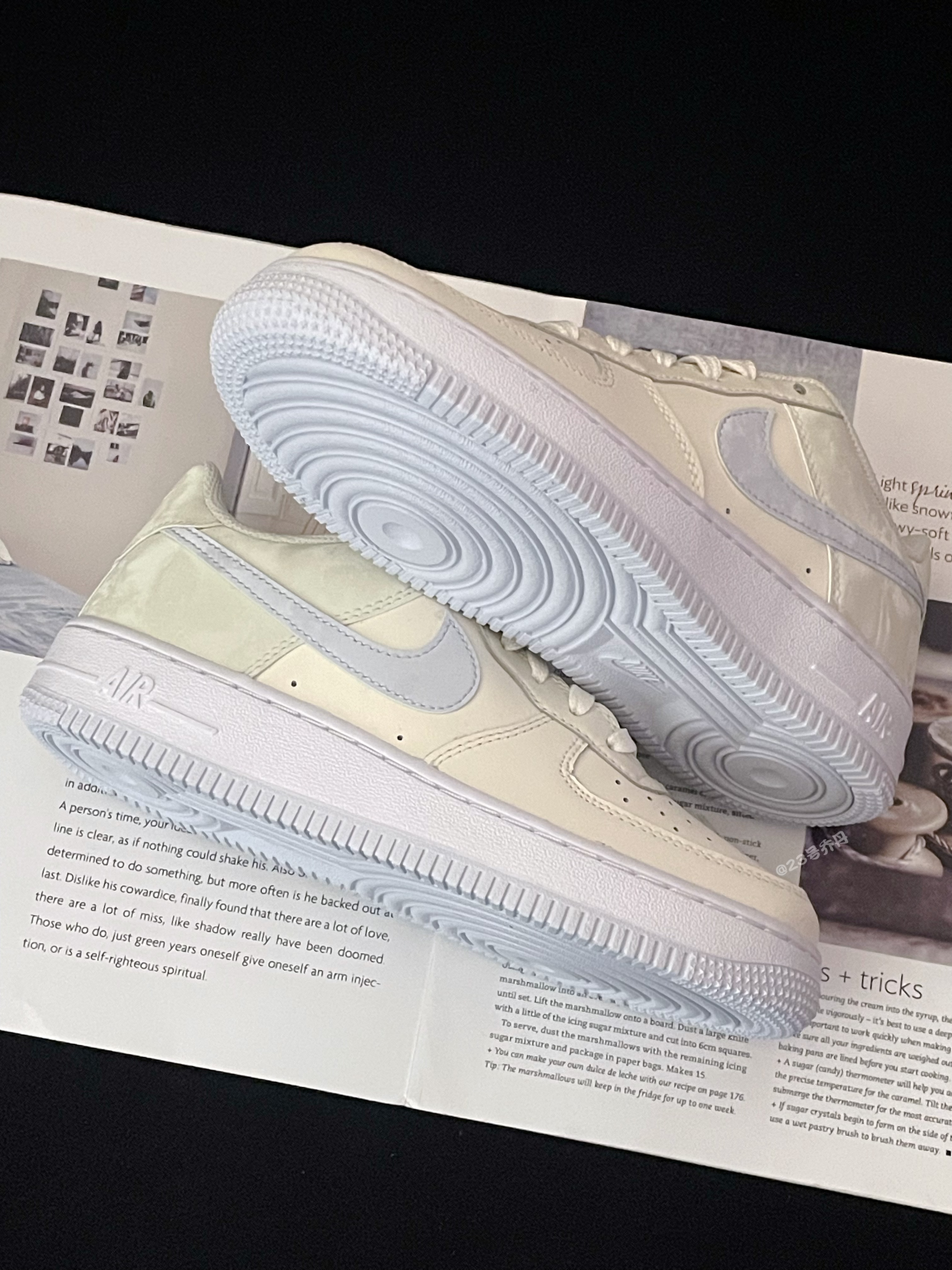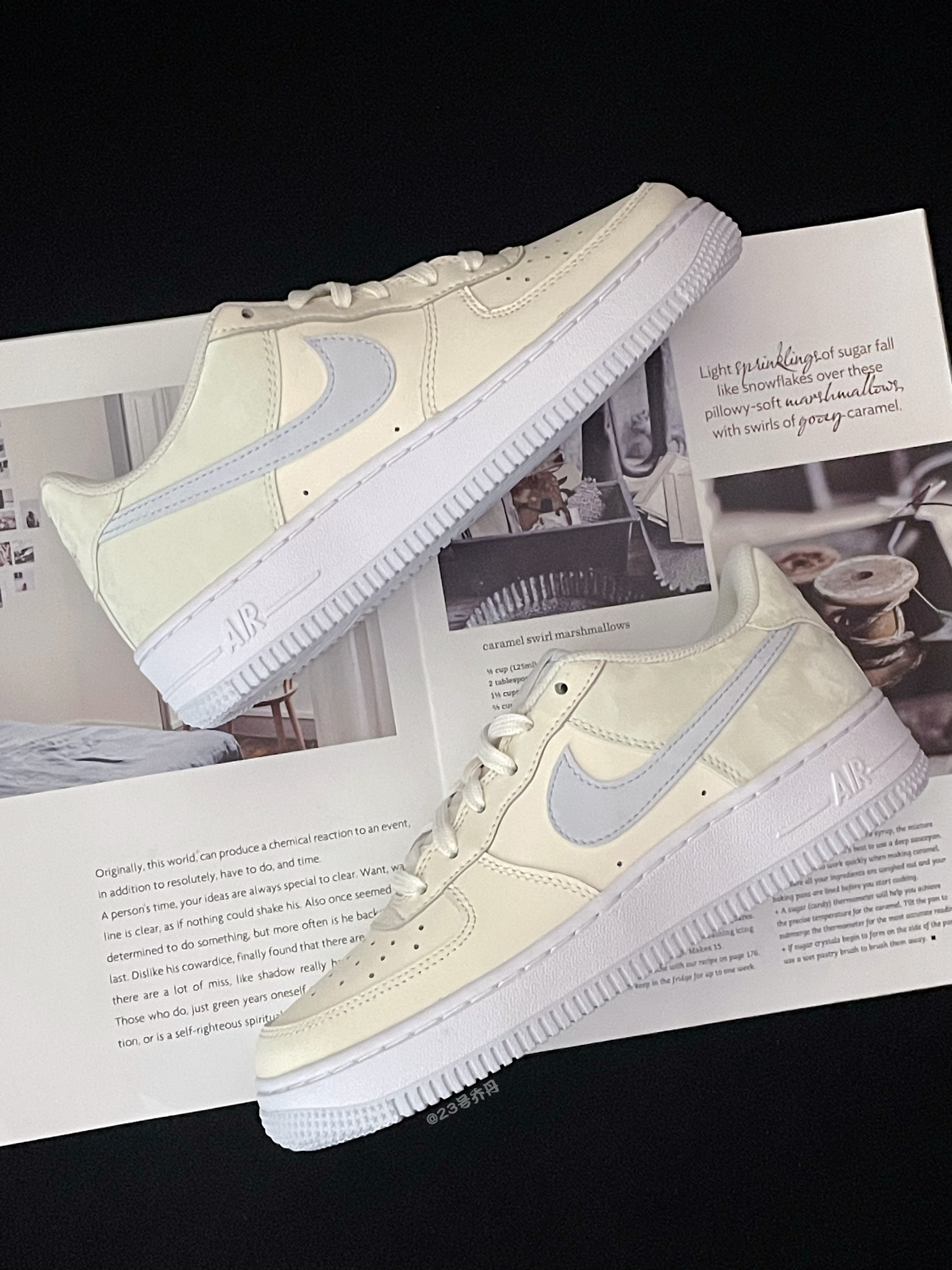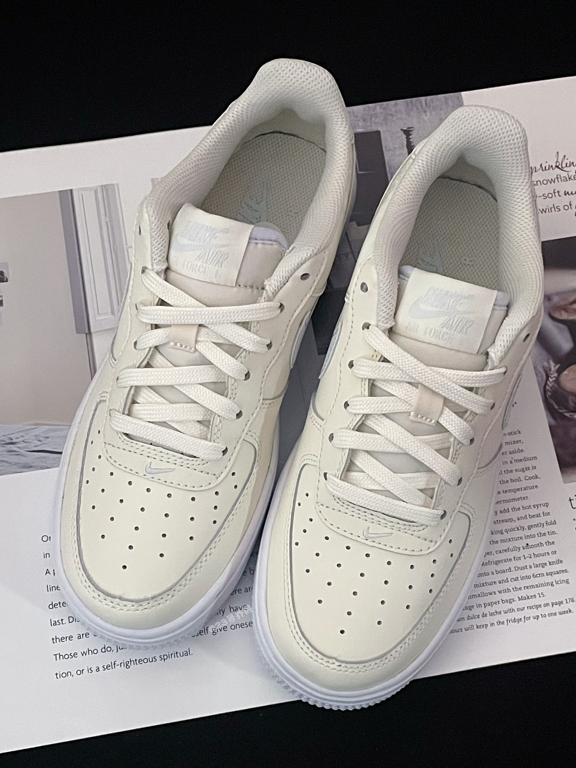 今天给大家分享这双近期发售的 Nike Air Force 1 Low『米蓝色』板鞋👟 整双鞋采用了奶黄色/雾霾蓝等搭配 鞋面选用了易于打理的光面皮革材质 鞋头密集的透气孔保证了较好的透气性 鞋尾和Swoosh部分则呈现出水洗纹路元素 鞋舌/鞋尾均设计有品牌Logo刺绣图案 中底3️⃣公分左右的增高可有效修饰腿型 最后由雾霾蓝的多纹路橡胶大底收尾 整体来说这是一双颜值挺不错的小板鞋👟 奶呼呼的配色...