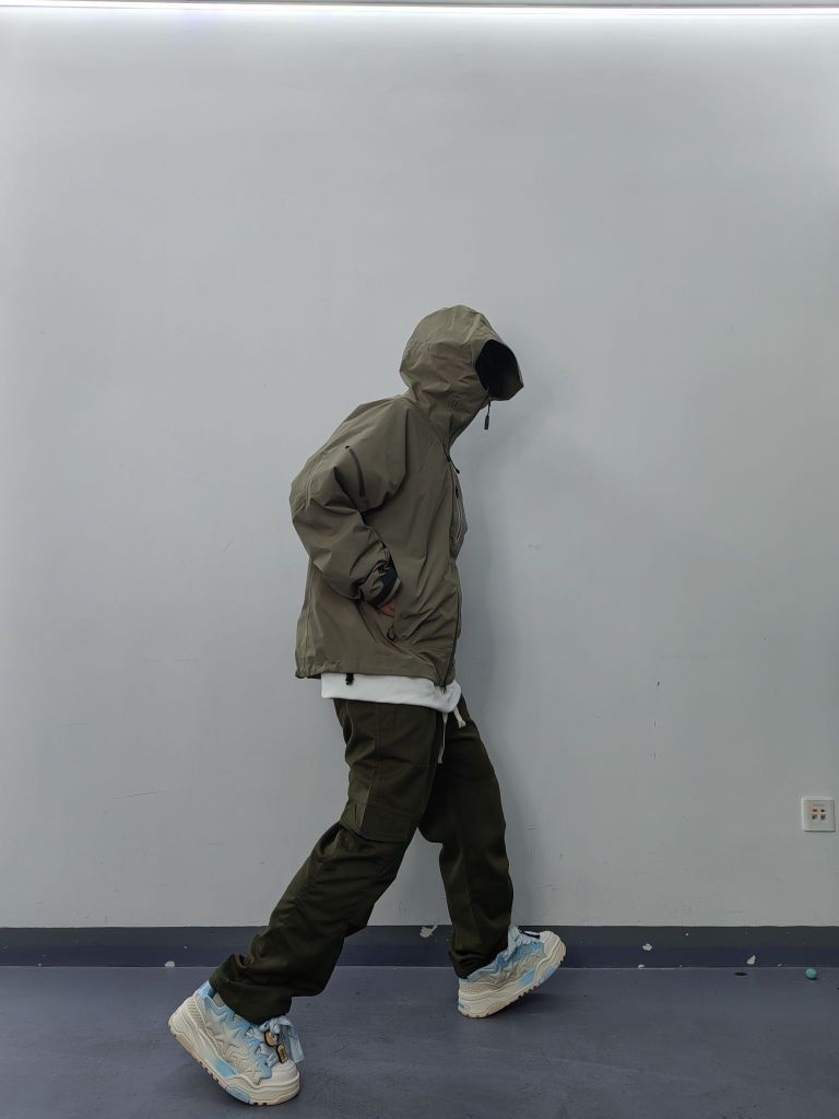 城市户外风通勤搭配日常 178/65kg穿搭分享 上衣:户外风压胶硬壳冲锋衣防风防寒机能风十足 下装:#腾讯视频DOKI 户外军绿色系直筒休闲裤 松紧腰设计 抽绳调解 工装风设计搭配刺绣字母垂感裤 尺码xl舒适合身 最后来双厚底增高面包鞋搞定出街日常