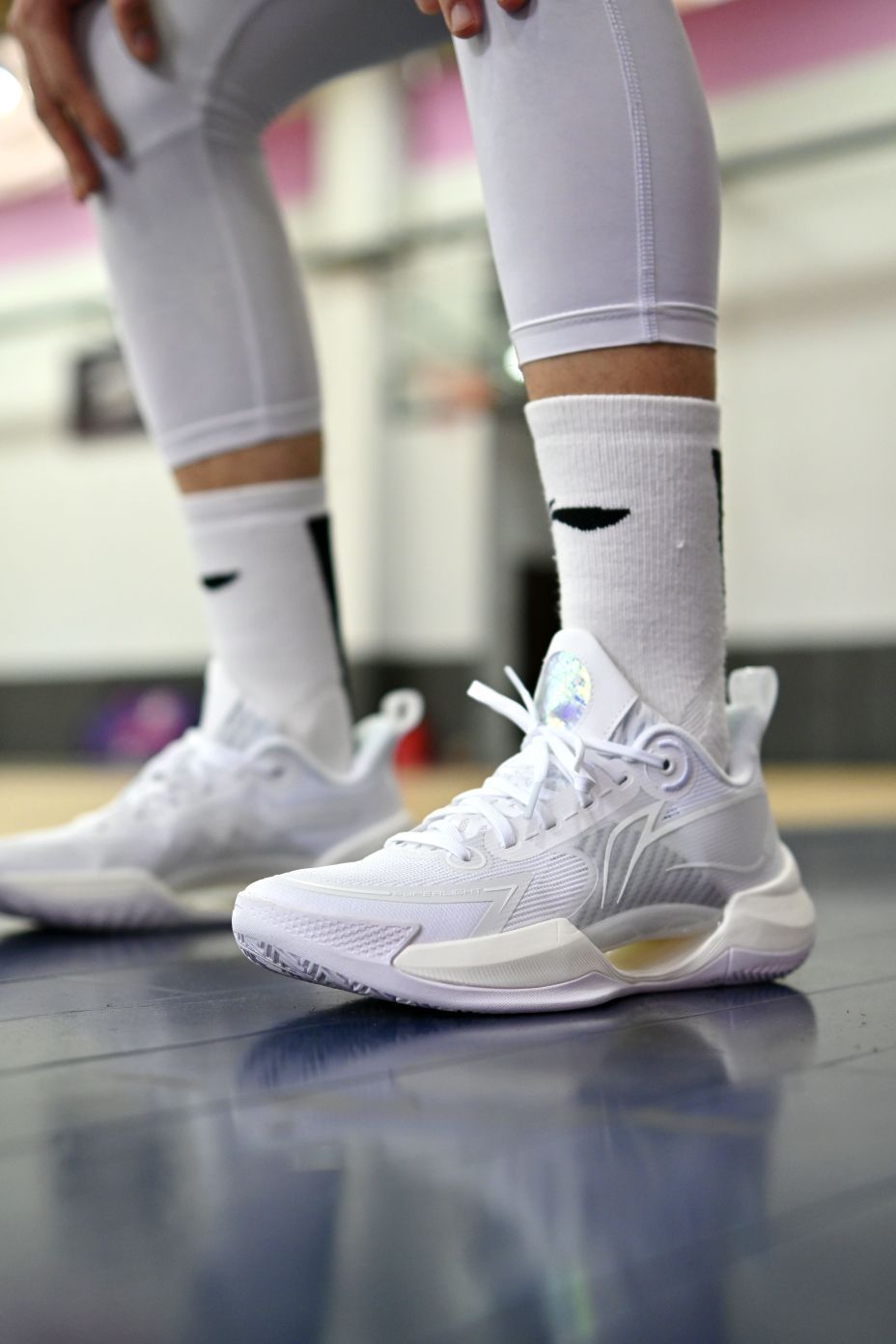 兄弟们,这双超轻V2的纯白配色是真的越看越上头!侧边的碳纤维存在感非常的足,叫它白银配色一点儿也不过。 ✅超轻V2这双鞋对于小快灵的打法适配度是相当高的,唯一注意的就是缓震极限稍微差点儿意思,前掌䨻的存在感也不强,对大体重不友好。具体的实战反馈在昨天有和大家做一个简单总结,可以了解一下[装到了]