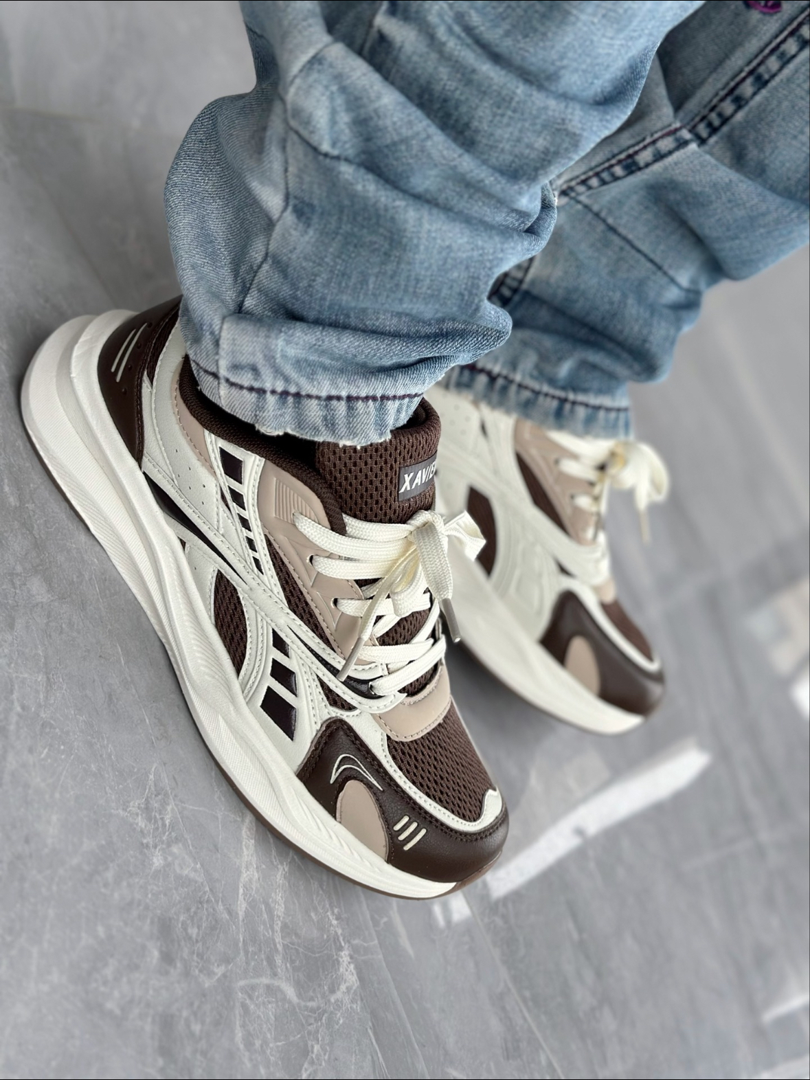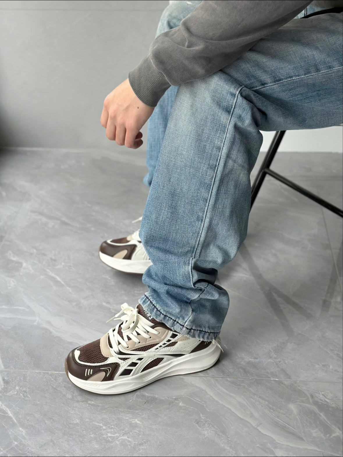 国潮运动鞋现在越来越棒了 新年的新鞋子很有必要整上一双 美拉德的棕色还是蛮耐看的 深浅不一的棕色系拼接 层次感很丰富 外观看起来干净利落 又细节满满的设计 脚感软弹 今天选择穿它混搭牛仔裤 小感觉一下就上来了 🆒