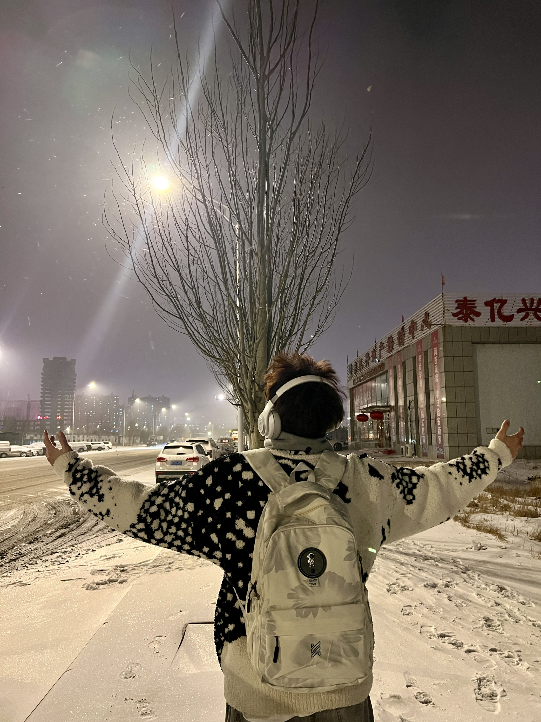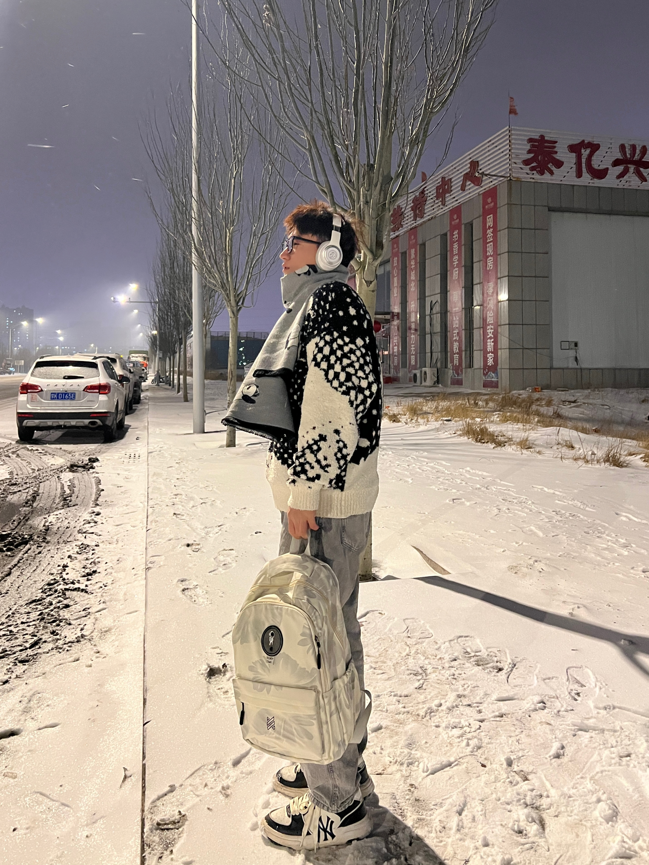 年前的最后一场雪❄️ 也是快要结束啦 新的一年也要焕然一新呀! ——— 上身星球图案个性毛衣 半开领设计也是很简约的 加厚款冬天穿也是不错的啦 裤子是烟灰色的牛仔裤 直筒裤显瘦对腿粗的人比较友好滴 ——— 还给自己提前准备了开学的🎒 撞色印花图案还是挺有个性的 容量也是很大的呀 上课需要电脑的也可以装下 而且我感觉单肩背敲🆒的