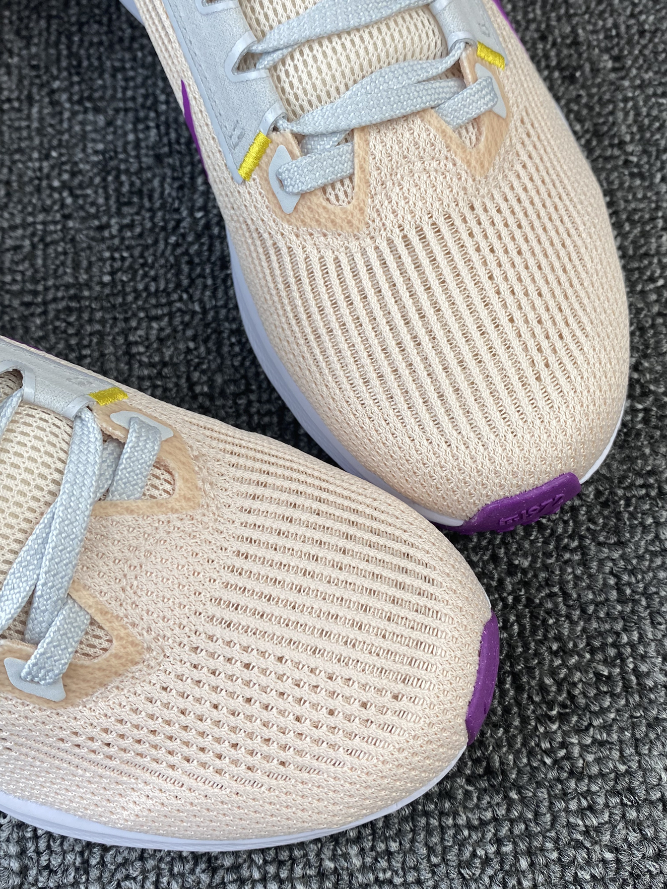 万金油跑鞋飞马40真的好穿! 日常通勤、体测、跑步等都能驾驭👍 鞋面为织物网面,透气性以及包裹感都有提升! 鞋子整体是以粉色为主的,紫色搭配点缀 很有个性的配色,少女感十足🤩 中底前后掌分离气垫➕泡棉材质 缓震感可以明显感受到,很软弹 尺码方面按平常穿的选择就可以啦~
