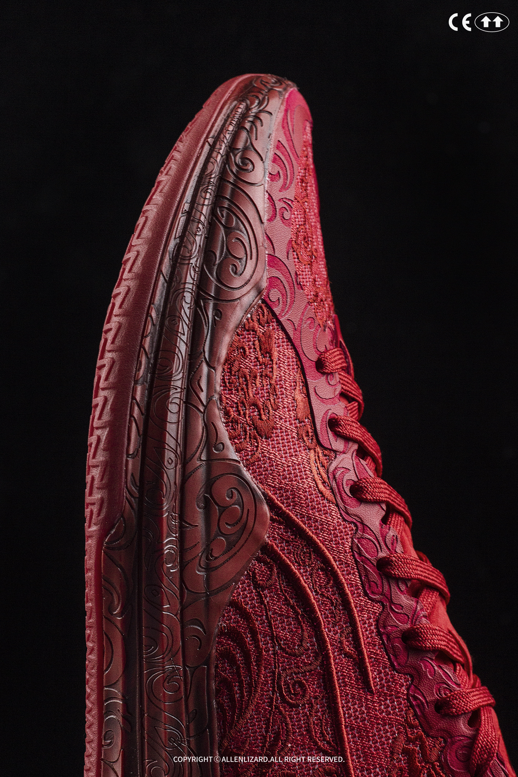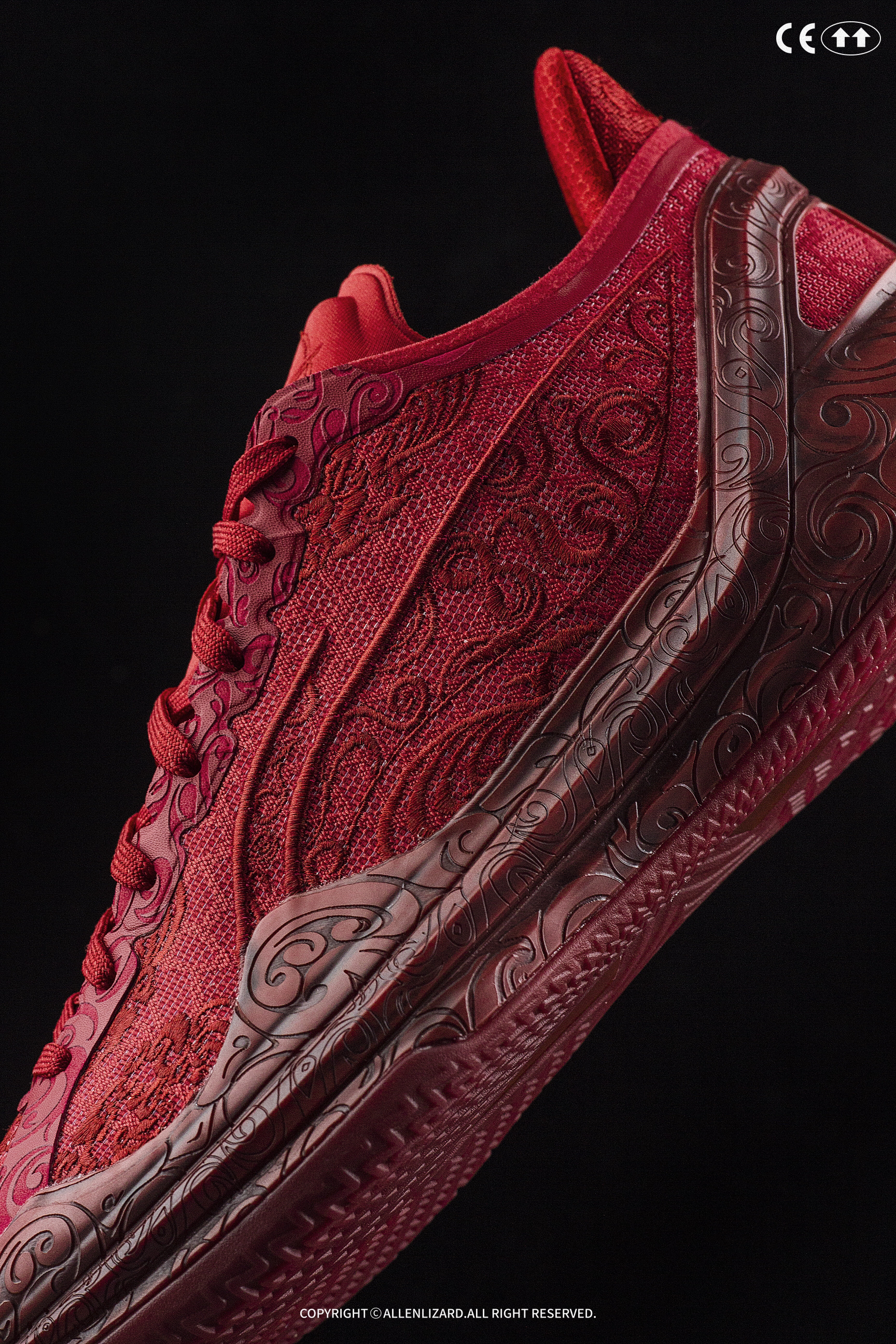 胭脂念这个配色一出来就惊艳了所有人,11万针电绣凤纹鞋面与粗细有致的雕刻凤纹TPU抢足风头!侠客仗剑天涯,孤寂无人倾诉,只能借心爱之人的胭脂扣寄相思。一面是对古代胭脂盒工艺的匠心传承,一面是大丈夫的豪情与柔情,背后承载的文化意义真的很绝。千万只凤凰齐飞,新装备迎接龙年,这寓意必须收藏!