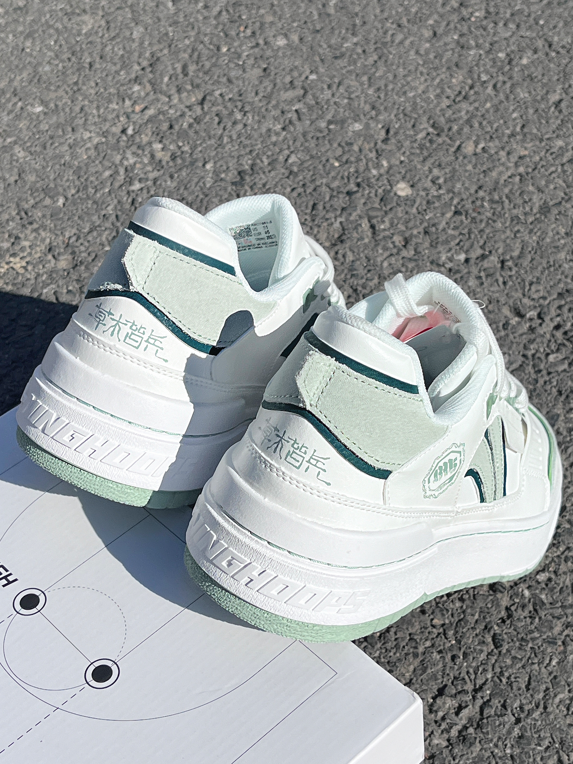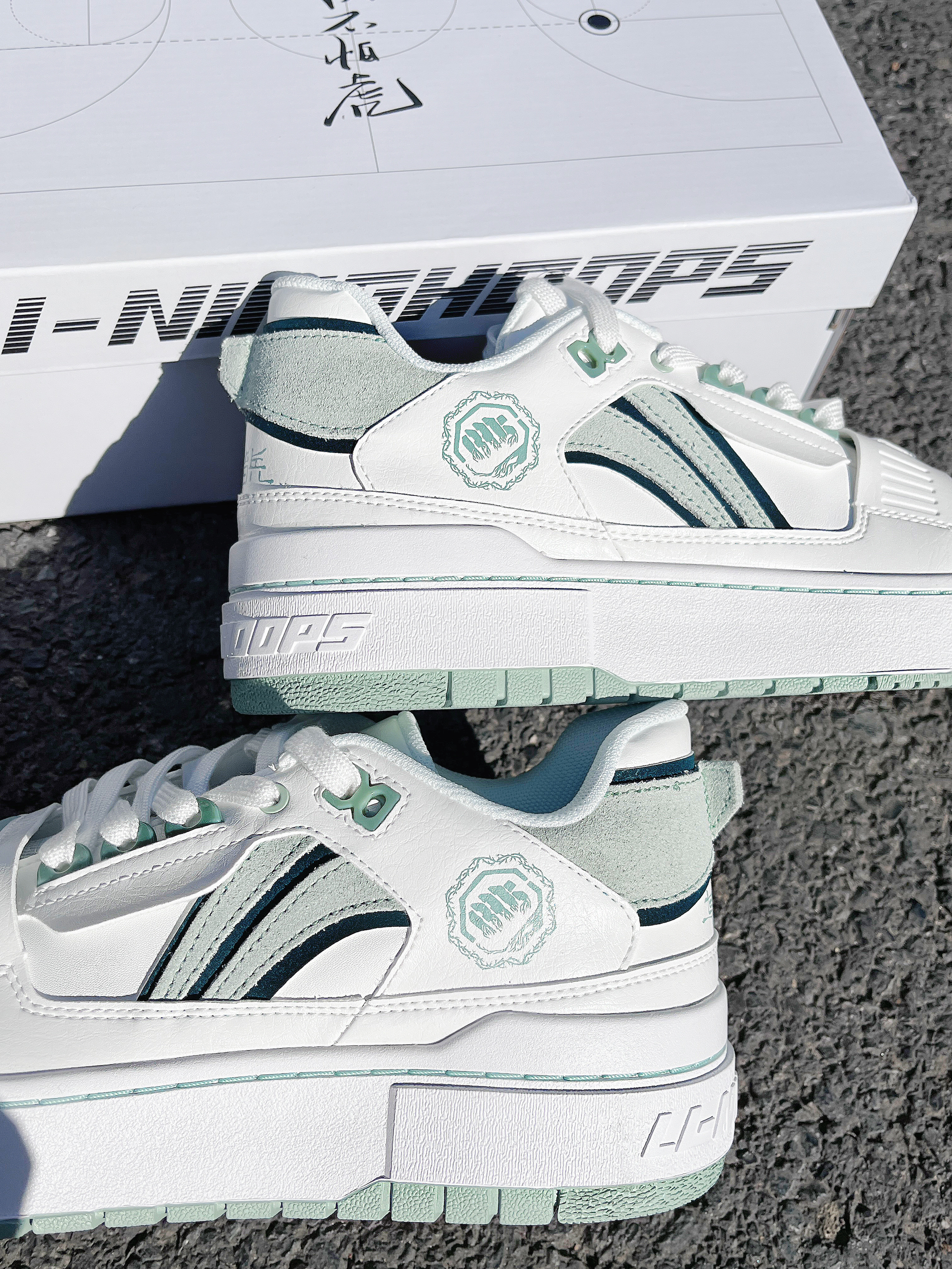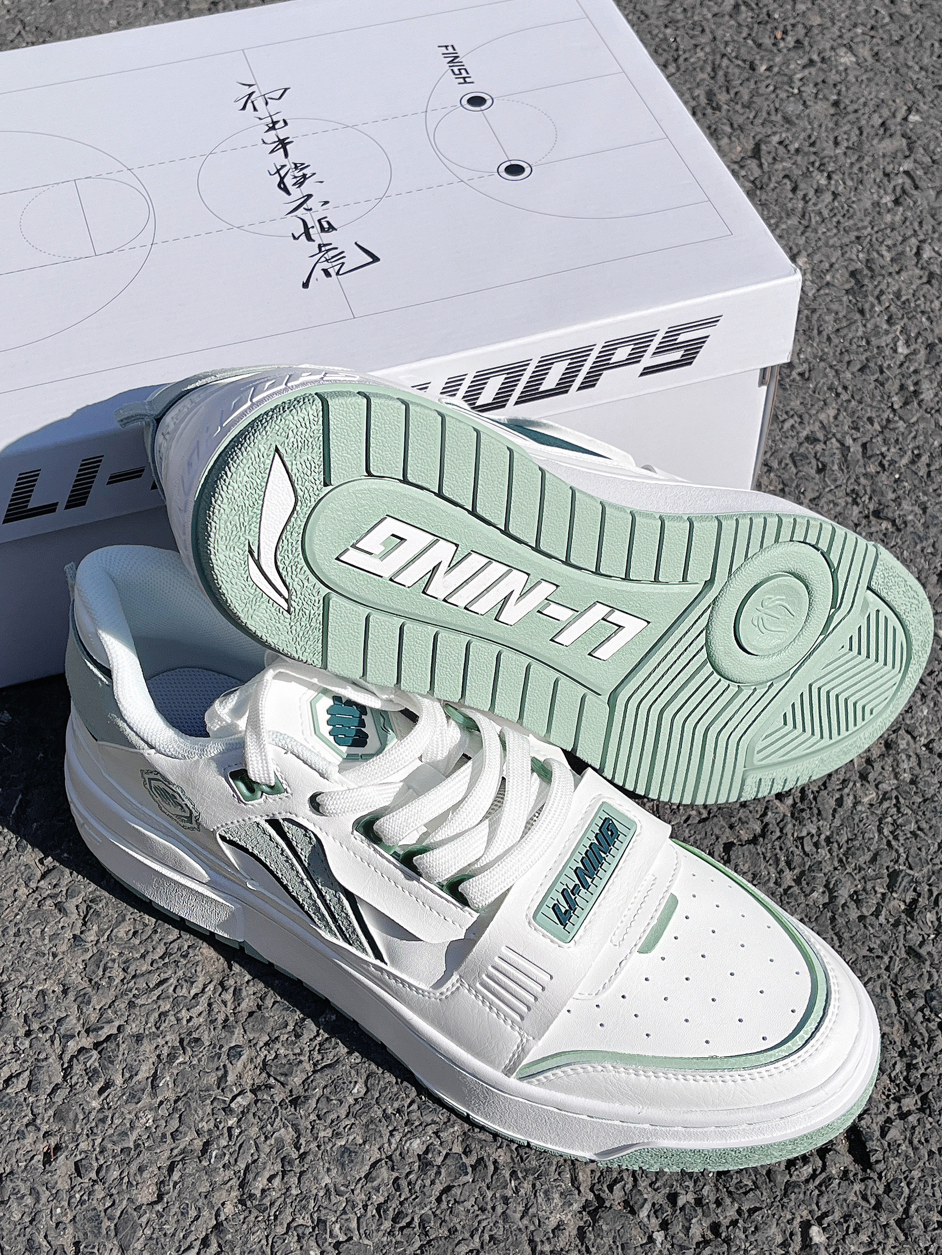 薄荷绿配上白色也太有清新感了吧!! 不得不说李宁的鞋子的设计真的深得我心😎 这个鞋跟和鞋底简直太帅了!! 虽然是双板鞋 但是脚感真的很舒服 鞋底很软 鞋子有点重 透气性一般 冬天穿是ok的