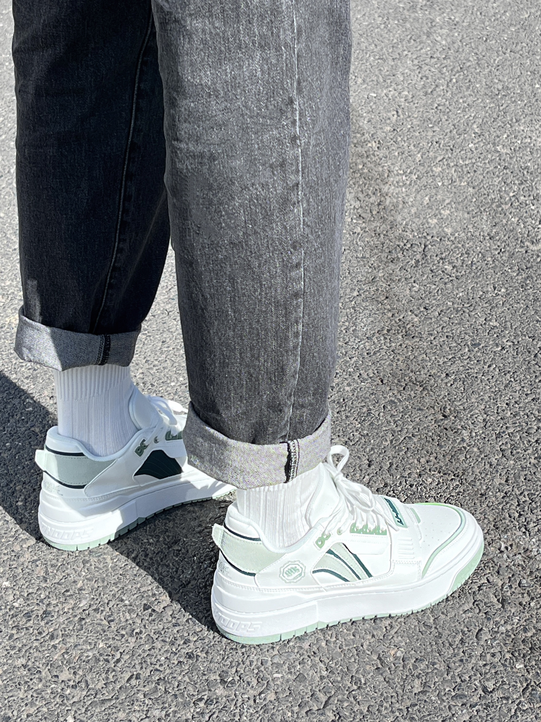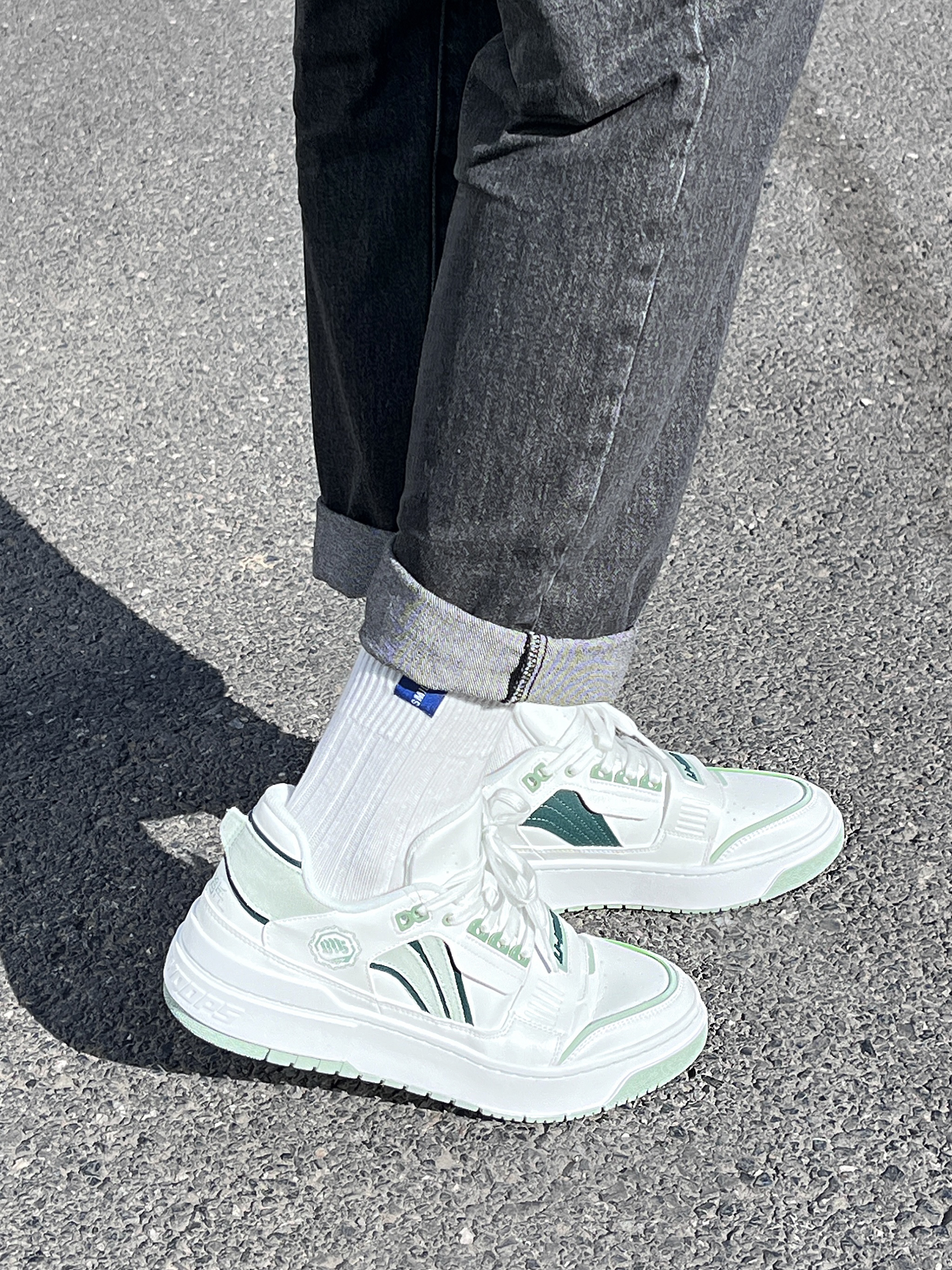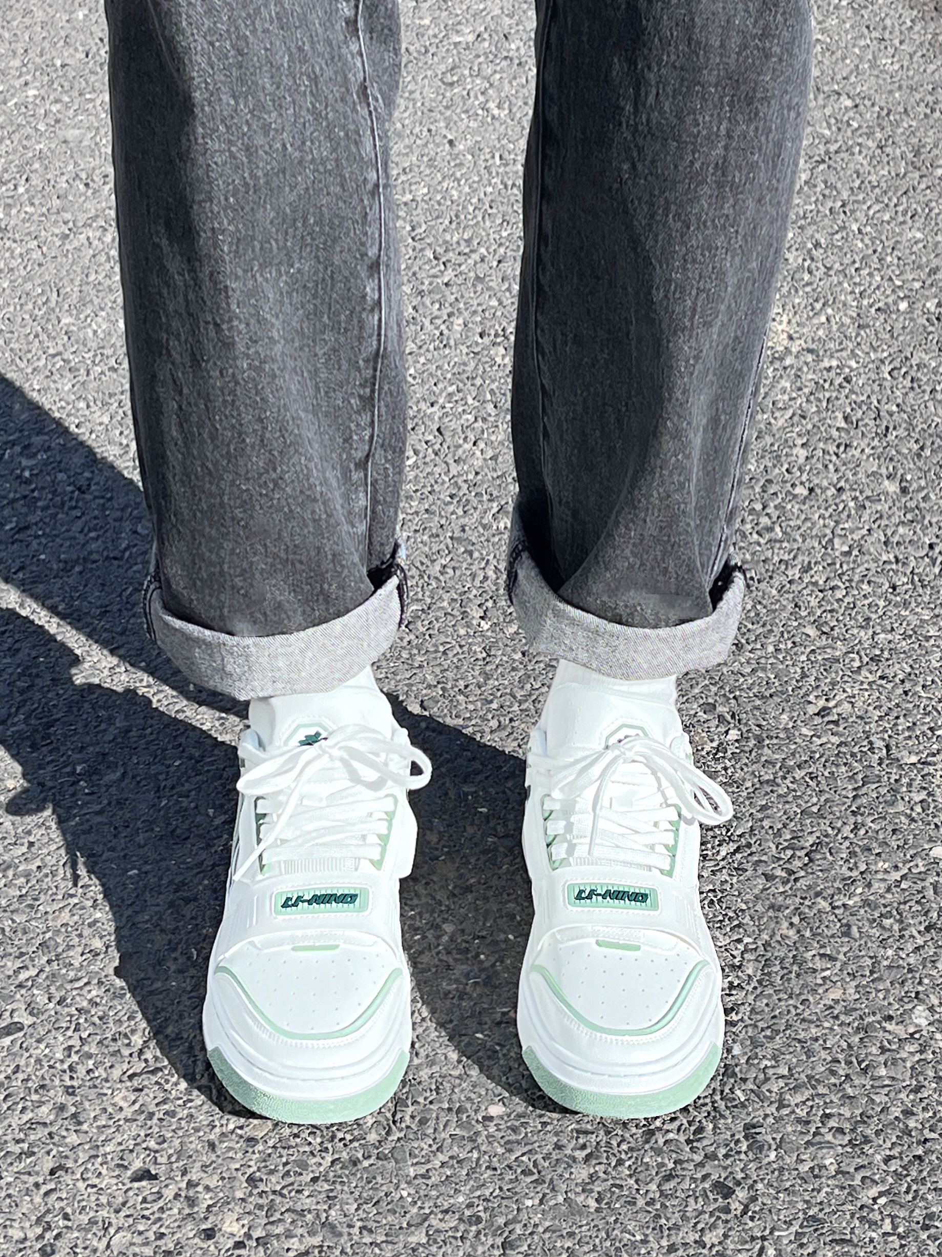 薄荷绿配上白色也太有清新感了吧!! 不得不说李宁的鞋子的设计真的深得我心😎 这个鞋跟和鞋底简直太帅了!! 虽然是双板鞋 但是脚感真的很舒服 鞋底很软 鞋子有点重 透气性一般 冬天穿是ok的