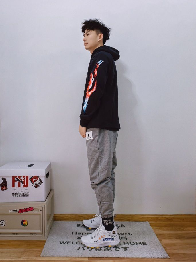 ➡️ 新年回家一定要和朋友露一手 🏃 大家好,我是粤雨 今天分享新年运动穿搭 🧨黑色卫衣+灰色休闲裤+定制库里球鞋 冬季运动肯定少不了连帽卫衣来搭配,能运动能休闲,灰色休闲束腿裤也是冬季保暖必备,鞋子当然要来一双战神附体的库里鞋 🔖衣服L,裤子L,篮球鞋尺码不偏