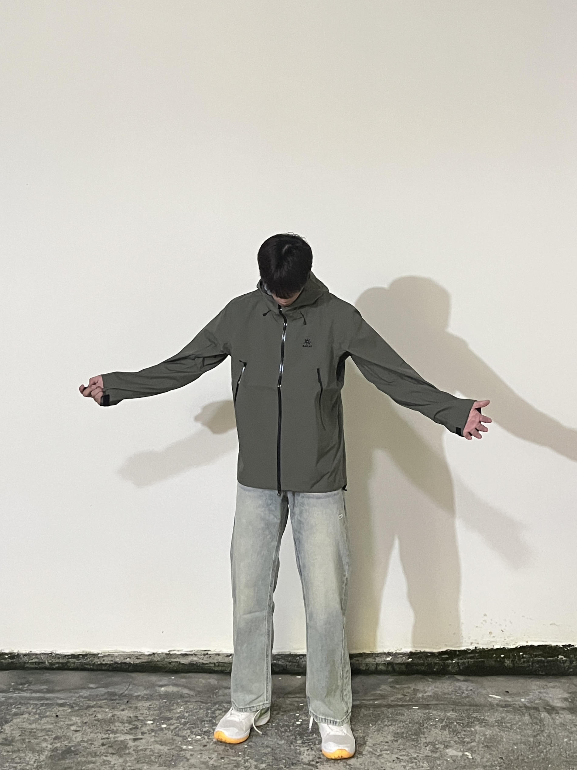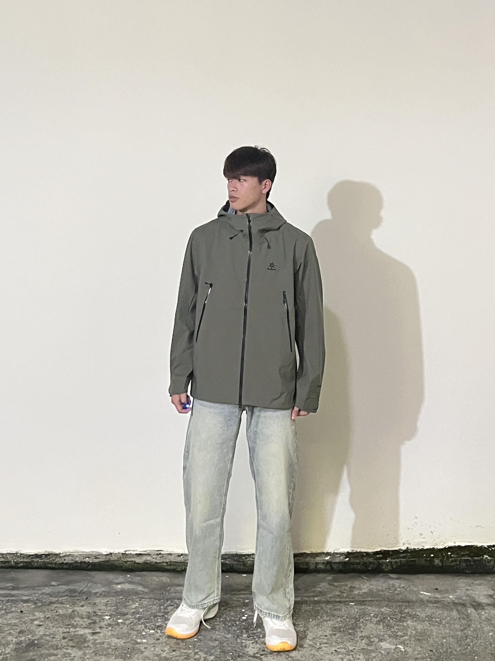 百变风格 不变的我 兄弟们大家好 对于南方城市的朋友 一件高质量冲锋衣是适合秋冬季节的 不管是刮风下雨的天气还是徒步爬山 都可以轻松应对 今天就分享这一套秋冬穿搭 ⬆️一件功能性的冲锋衣 KAILAS/凯乐石 军绿色系可以穿出潮流感 很有独特感 面料采用优质的三防科技材质防水防风极具保暖性 ⬇️搭配的一件简单的潮流牛仔裤 尺码方面 本人185/75kg 选用尺码是xxl码