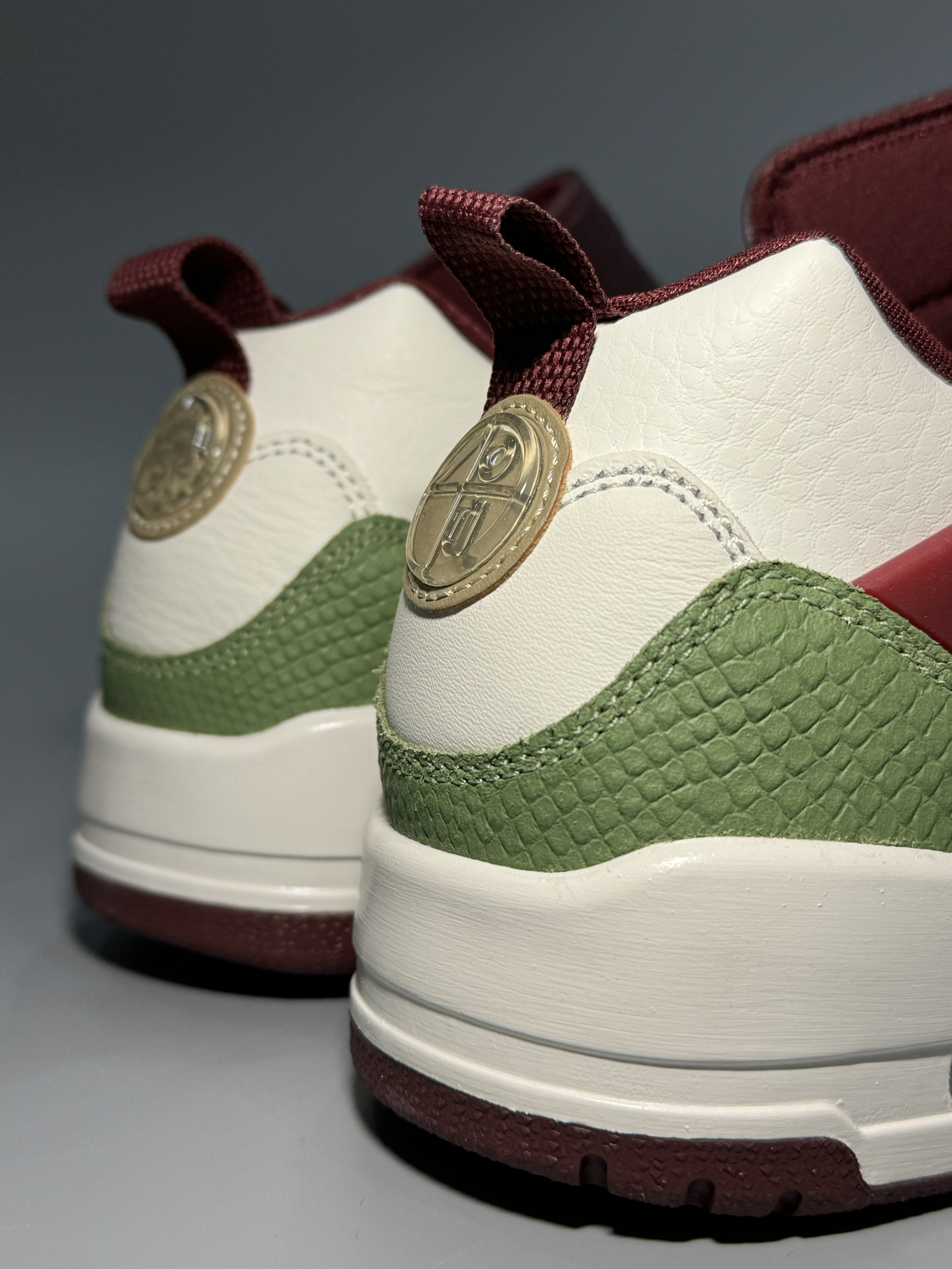 今天入手啦一双Jordan Spizike CNY龙年,很惊喜的是里面还有个小红包,你猜能开出什么? - 这双龙年限定Spizike其实是混合鞋,大家都知道,上面能看到很多熟悉的影子,也是我们当时热爱的每一款鞋子,AJ3,AJ4,AJ5,AJ6,AJ9。故事都是Nike讲的,但是回忆是自己的,颜值也是第一位。 - 皮质的用料很细腻,和AJ1 OG的皮质差不多了,鞋头和后跟部分有龙鳞🐉绿色的青龙龙鳞...