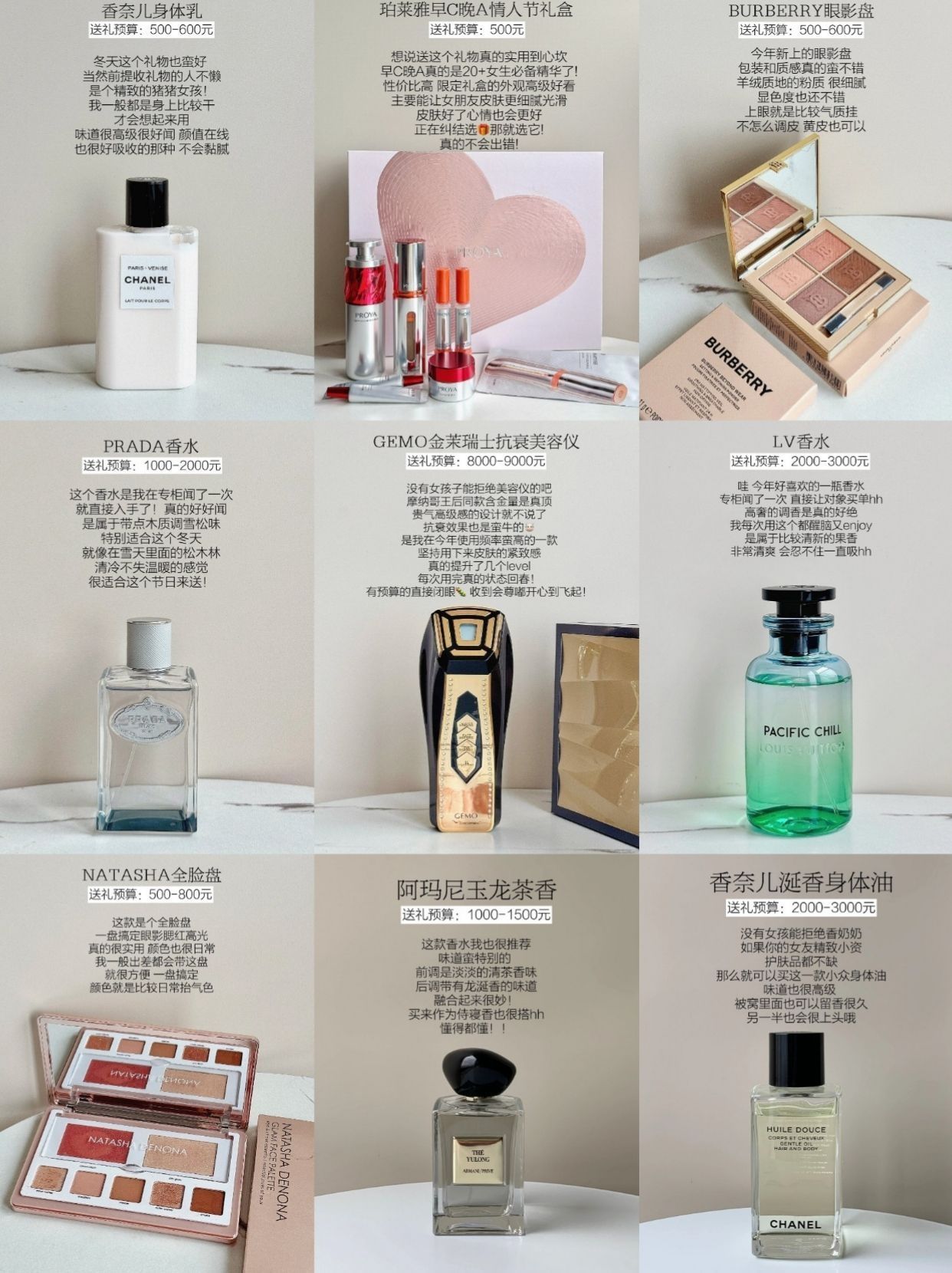 新的一年 这才是情人节礼物的正确打开方式嘛 送女朋友礼物可不能含糊啊💝 1️⃣香奈儿身体乳 送礼预算:500-600元 ✨素颜美女人手一套 身体乳选这个不踩雷 ✨高颜值贴心实用礼盒 早晚陪伴式护肤 2️⃣珀莱雅早C晚A情人节礼盒 送礼预算:500元 ✨早C晚A真的是20+女生必备精华 ✨限定礼盒的外观高级好看 3️⃣BURBERRY眼影盘 送礼预算:500-600元 ✨包装和质感真的蛮不错 ✨羊...
