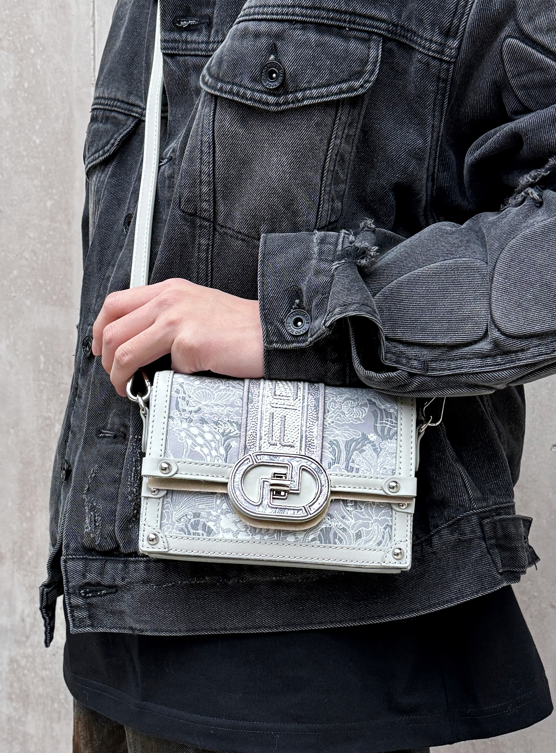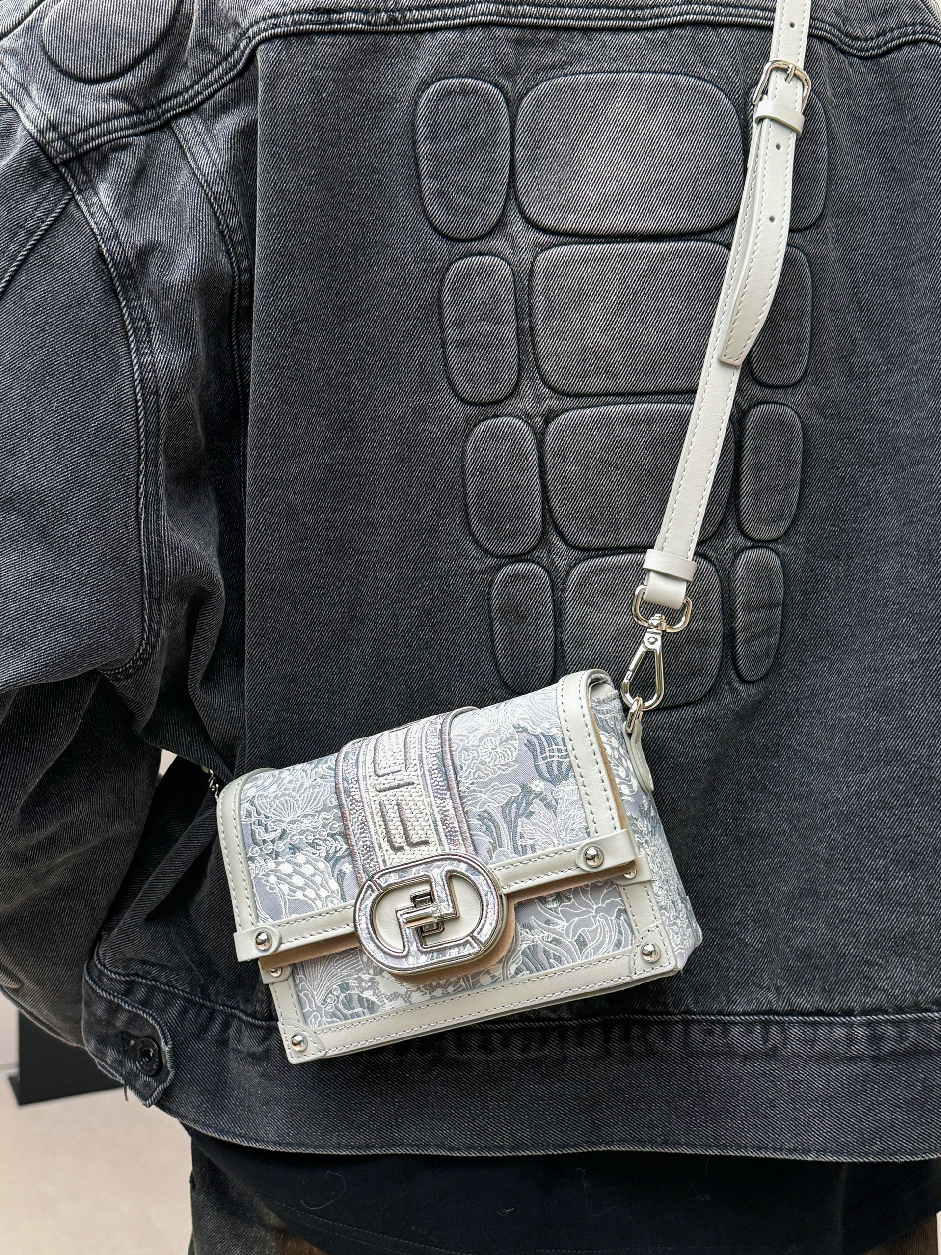 哈喽小伙伴们 这里是阿祖 - 时间过得好快哇 过完年就是情人节啦! 小伙伴们给她备好礼物了没🎁! 今天的分享很适合送礼喔~ (插一条日常穿搭分享) 黑色的牛仔套装上身很帅气! 搭配银色系的盒子包刚刚好! 银色的外观很有质感 不输大牌! - 重点来喽!(FION菲安妮的水墨盒子包) 包包表面是寸金织棉材质通过立体刺绣工艺制成 细腻度和光泽度都没得说~ 很用心❤️ 小巧的体积背起来很轻松 收纳手机...