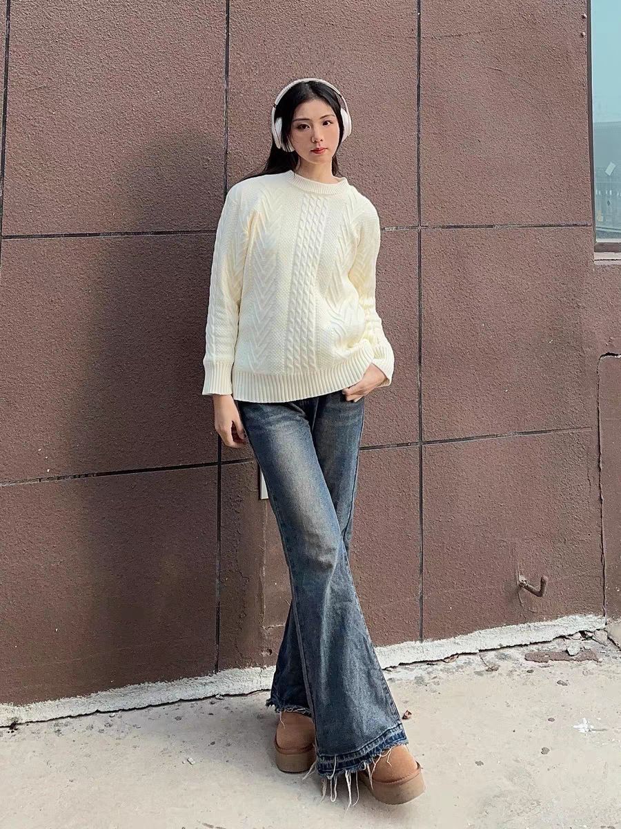 冬天穿一件厚实又保暖的白毛衣太有安全感啦 整体是奶白色,不是那种廉价的死白色😍 毛衣材质很不错,单穿也不会有扎人的感觉 麻花的花纹也很有质感,搭配水洗喇叭牛仔裤,太可啦 我168 50kg,穿的是m码,衣长刚合适