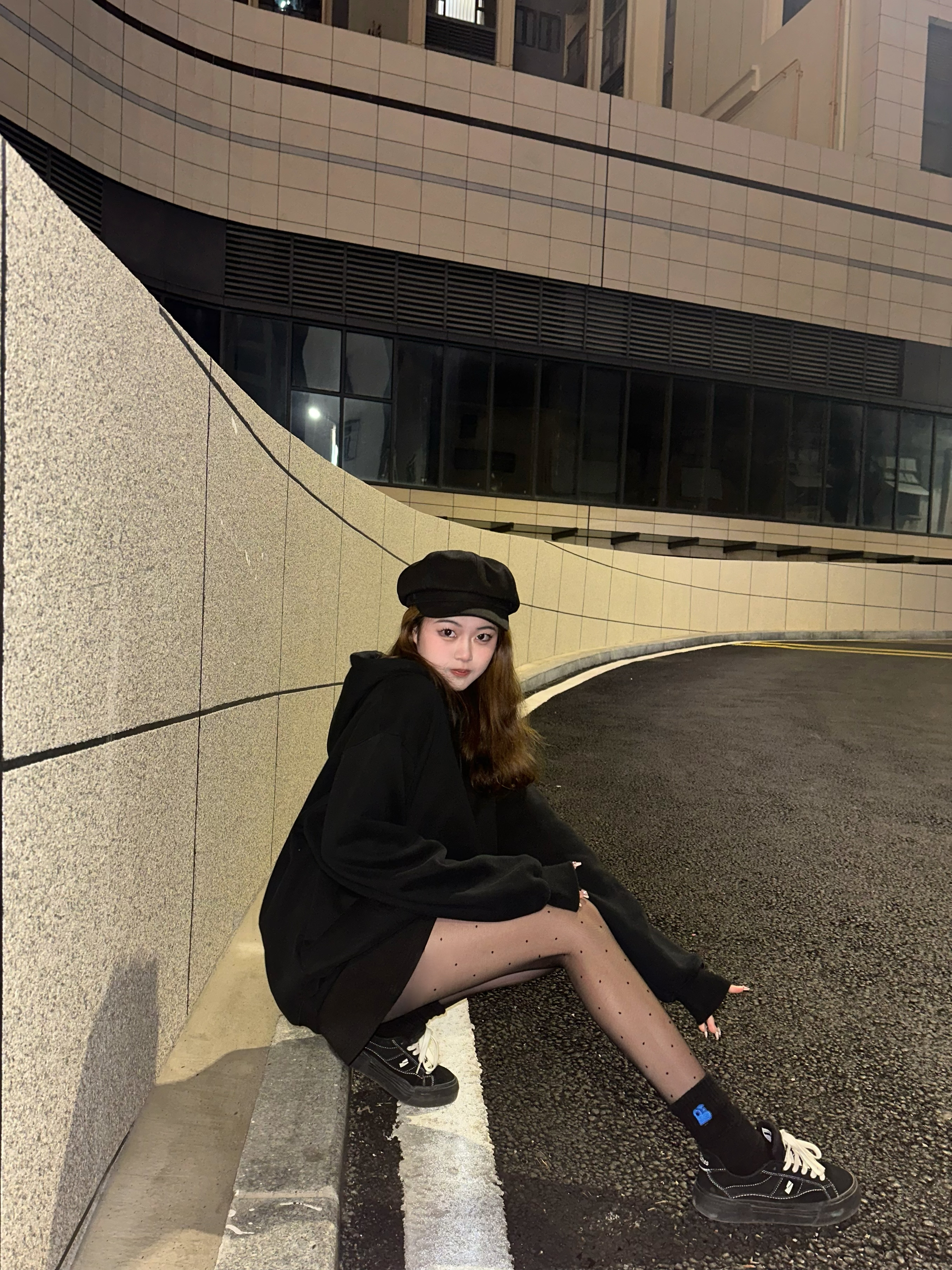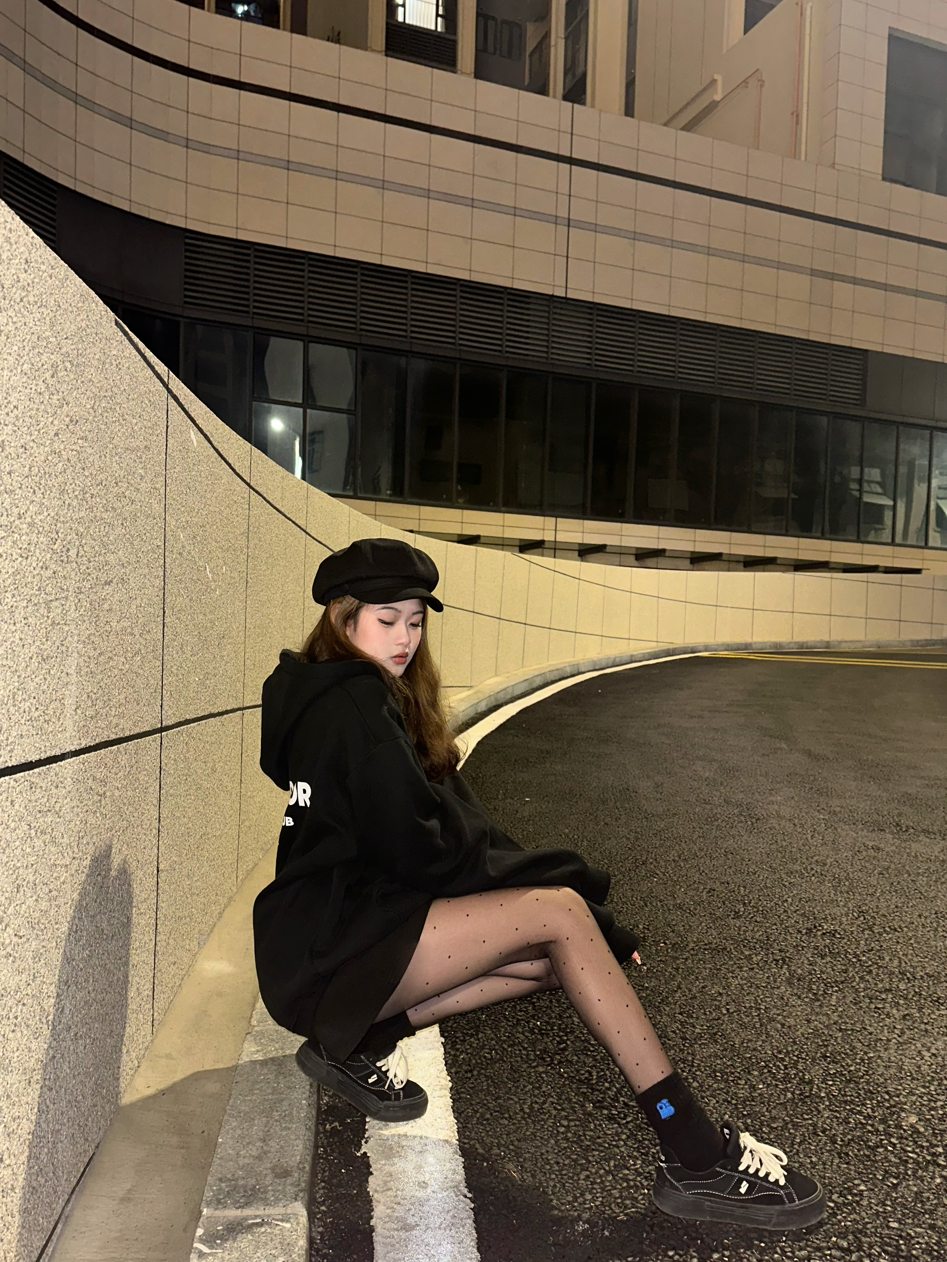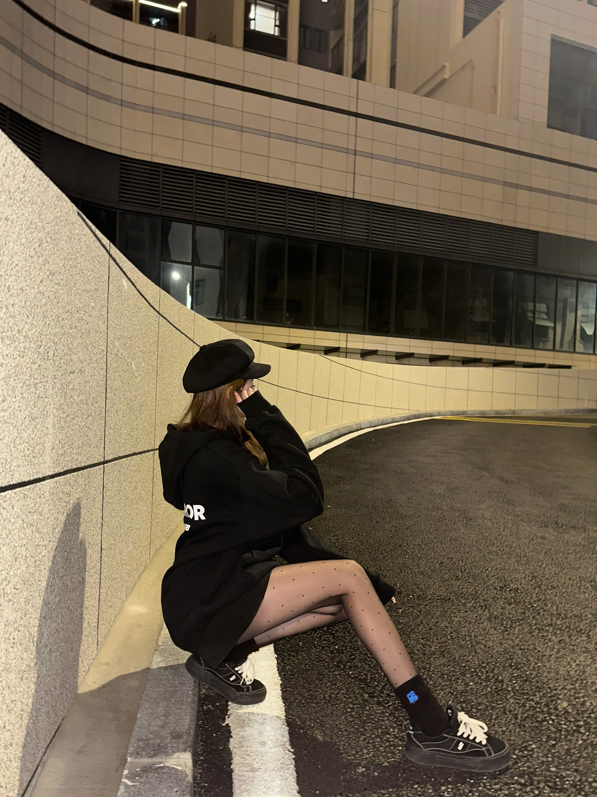 超爱黑色系穿搭呀,VEEMES的纯黑滑板鞋加上波点黑丝的搭配简直太斩啦✴️✴️✴️✴️ 而且又乖又酷,简直出门好穿搭 最后!新年快乐噢各位宝宝🤗