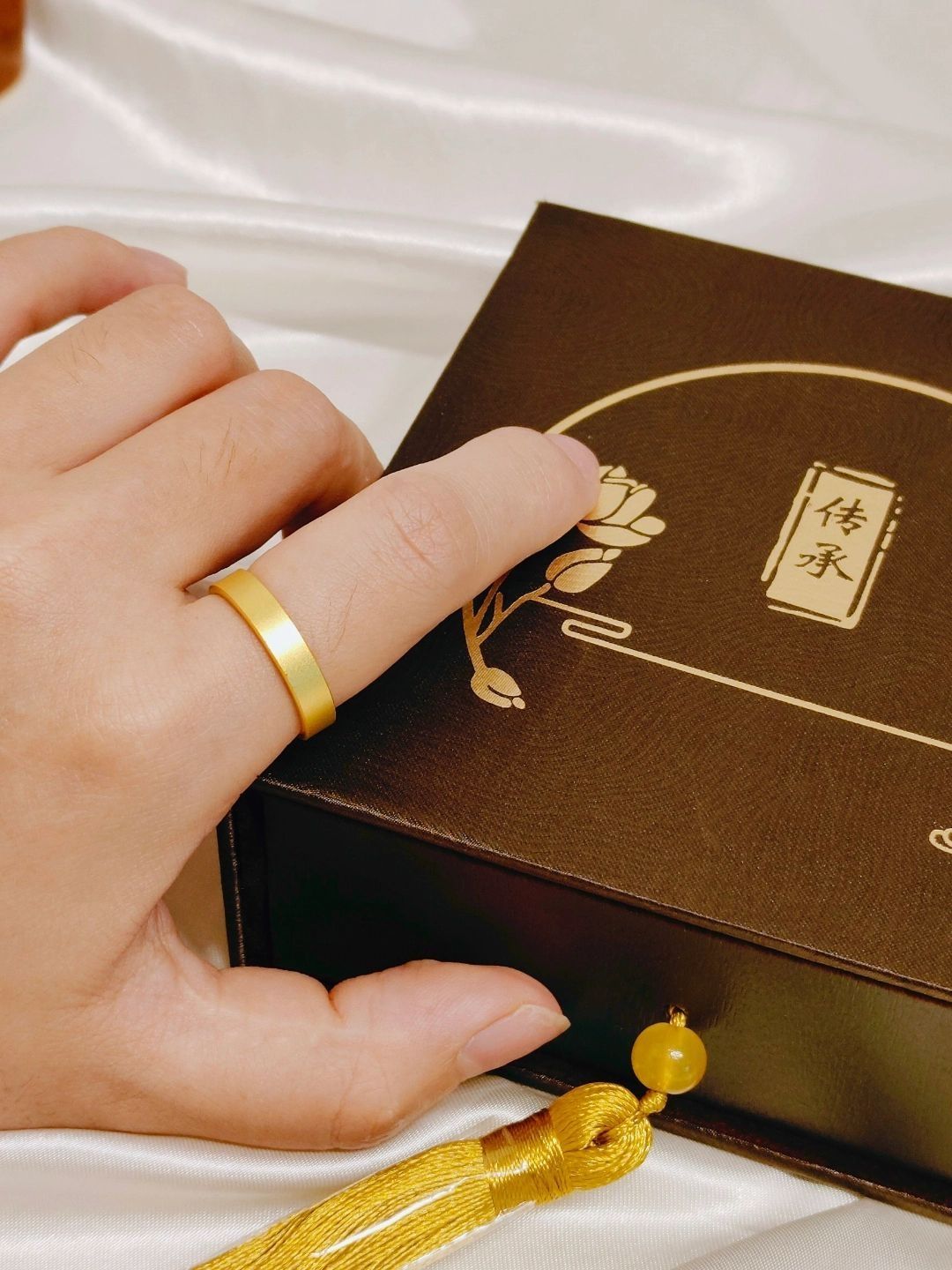 🎈今天给大家推荐 古法传承系列实心古法素圈戒指 🎈戒指整体呈哑光质感,凸显黄金原色调,不仅看上去有分量,戴起来也超级舒服,而且戒面通体无纹饰,暗藏平安无事的祝福精致的磨砂质感,名副其实的简单又不俗气真的太适合低调的美女佩戴了!又可做情侣款 (图片来自博主:庆怡珠宝)