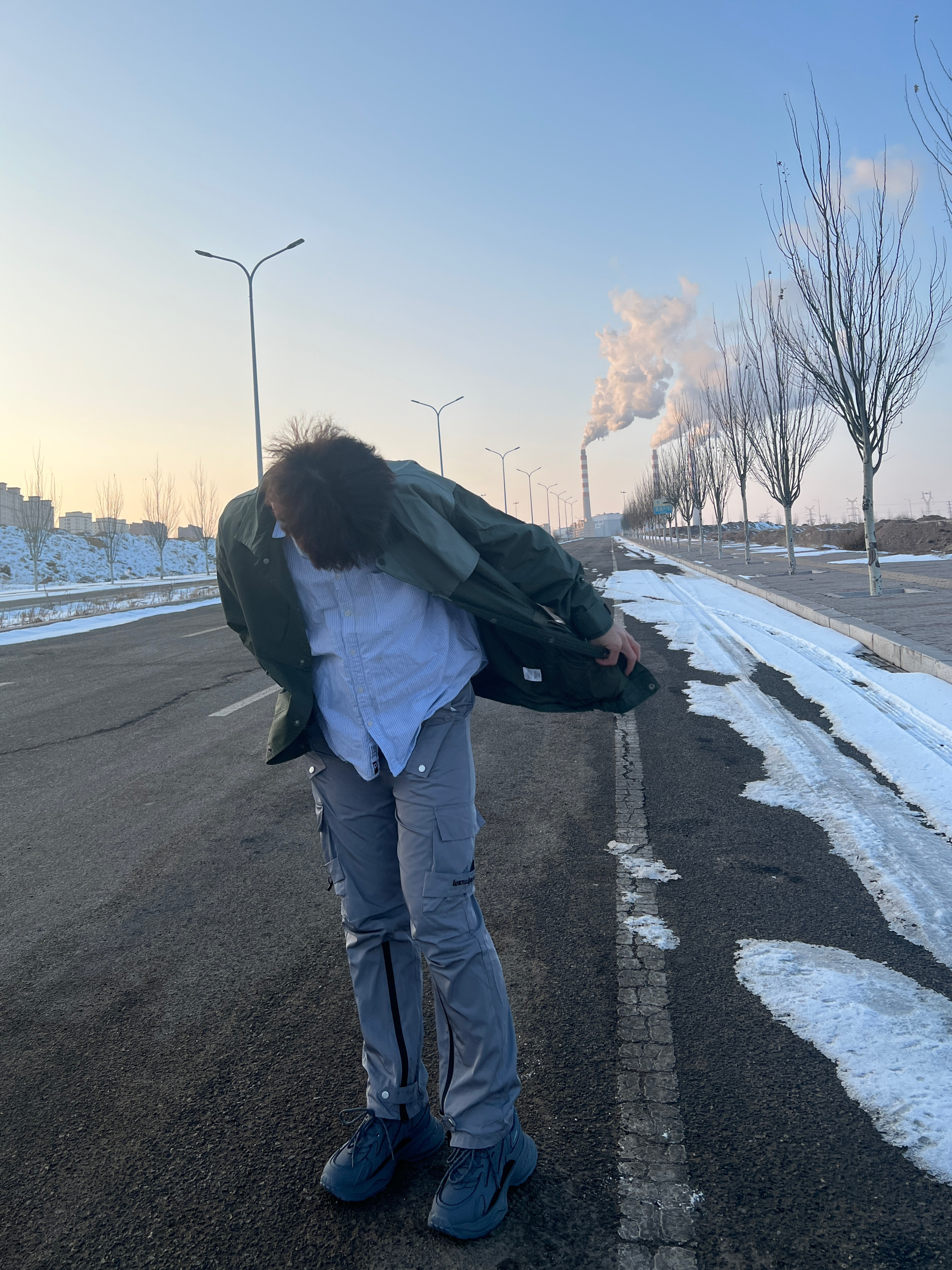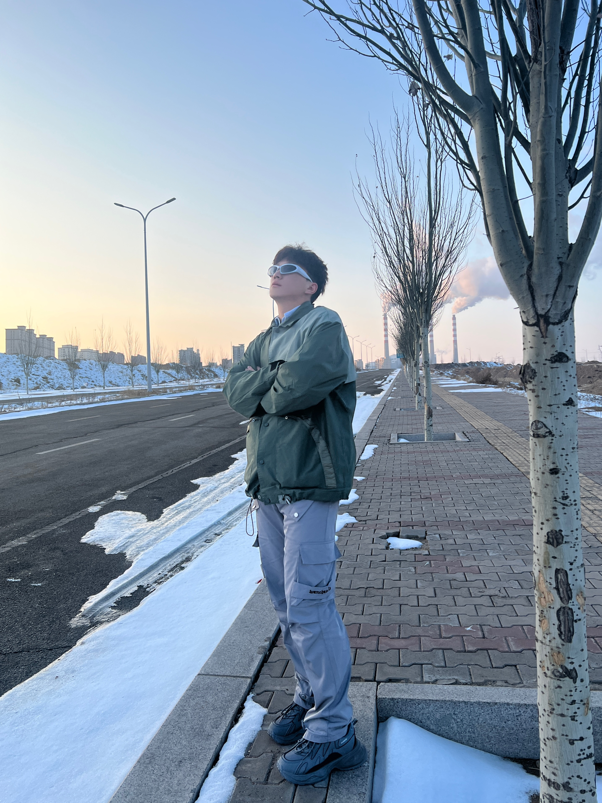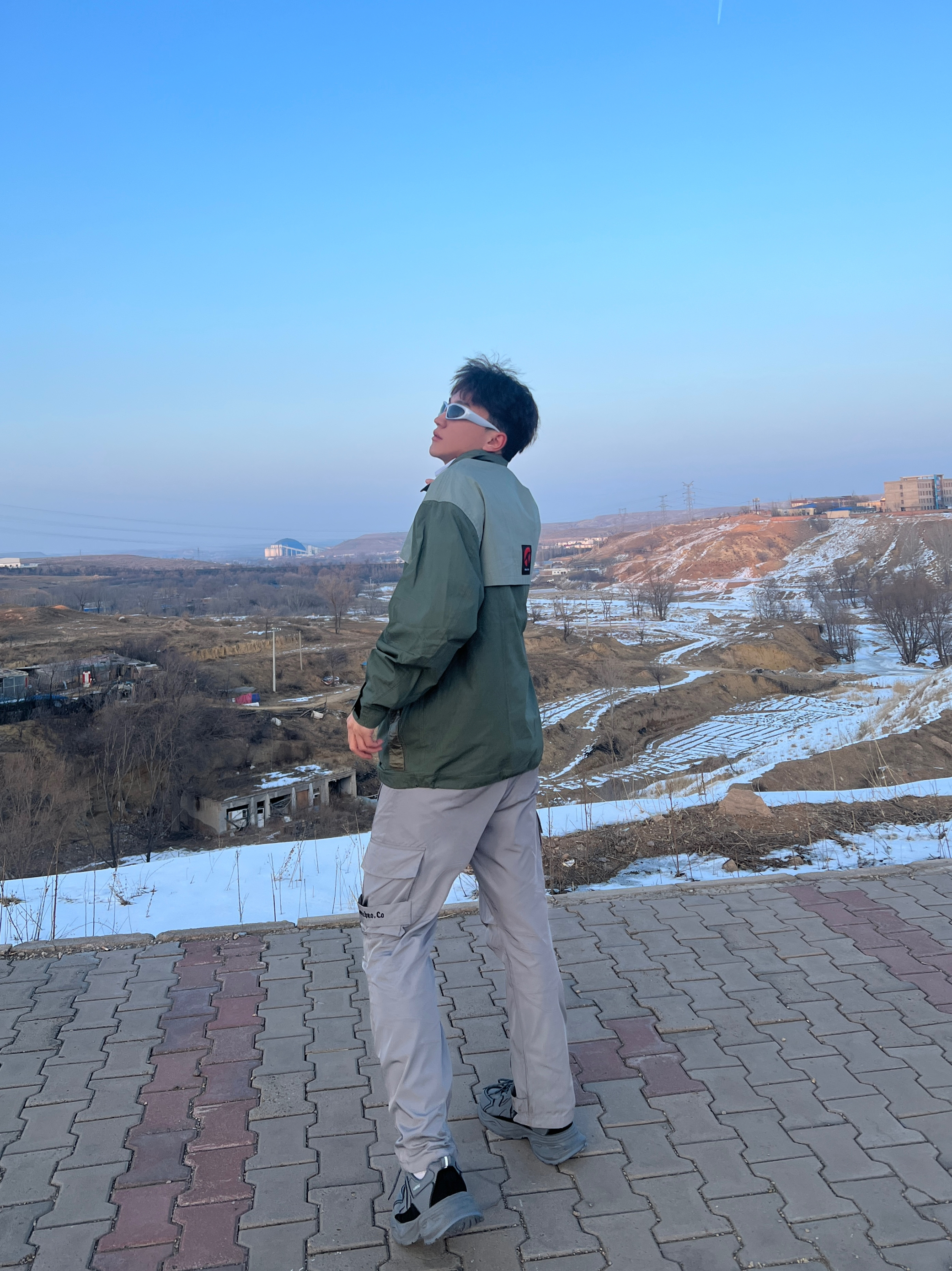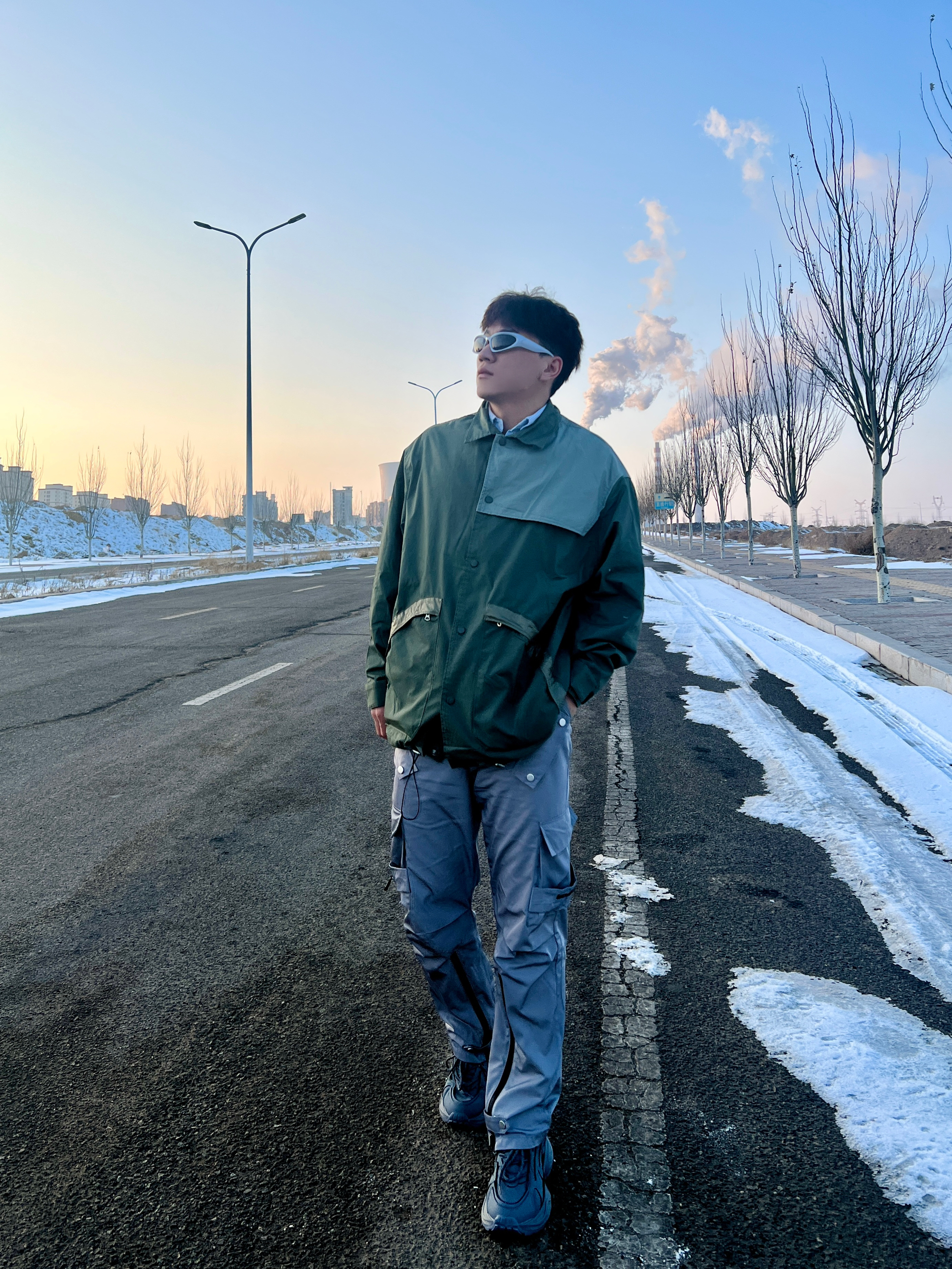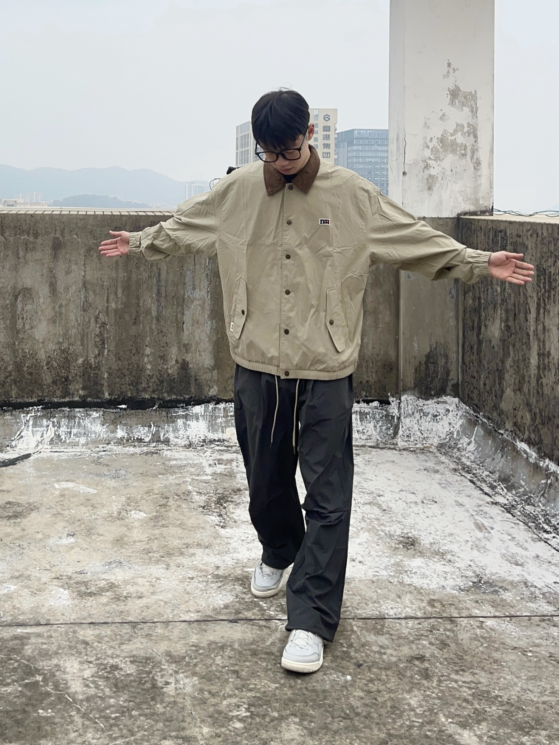 今天一身机能风穿搭⚙️ 上身一件军绿色中长风衣 拼接衬衫领少年感满满 单排扣简约百搭 抽绳设计户外机能性是不错的 ——— 🧊搭配一条灰色冲锋裤 宽松褶皱的版型很有质感 防水防风的面料适合爬山旅游 裤脚的拉链设计个性潮流 搭配风衣和冲锋衣都是可以的 ——— 👔👖:我185/75一身都是2xl,都是比较合身的,不过体重稍大的建议拍大一码。