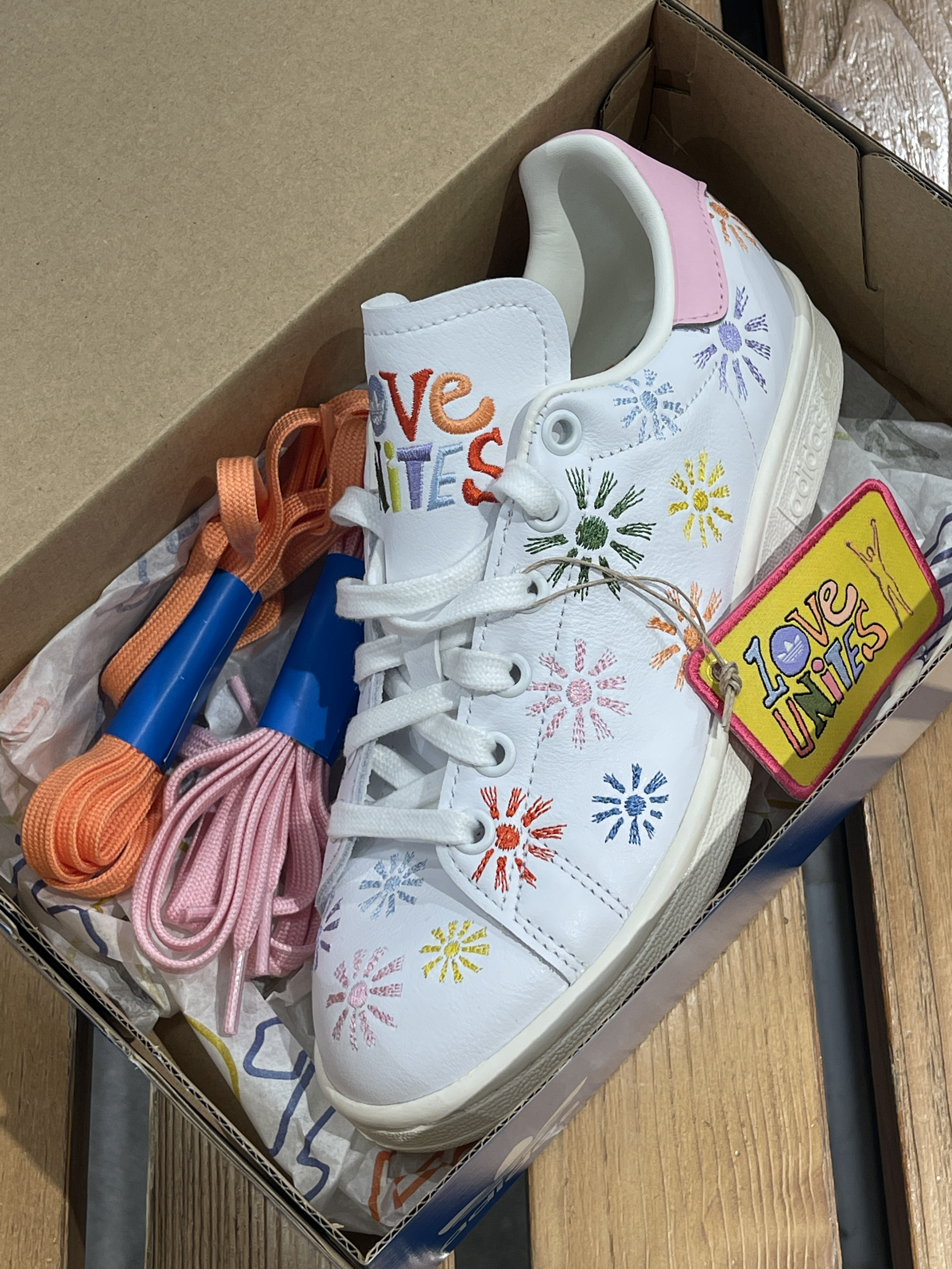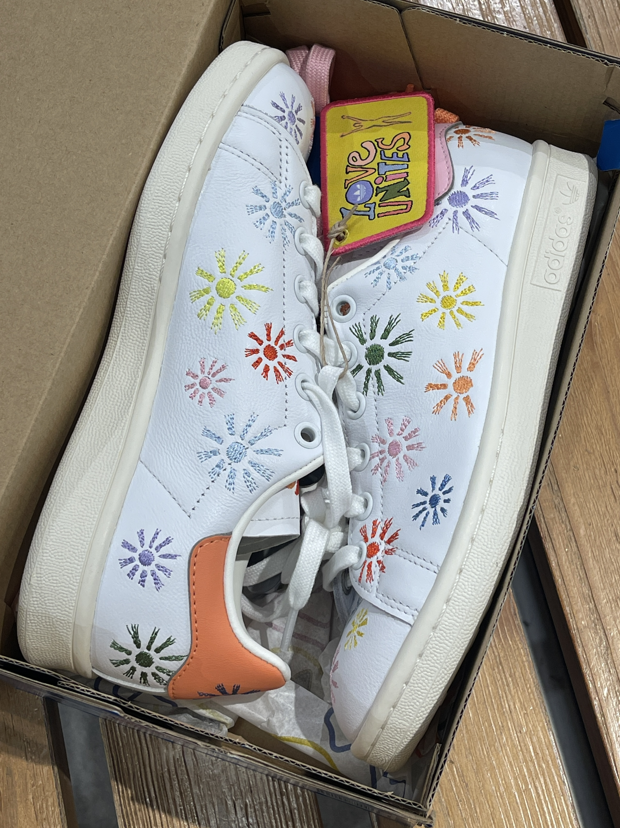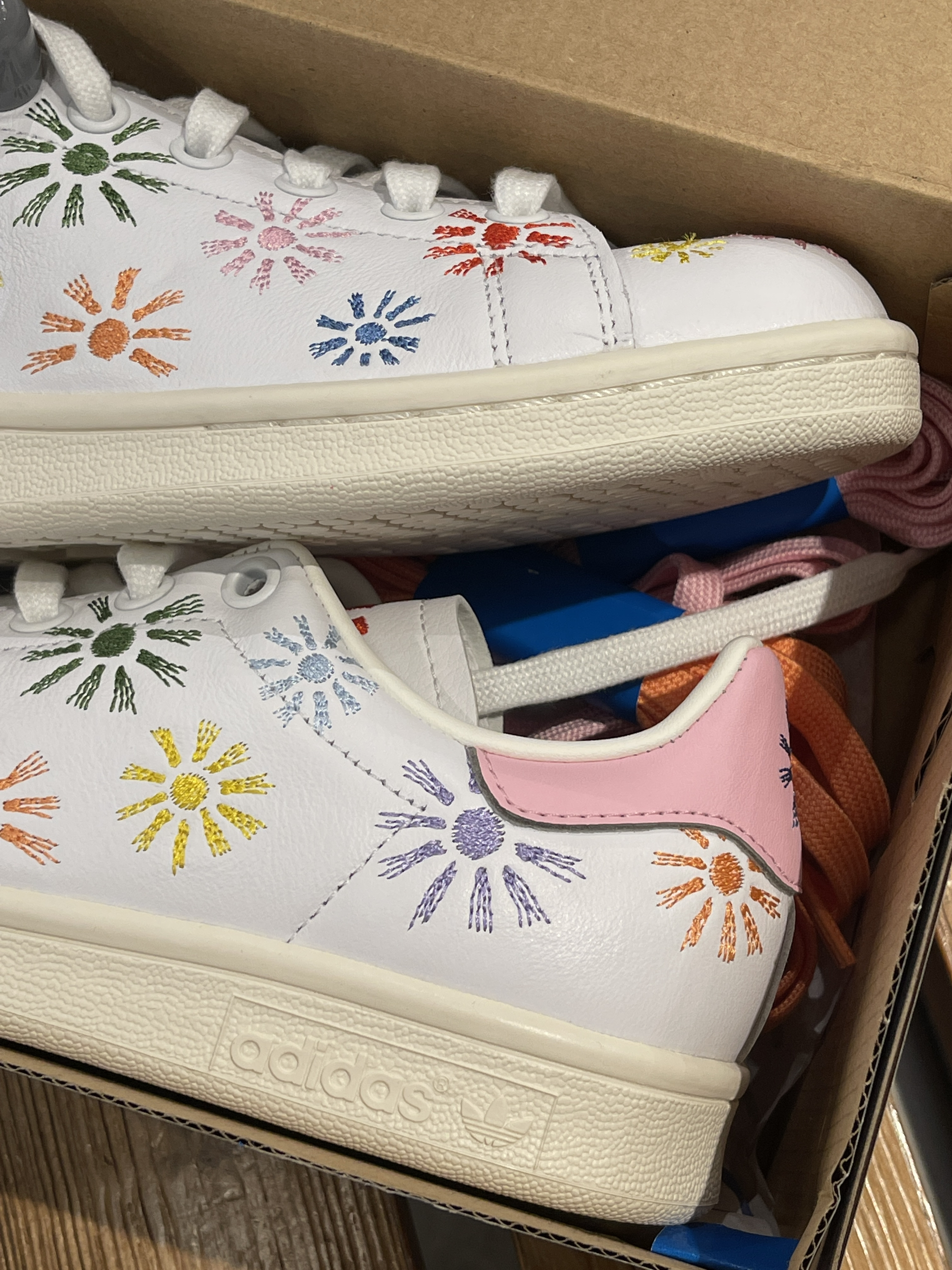 过年准备去哪里玩?一双舒适百搭的鞋子必不可缺!🤩 adidas|originals StanSmith 太阳花板鞋🌼,经典复古的阿迪史密斯贝壳头鞋型,白色作为基调➕多彩太阳花刺绣,上脚高级又百搭~🥰