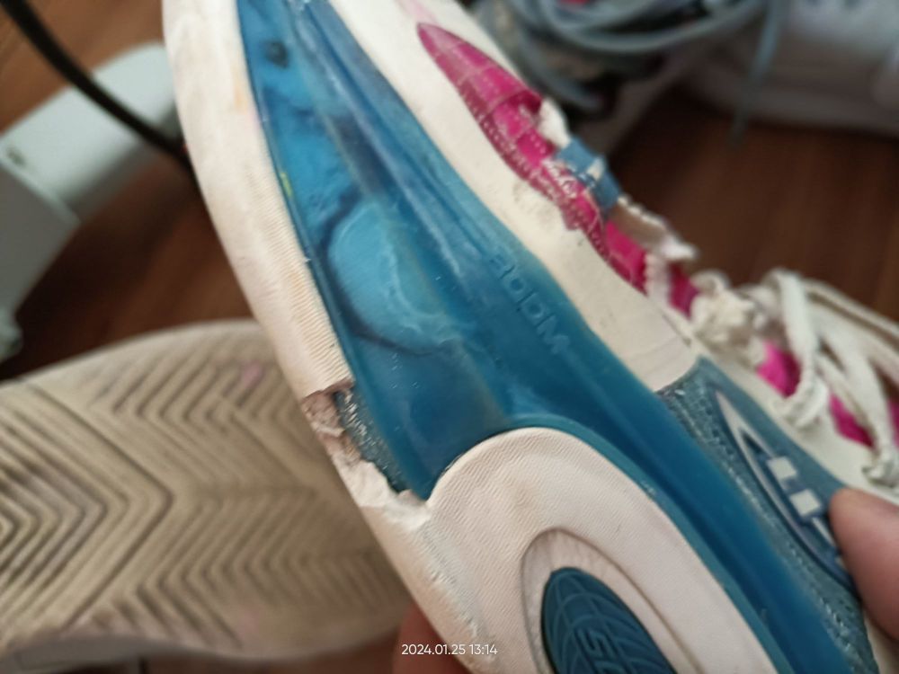 那个想问音速11的哥们可以看看以下的球鞋(半个学期左右)小前打法形成的战损。防侧翻一般般。耐磨差,其他的都是极致性价比。关于音速11点磨损最主要出现在后跟和双脚内侧底部。(我的还有脚踝处和姆趾顶处,变相导致。鞋带也被磨)所以寿命不长,适合日常和兄弟菜鸡互啄。