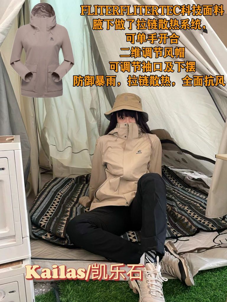 🔰Arc'teryx/始祖鸟 🔺科技(面料) N40p 3L Gore-Tex面料 🔺防水指数、透气指数 28000mm、25000g/㎡ 🔺口袋细节 两个口袋且配有拉链头 🔺设计细节 1.魔术贴袖口粘扣带 2.腋下拉链,便于通风 3.兼容头盔,可调节的StormHoodTM兜帽 🔺优势 轻薄耐磨,防风防水,透气 🔰Kailas/凯乐石 🔺科技(面料) FLITERFLITERTEC科...