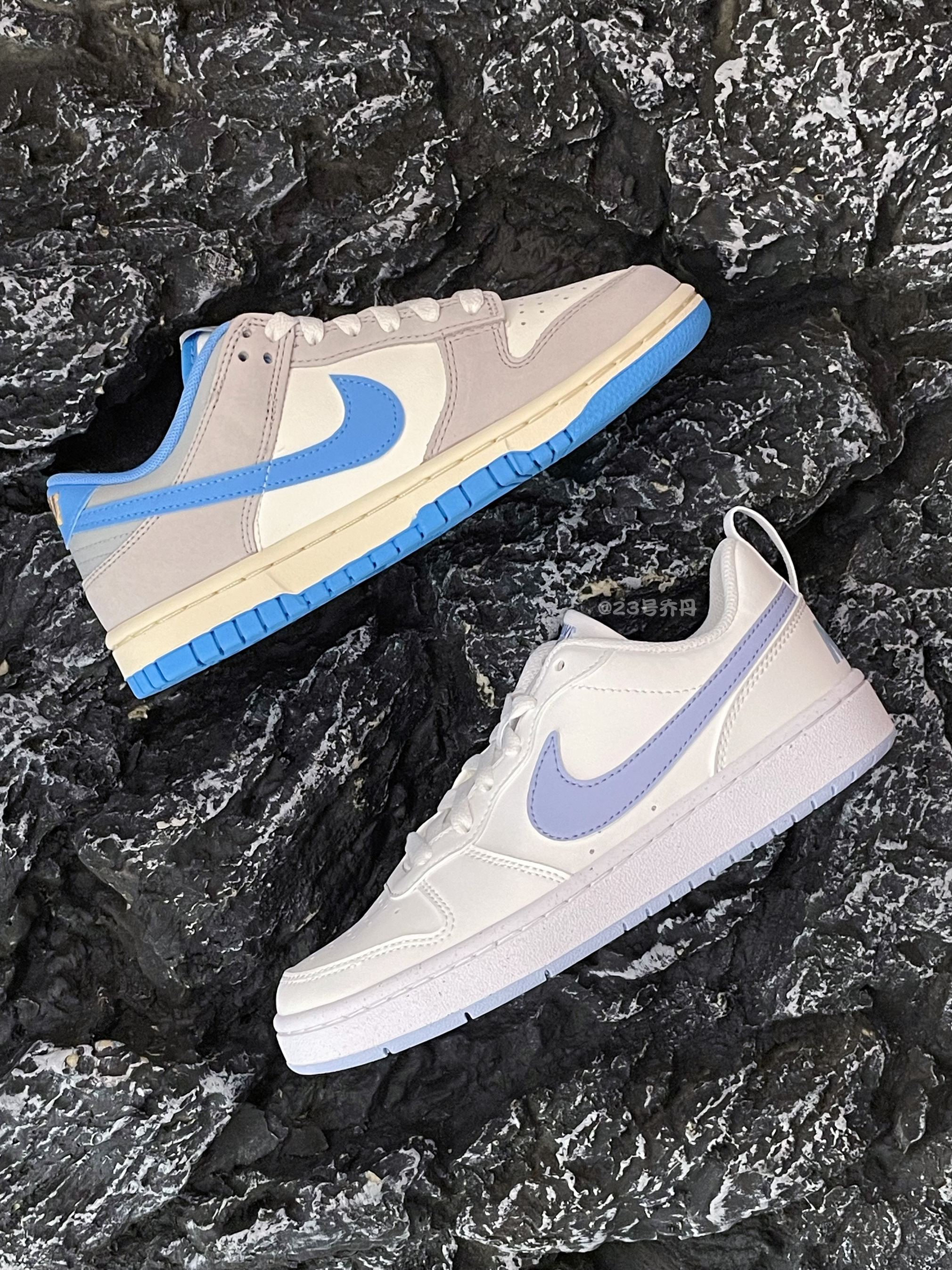 今天给大家分享两双颜值和性价比都不错的 Nike Court Borough &Dunk Low『白蓝』👟 鞋款分别由白色/雾霾蓝和白色/灰色/蓝色搭配 鞋面大面积选用了易于打理的光面皮革材质 鞋头密集的透气孔保证了较好的透气性 鞋舌/鞋尾的logo图案彰显了鞋款身份 中底部分的一定增高效果可修饰腿型 最后分别由雾霾蓝/蓝色橡胶大底收尾 整体来说这是两双颜值挺不错的小板鞋👟 配色清爽 时尚百搭 适...