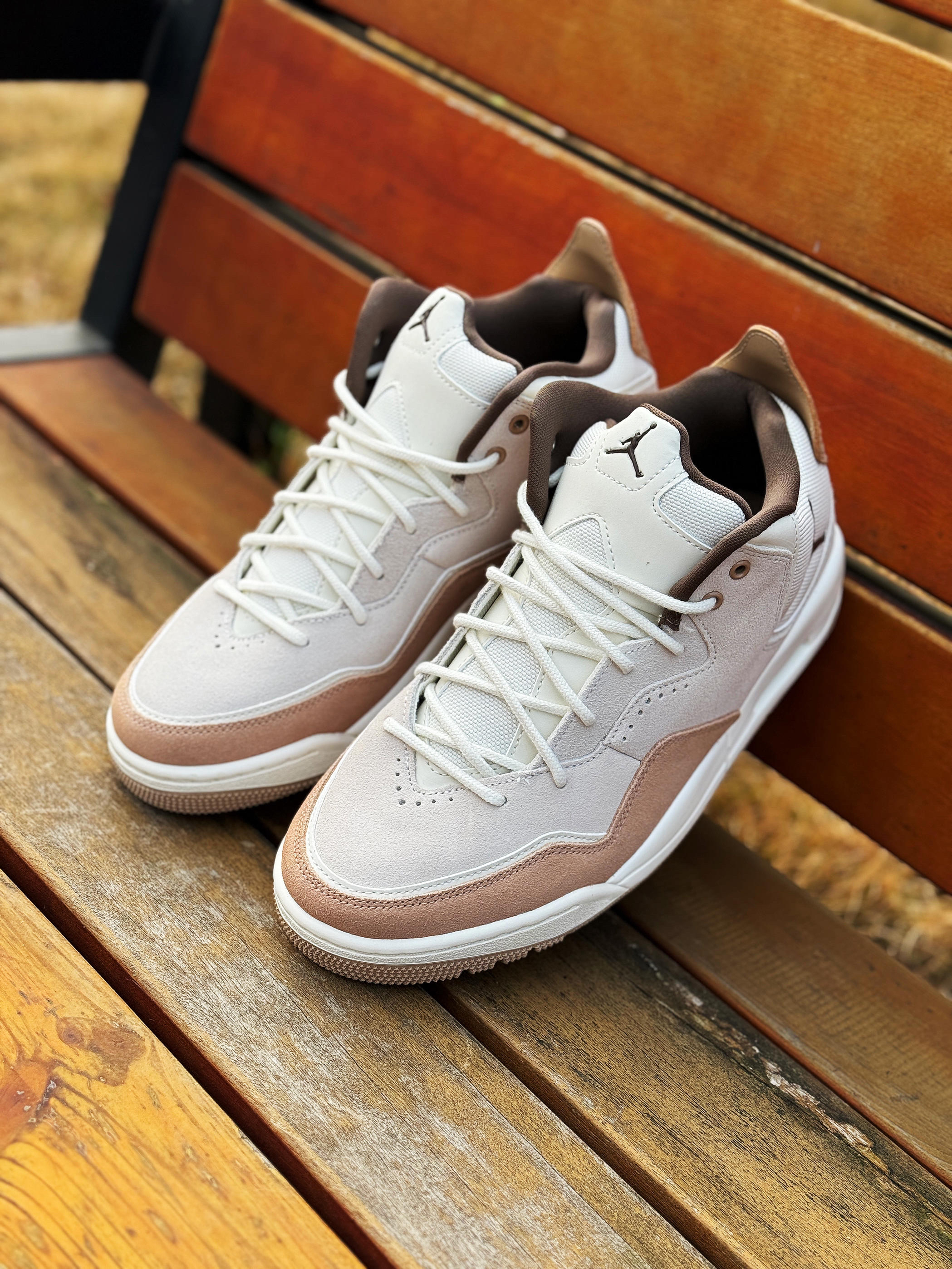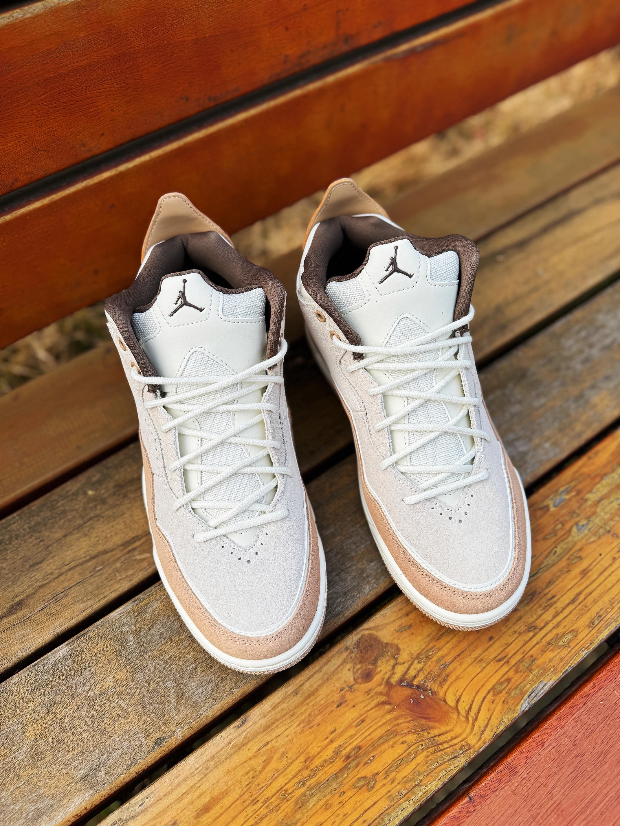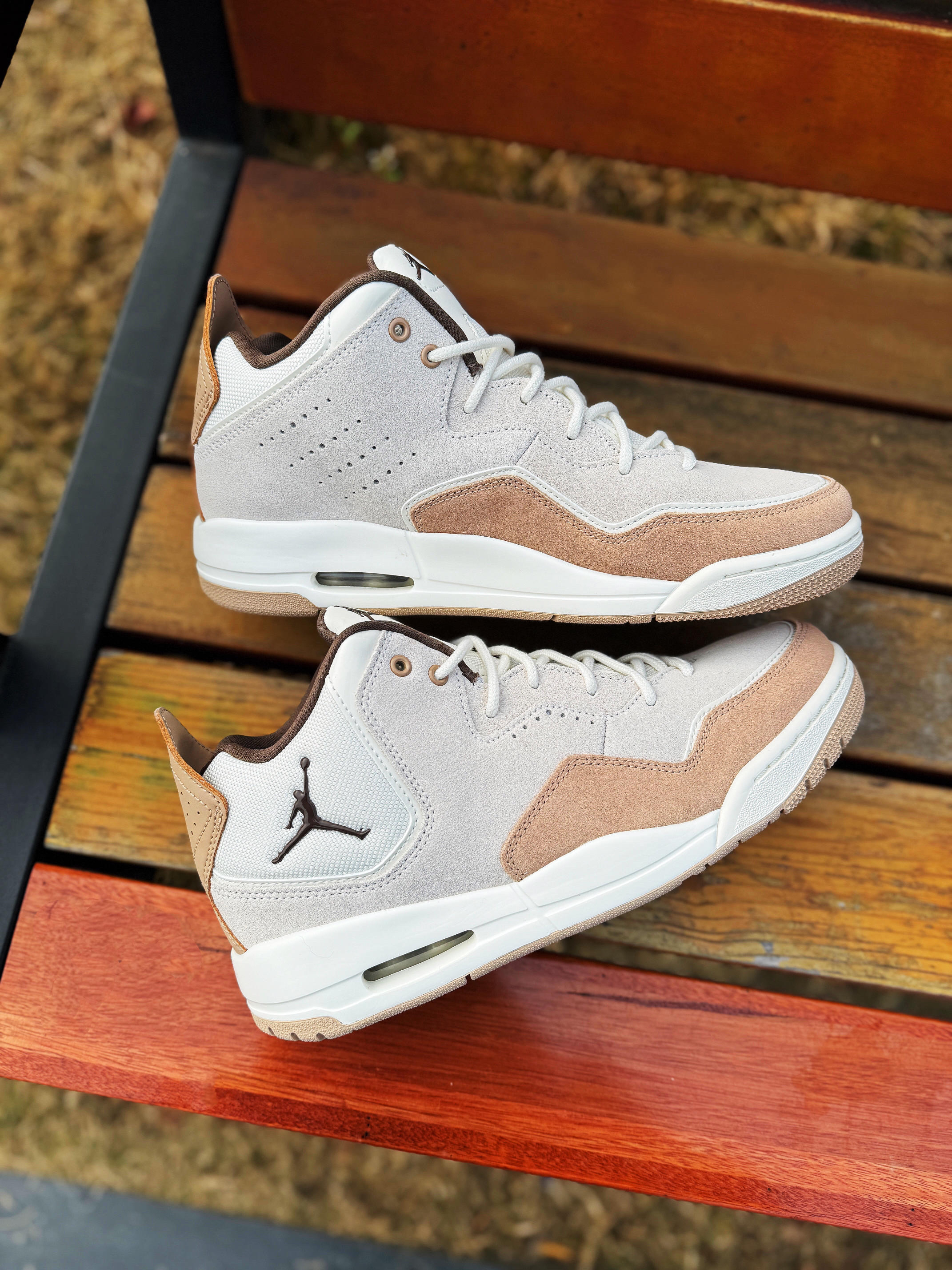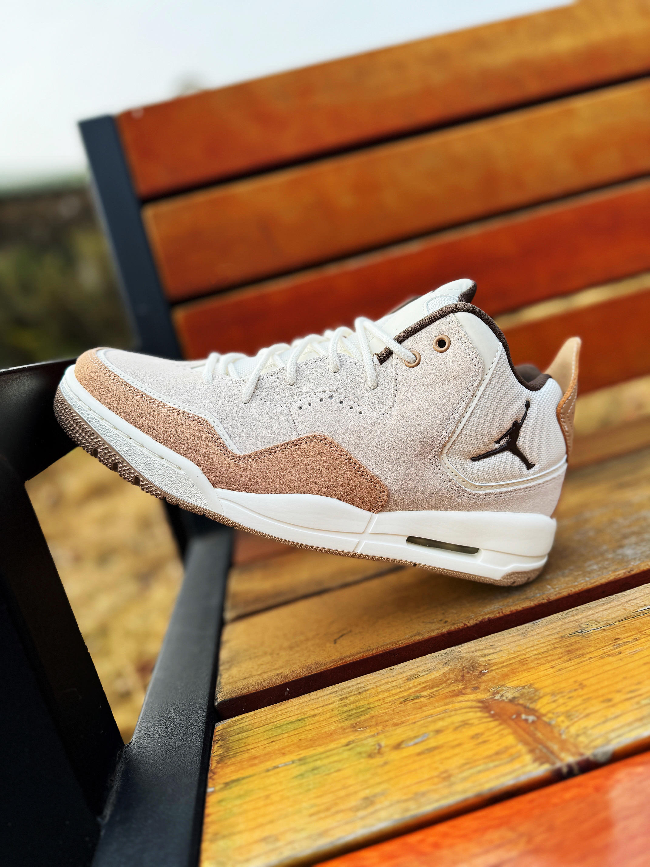 今天分享一双平价球鞋“Jordan Courtside 23” 外形酷似AJ3 百搭耐看 冬季穿很不错! 鞋子米白色搭配棕色 高级简约!皮革拼接打造的鞋面质感很好 层次感丰富!中底搭载可视化气垫 AJ3的外底直接移植过来 有那味儿了 复古感十足! 整体来说 颜值不低 是一双非常适合日常穿着的通勤鞋款 尺码正常 搭配各种长裤也是没问题的!