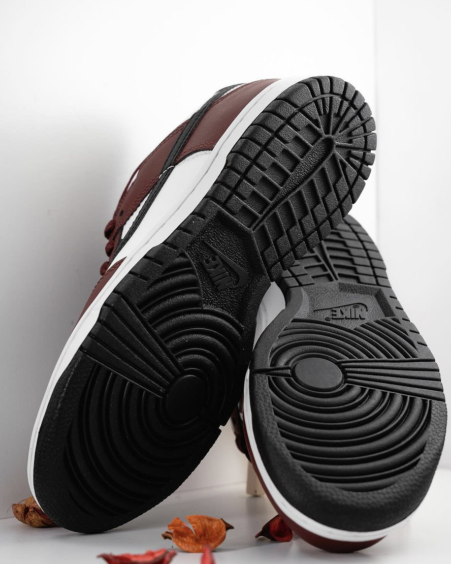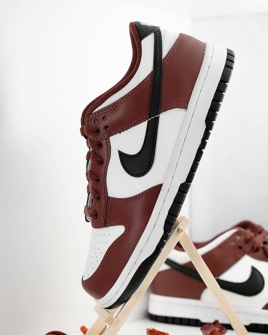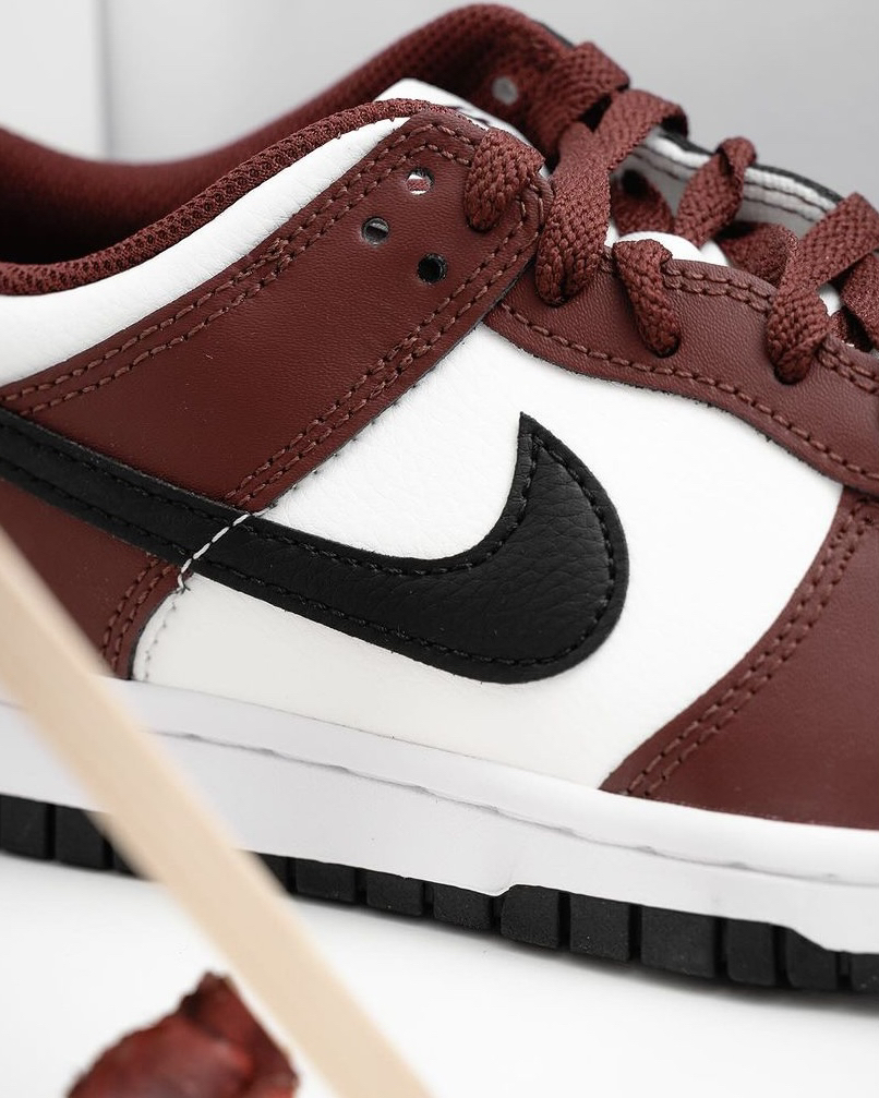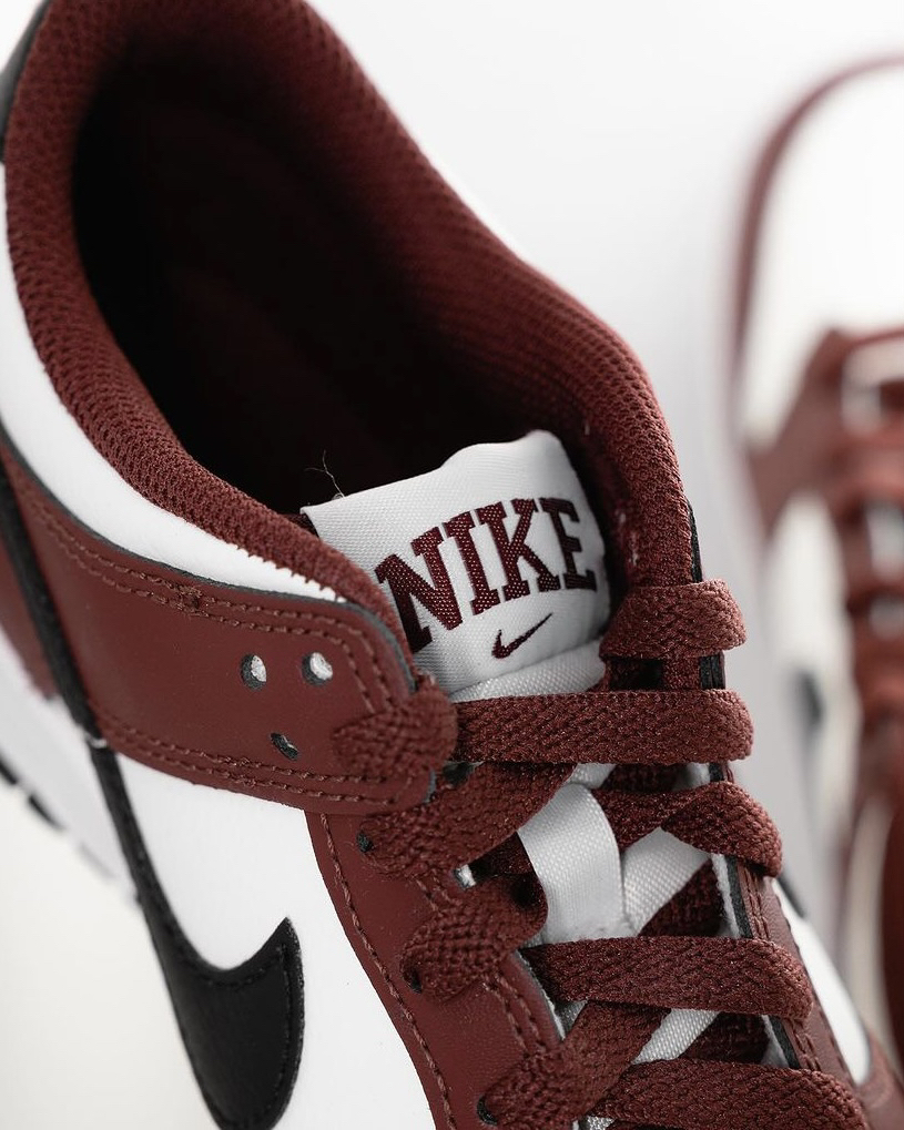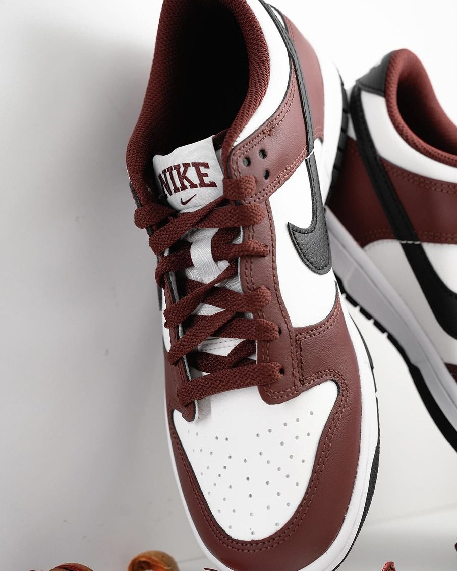 鞋名:Dunk Low 酒红 外观及细节: 鞋子的外观还是比较普通的,就是低帮的Dunk板鞋,只是换了个配色而已,这双用了酒红色与白色的组合,看着复古还可以,但整体的脚感依旧没变化,不过春季出街穿它还是蛮有辨识度的。