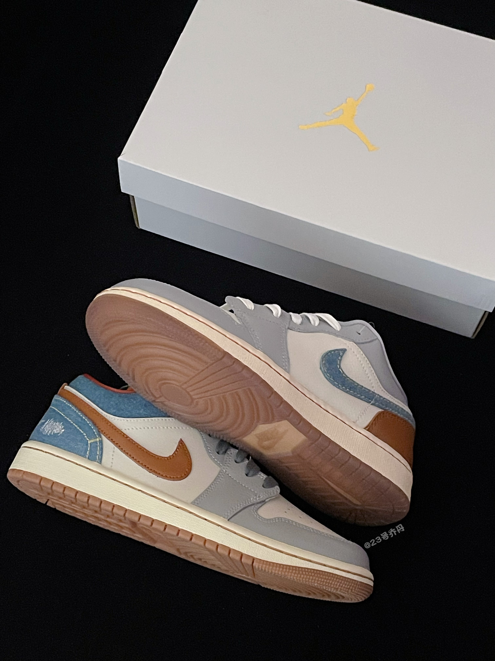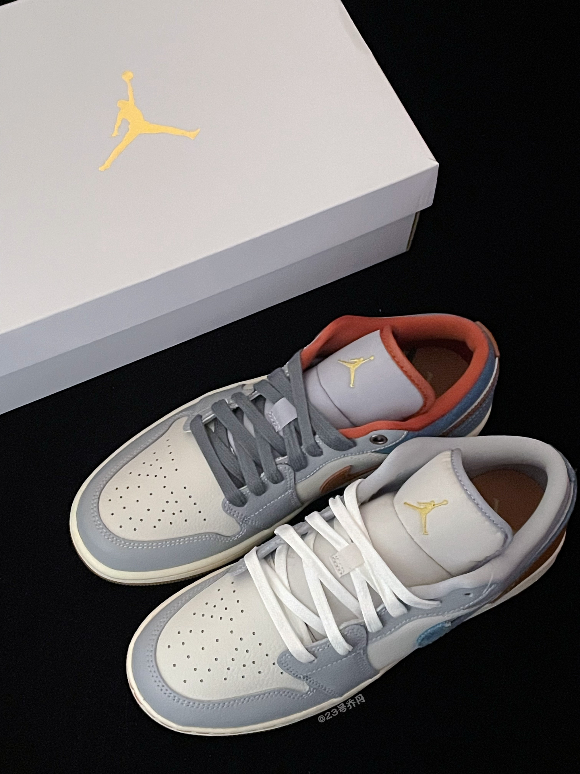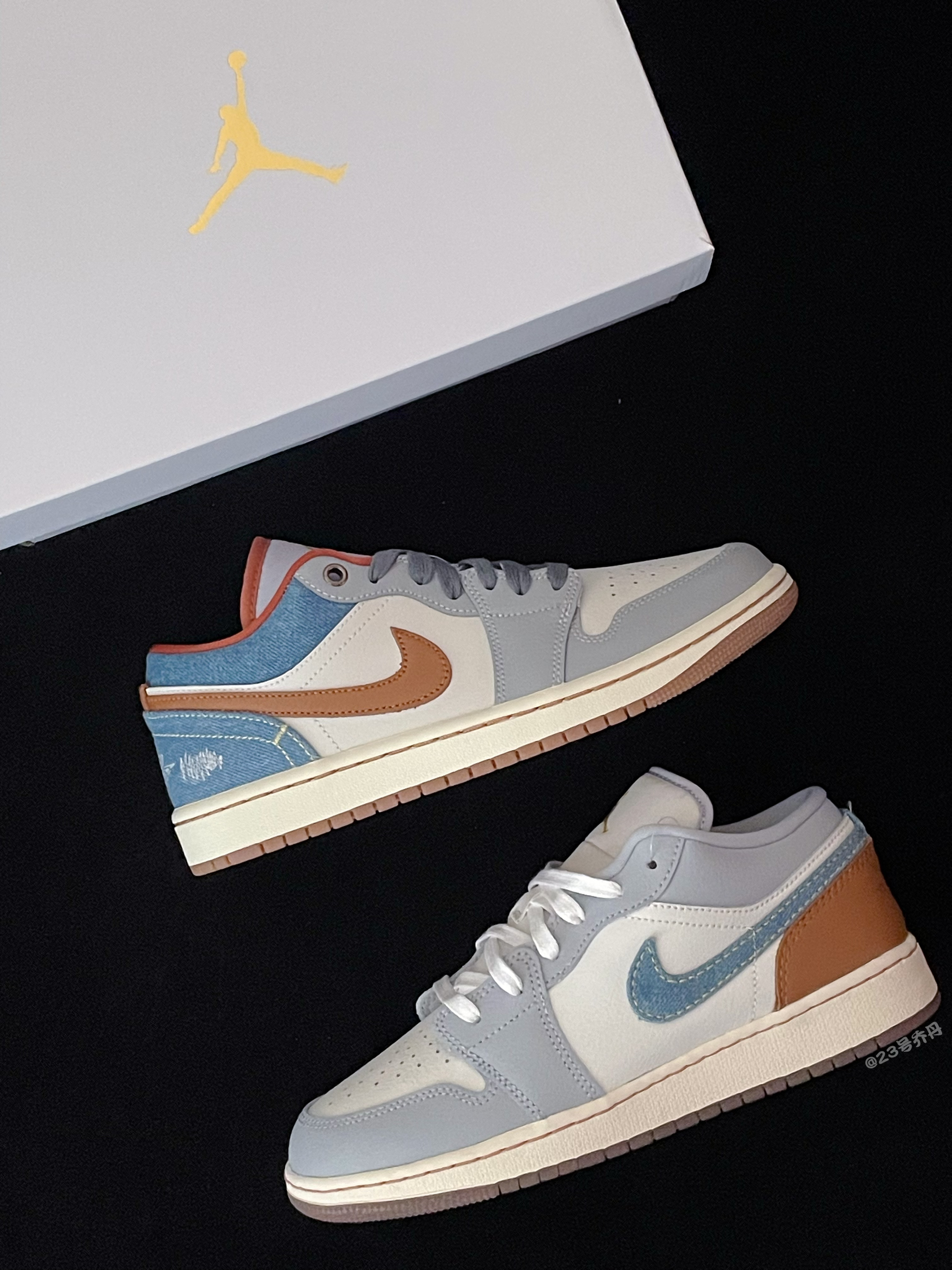 今天给大家分享两双颜值和性价比都不错的 Nike Air Jordan 1 Low『白蓝』情人节💘限定 鞋款采用了白色/雾霾蓝/棕色等搭配 鞋面大面积选用了易于打理的光面皮革材质 鞋头密集的透气孔保证了一定的透气性 米白色中底的一定增高效果可修饰腿型 最后由半透明的棕色多纹路大底收尾 这两双Air Jordan 1 Low『白蓝』小板鞋👟 配色清爽 复古百搭 适合日常休闲或通勤 ⚠️尺码方面建议选...