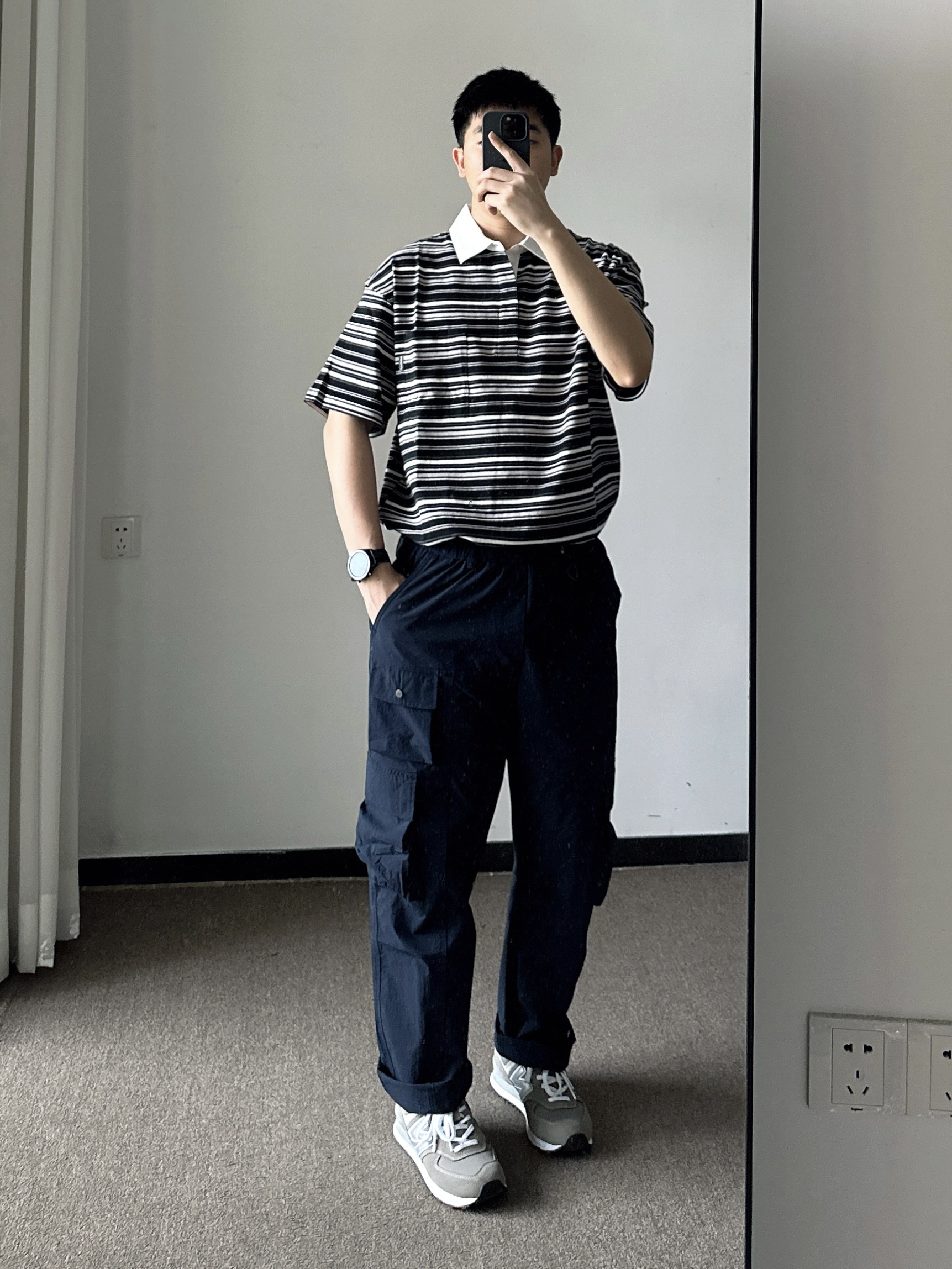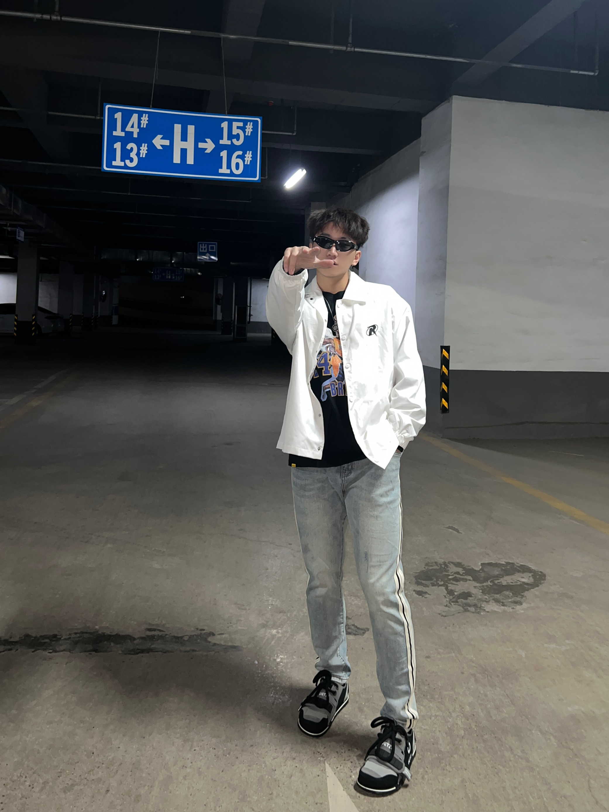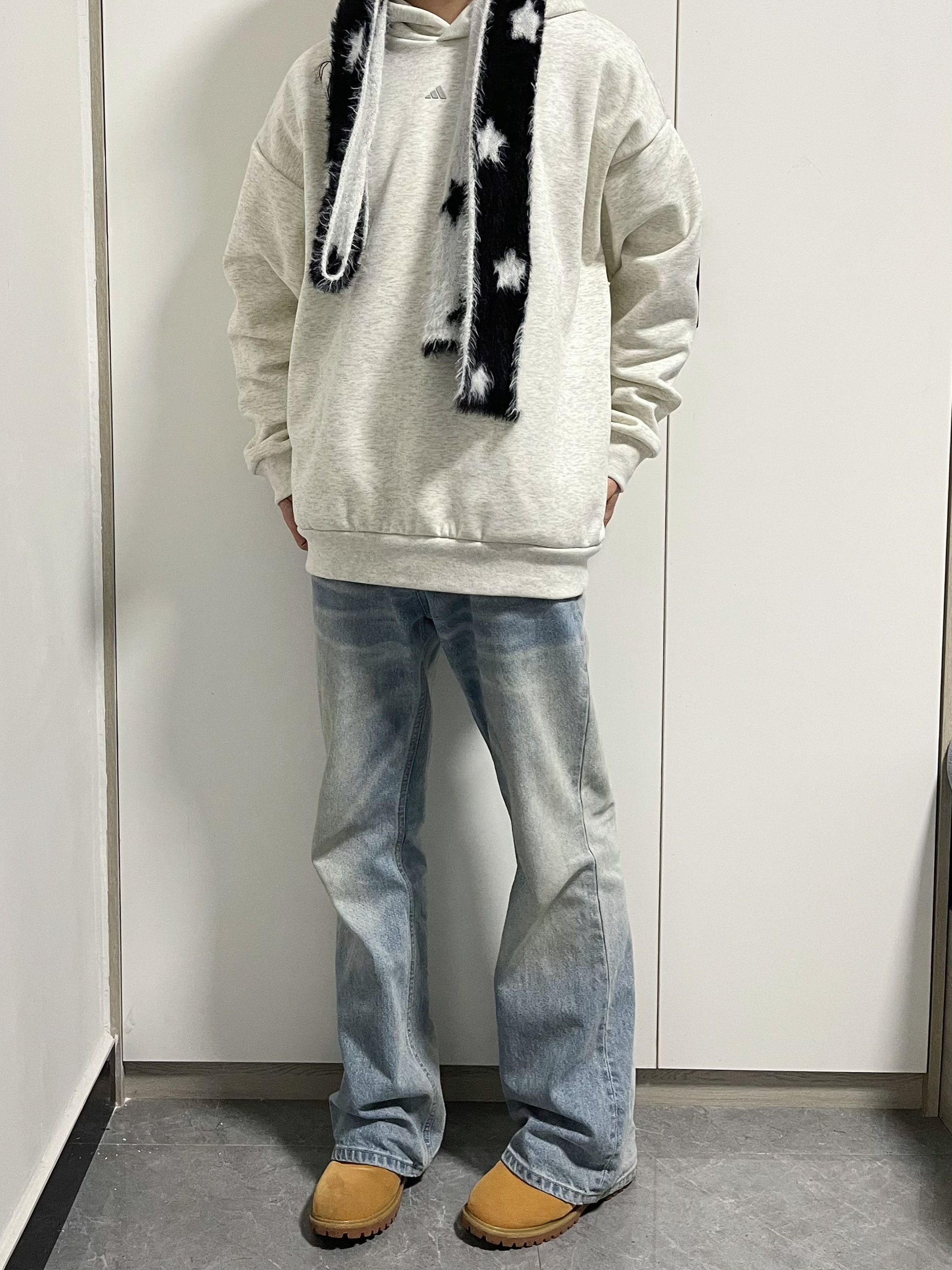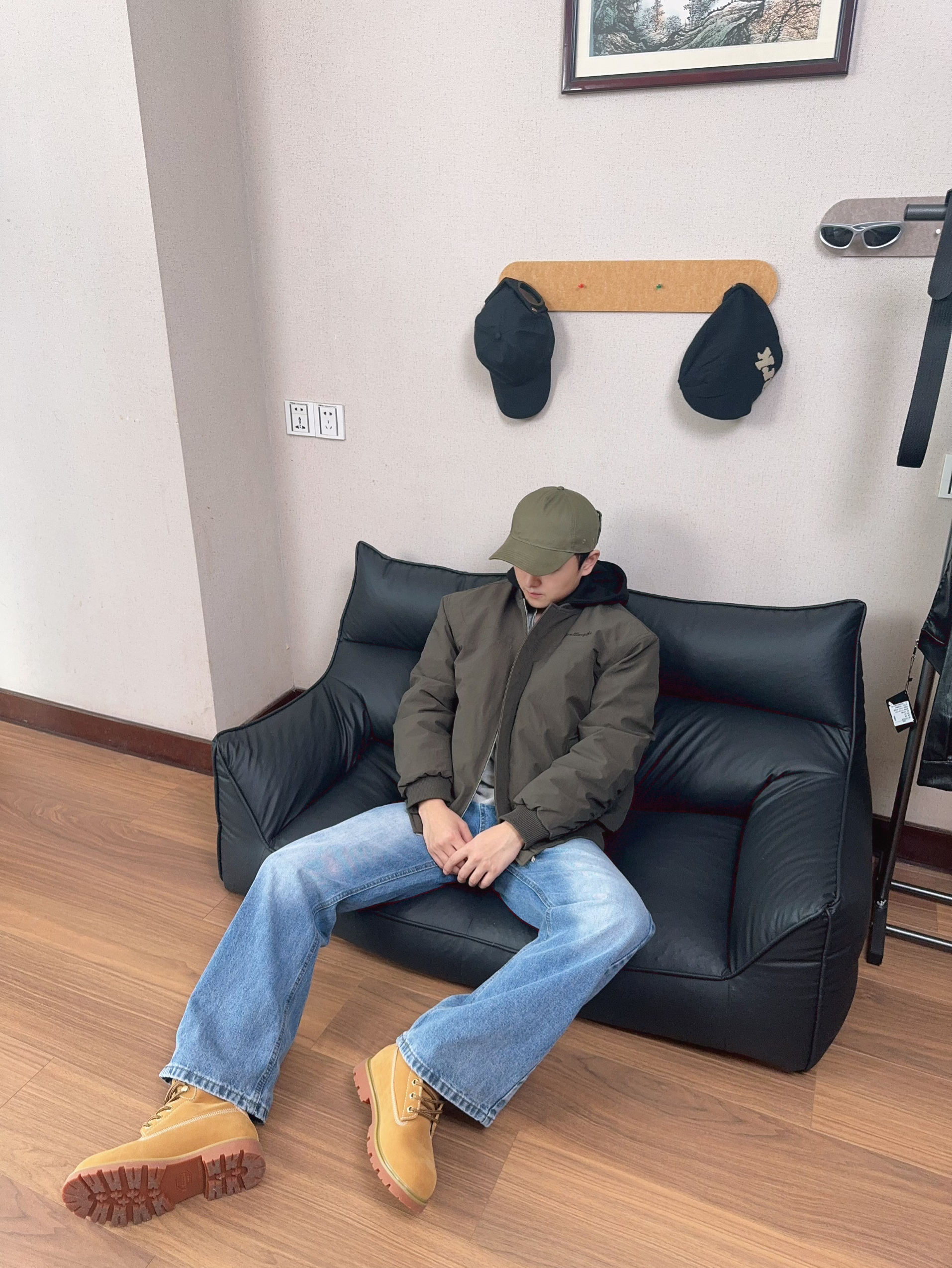 今天上身一件染皮废土风夹克 下身到一条工装裤 鞋子选择马登的大黄靴