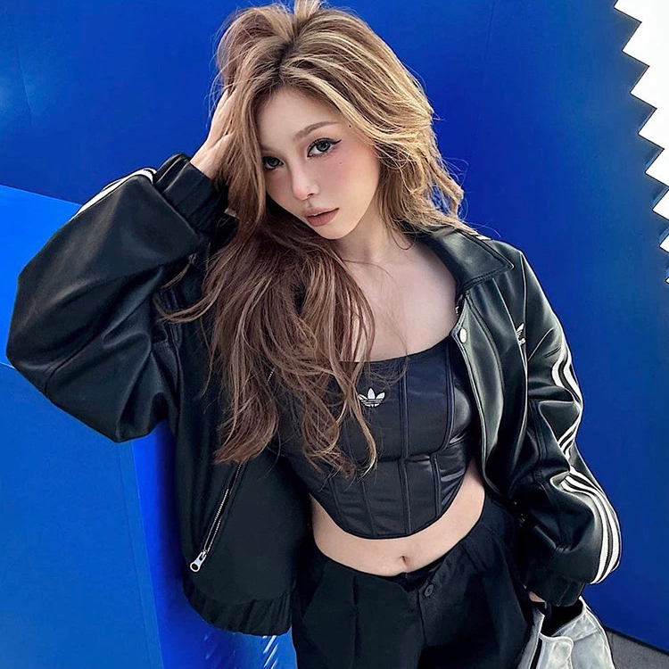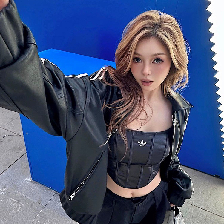 辣!辣!真的很辣!三叶草是真的懂辣妹穿搭,黑色仿皮质鱼骨背心采用当下流行的鱼骨线条设计,独特又显身材曲线,小小的刺绣精致又时尚。搭配现下流行的工装裤,COOL,性感又不失高级,简直就是辣妹本辣。 (图片来自网络,侵删)