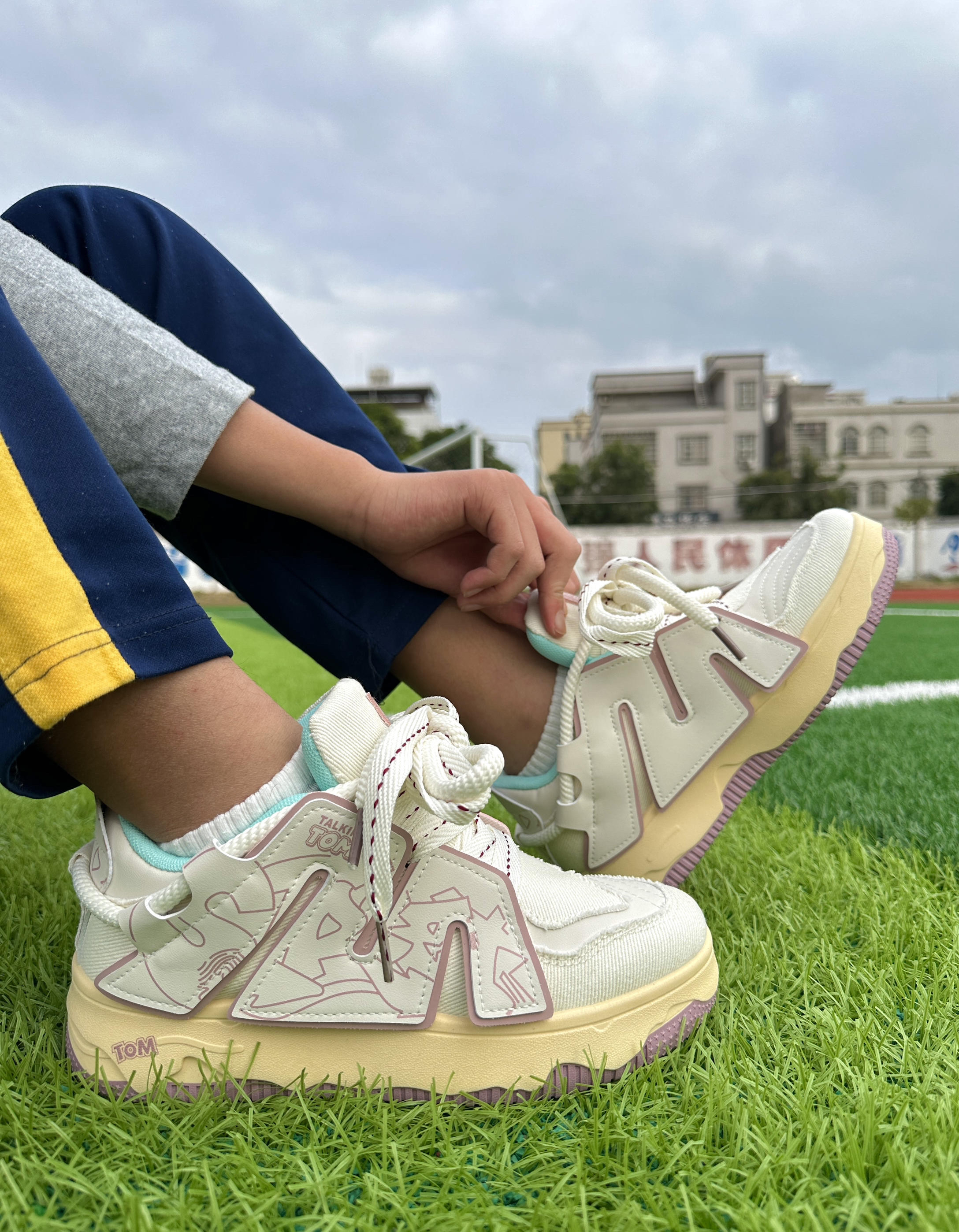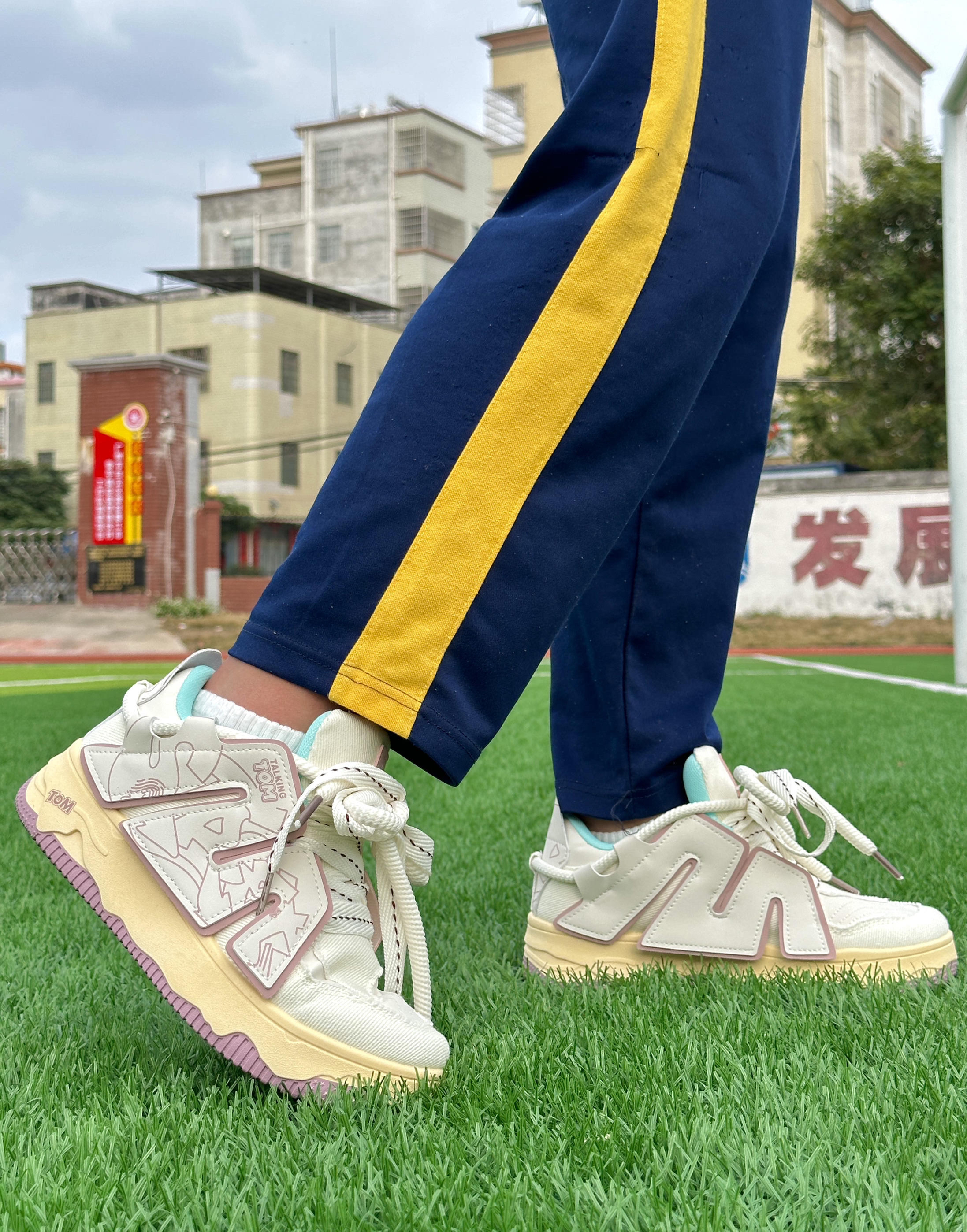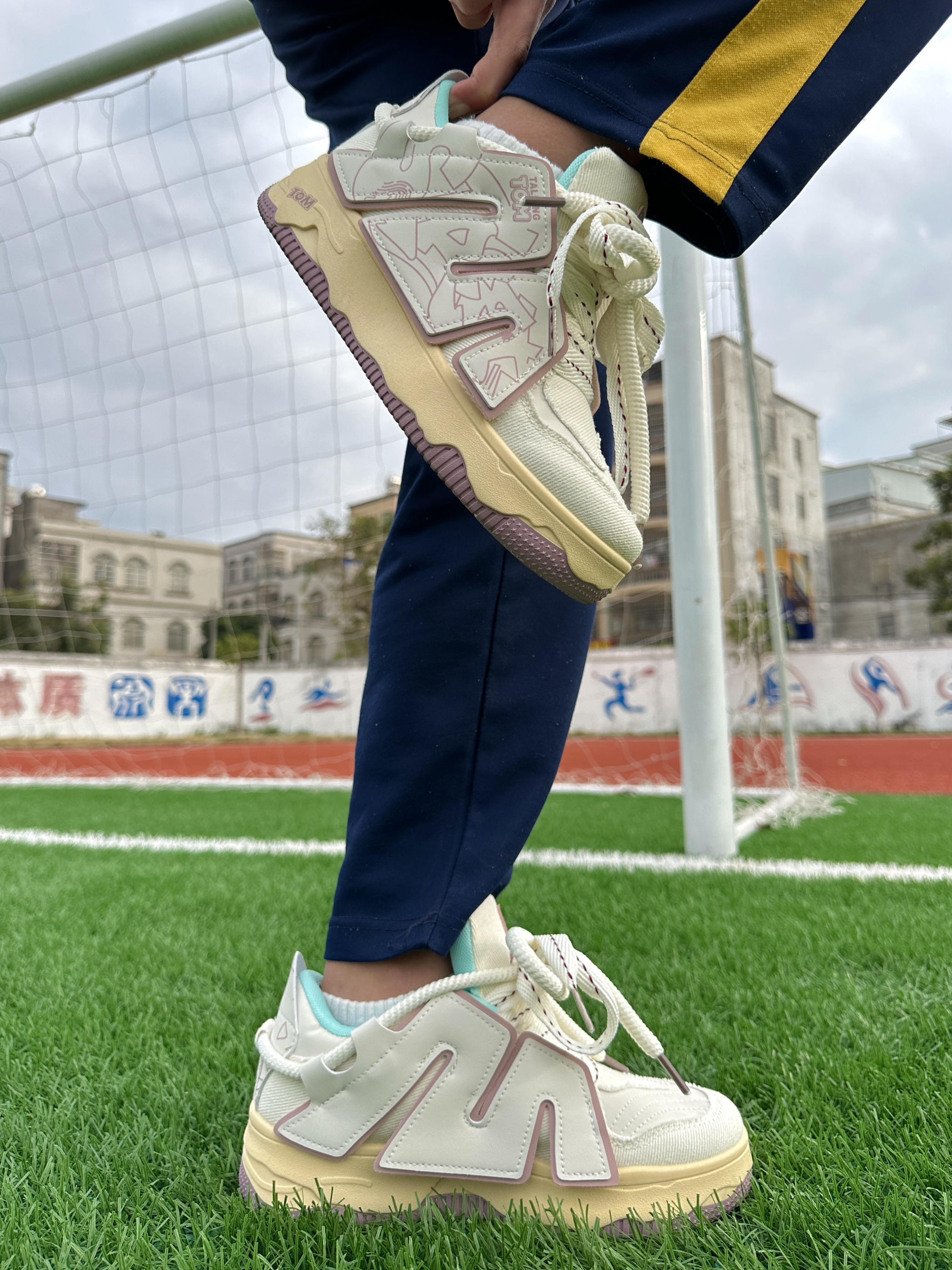 这双白粉色的面包鞋颜值是真的高! 各种配饰的设计感都很有创意 鞋侧大logo增加了整双鞋子的层次感 ➕上外环绕的加粗鞋带 青春潮流的感觉就到位了! 鞋子实际上脚体验包裹感很厚实,很舒适 鞋底还提供了支撑效果 小稍长时间走路也不会有负重感! 而且不会透风,刚好适合较冷的季节穿 价格💯以内! 是一次不错的购物🛒🛍️体验!