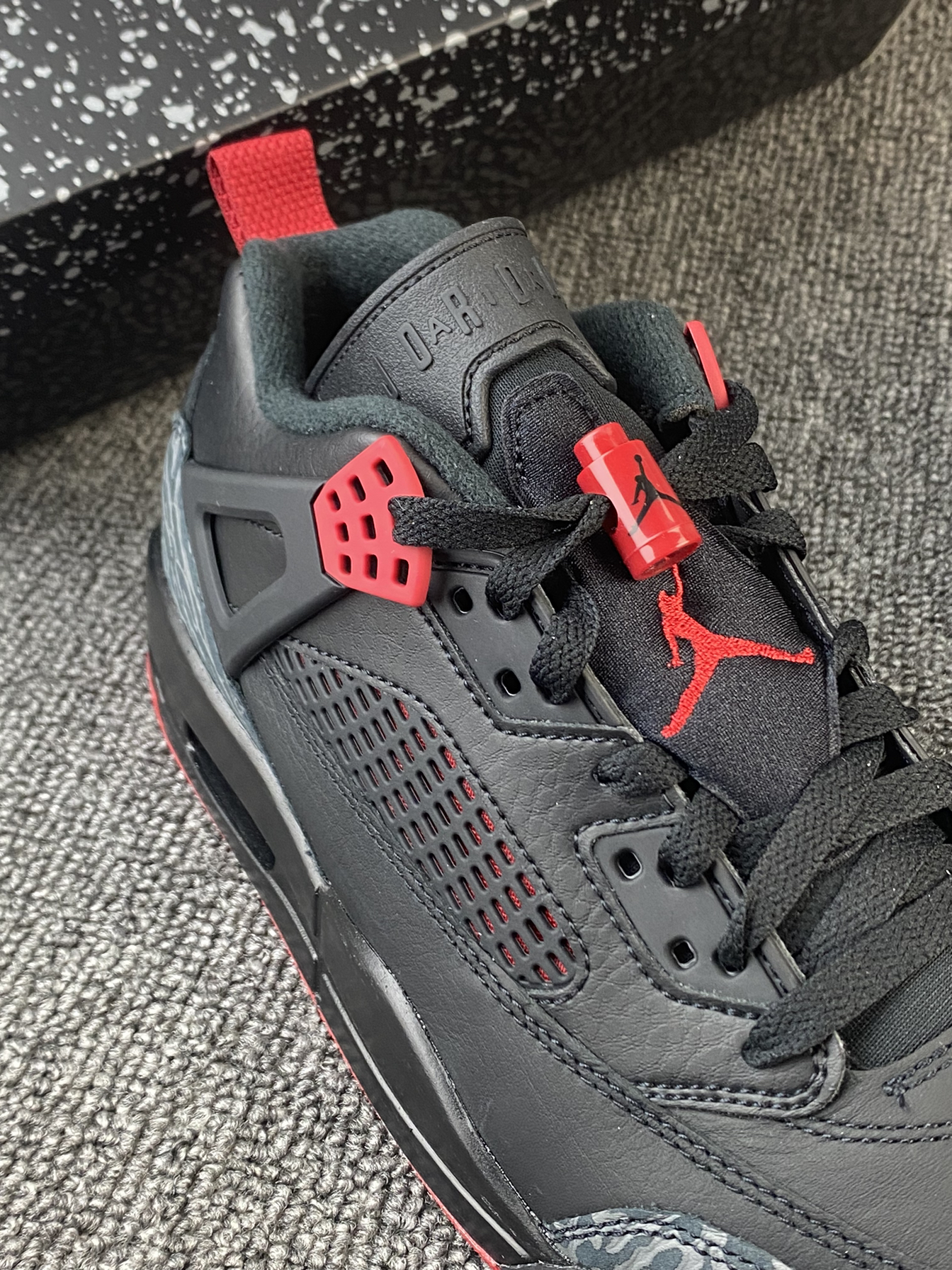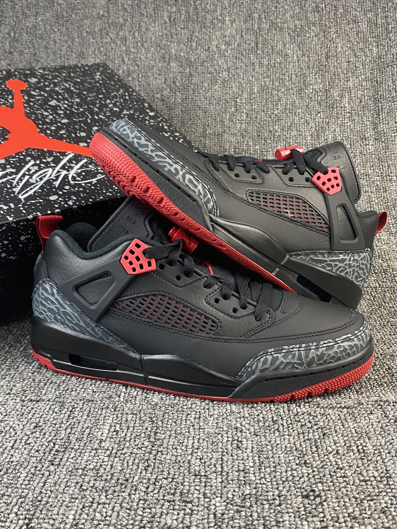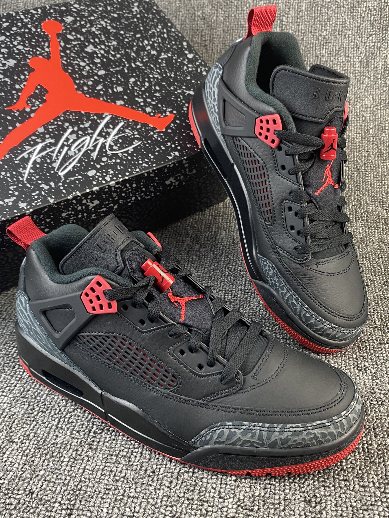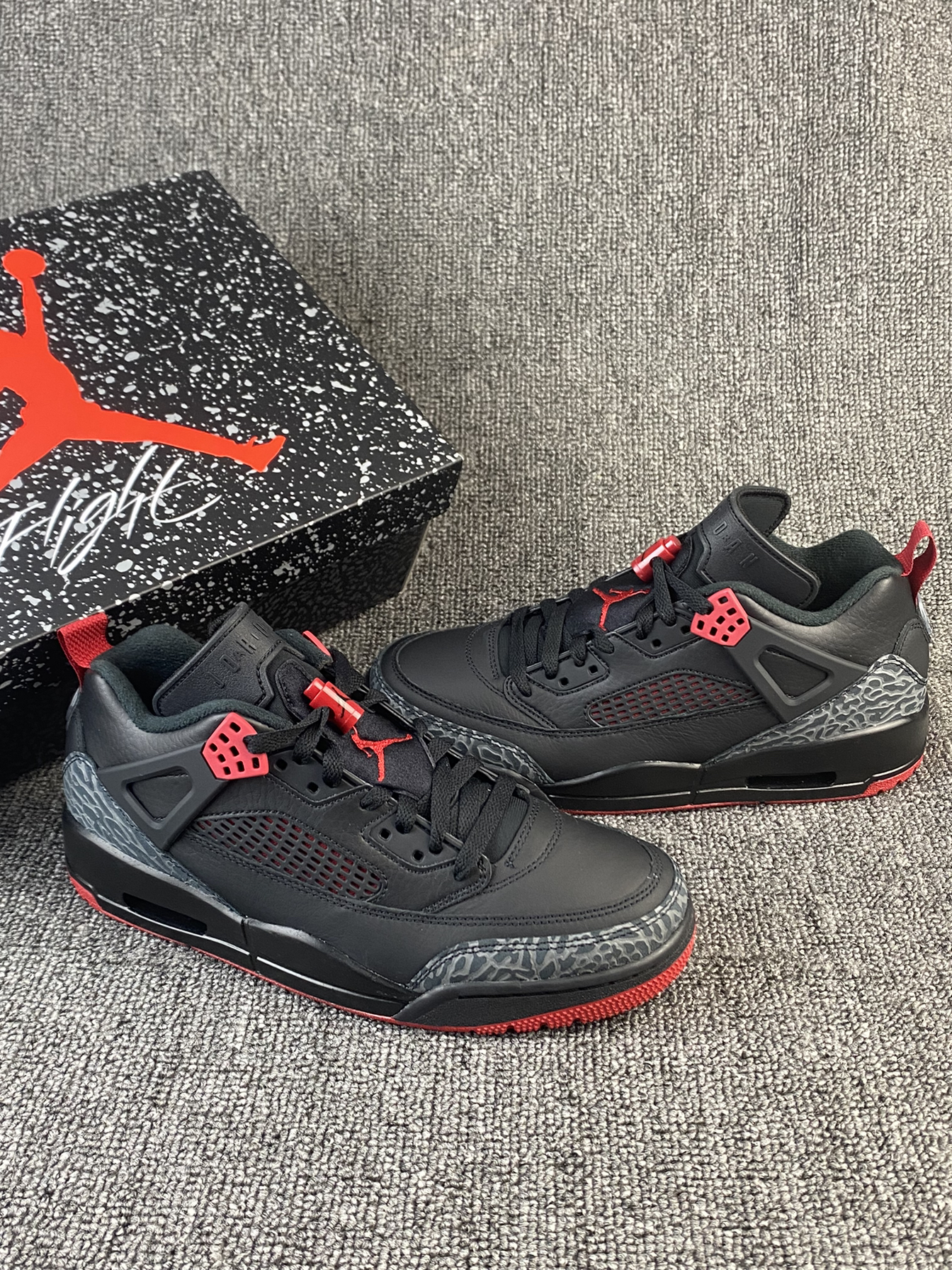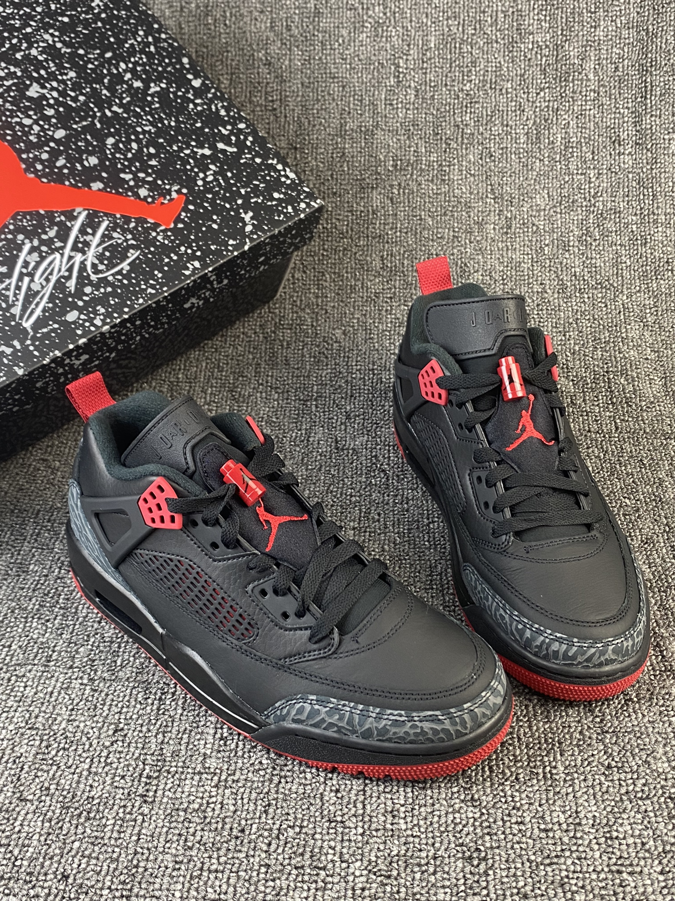👟Jordan Spizike ✨黑红真的很帅气!鞋型是专为大导演斯派克•李打造的,结合了各种的正代AJ元素,很酷也很亮眼。 🌸鞋面是皮革材质,质感很好,日常打理也很方面。鞋型有用到5款AJ元素,整的来看AJ3和AJ4的元素比较明显,一开始到手我还以为是AJ4系列! 💫总的来说鞋子很百搭也很帅气,而且还不易撞款,尺码方面按平常穿的选择就好啦~