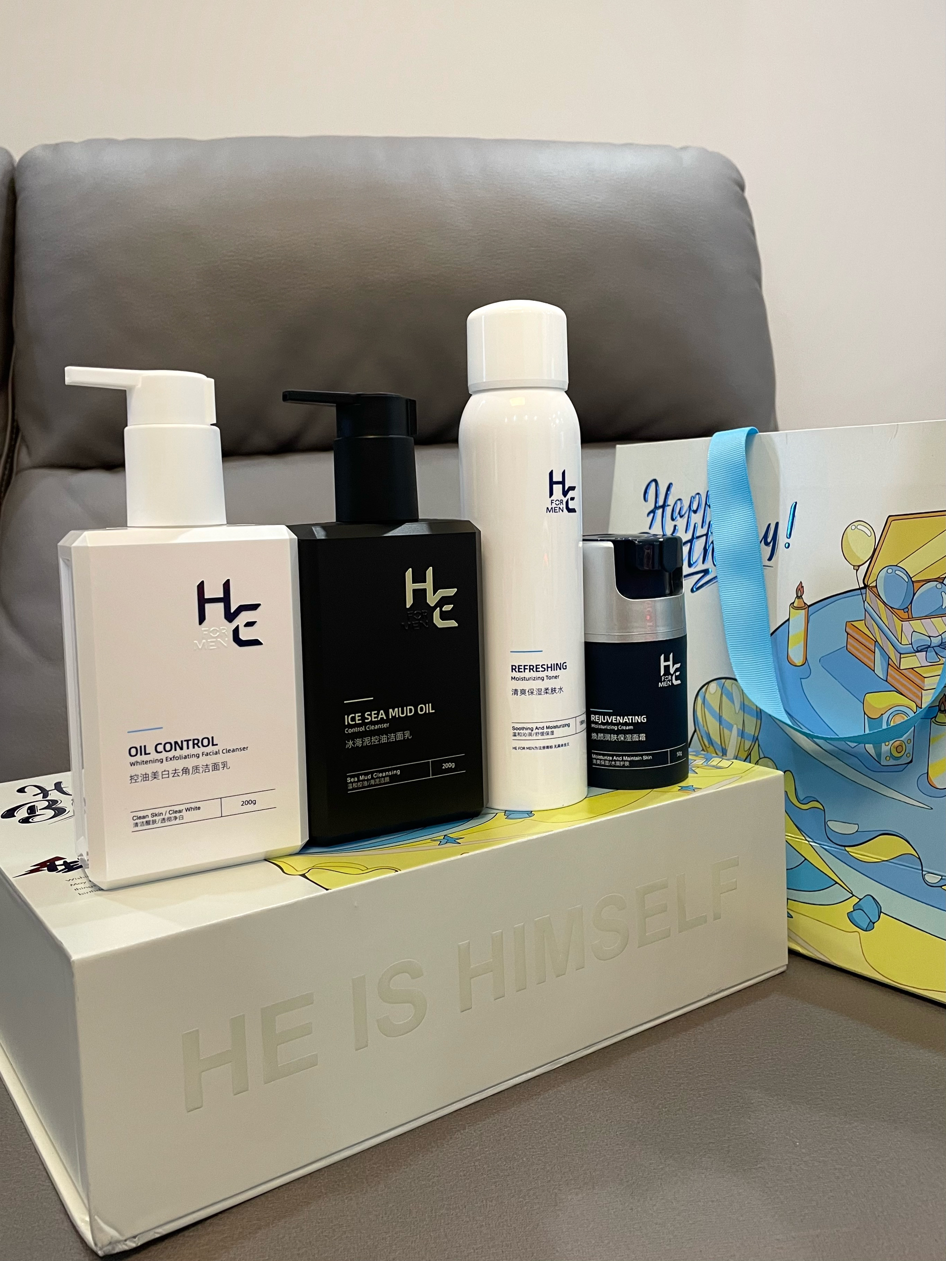 男朋友快要过生日了 礼物早早给他准备好啦 就是这套赫恩生日礼盒 生日氛围感满满 里面有洁面乳、爽肤水、面霜 还贴心的配了一个生日气球 男友早晚用洁面乳洗脸 清洁力就够用! 水和面霜也不油腻 上脸不厚重 才百来块钱 真滴浪漫住了