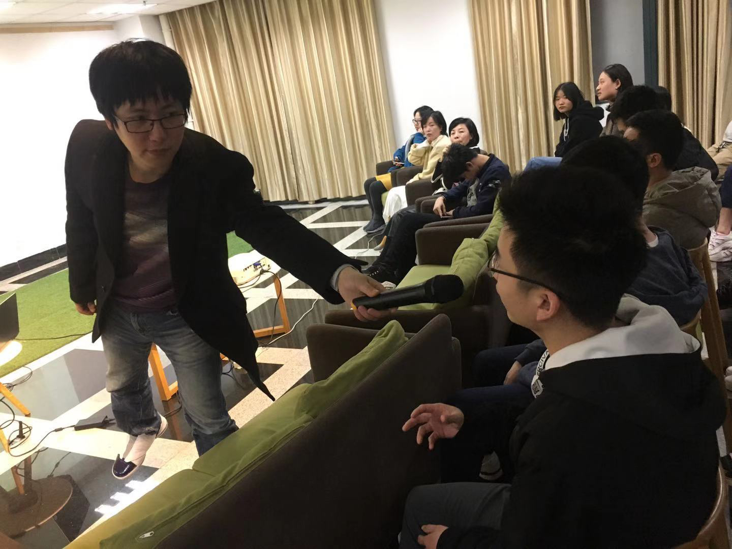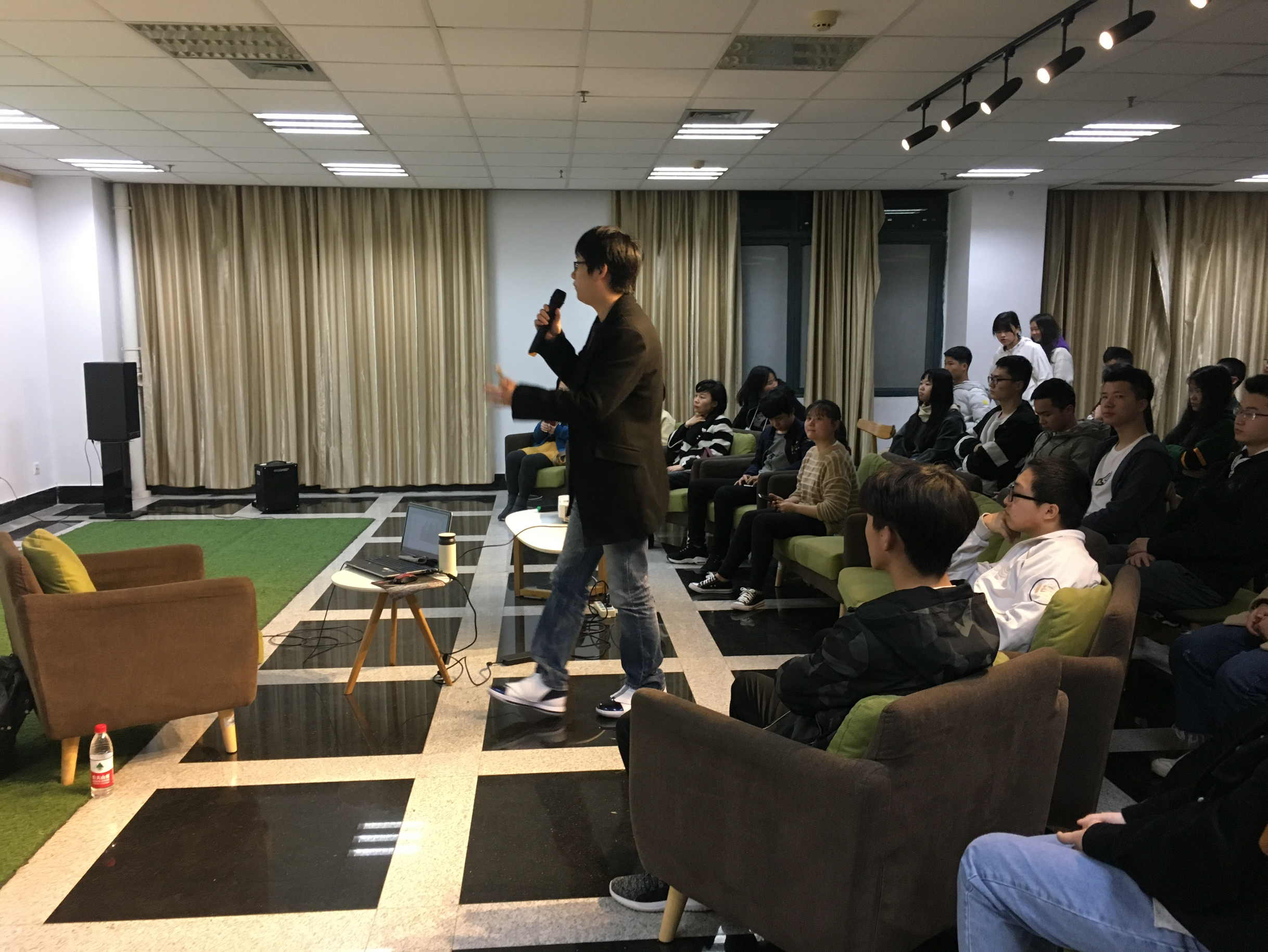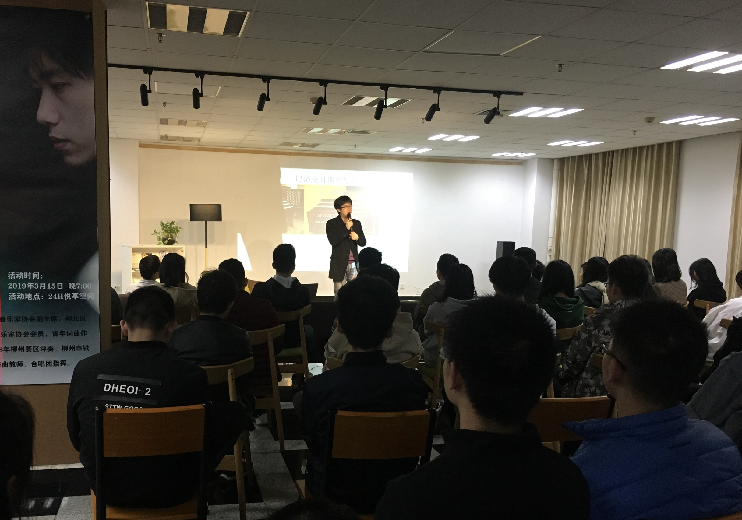 王老师是一位南方小城的高中音乐教师,不才但偶有大学或单位看得上邀请我开办音乐讲座,每次的反响确也不错。这边分享我在讲座上的穿搭。 这次是古典音乐讲座,我身着休闲黑色呢子西装外套搭配牛仔裤,让讲座气氛显得庄重而不失随性,脚上搭配的是个人特别钟爱的Air Jordan 16,鞋套设计与漆皮鞋头完美结合,搭配西装没问题。 当晚的古典音乐讲座圆满结束,这所大学师生们很热情。