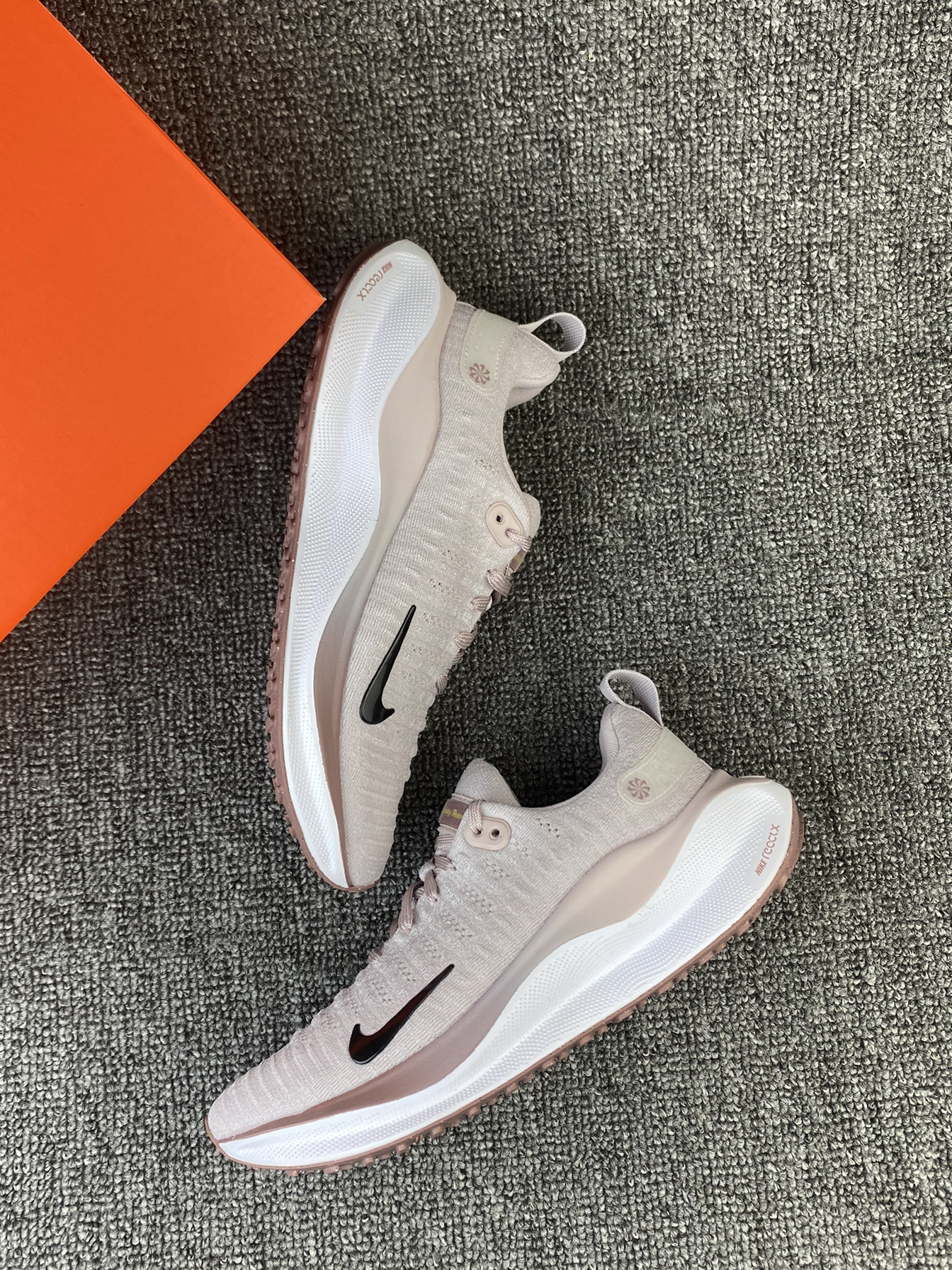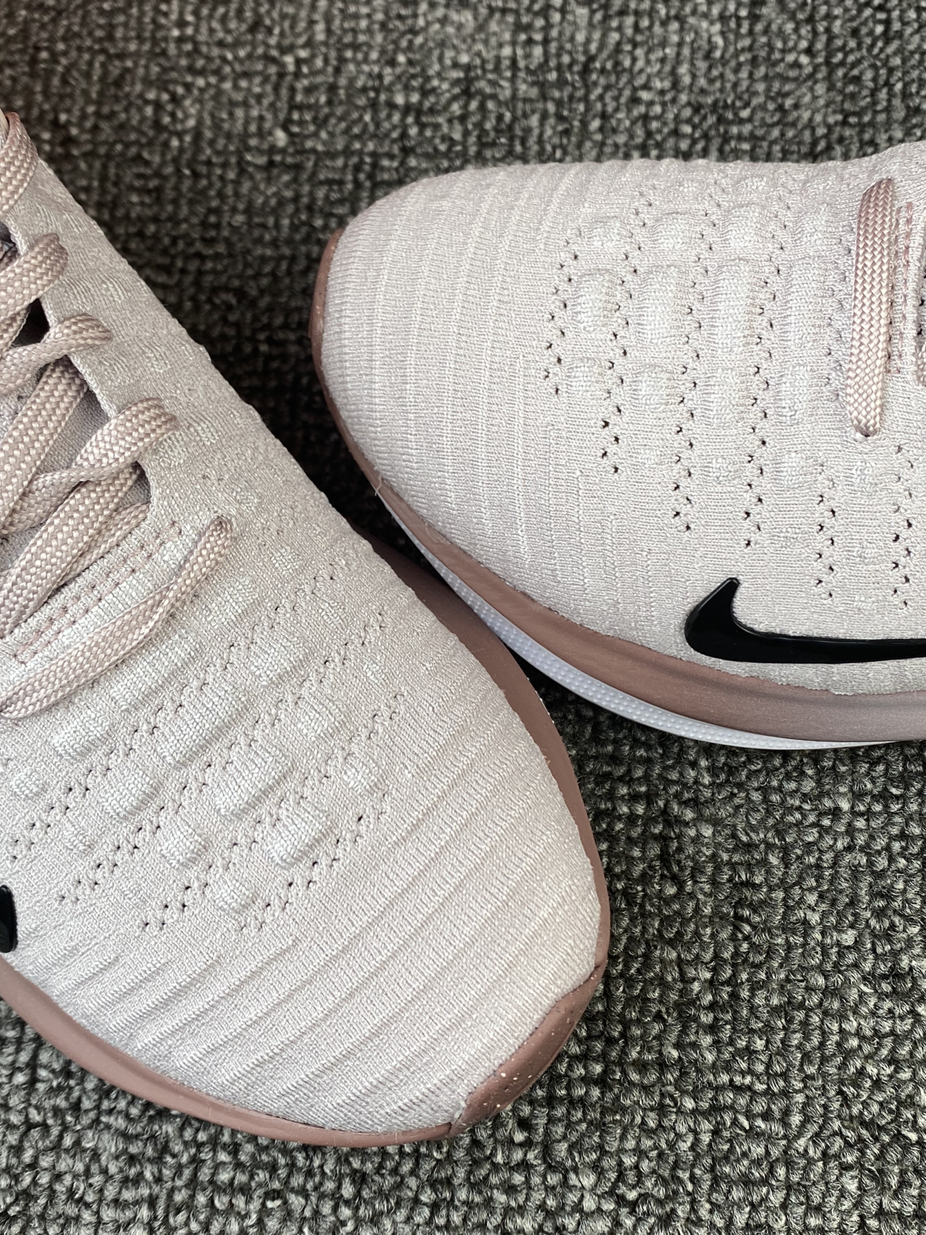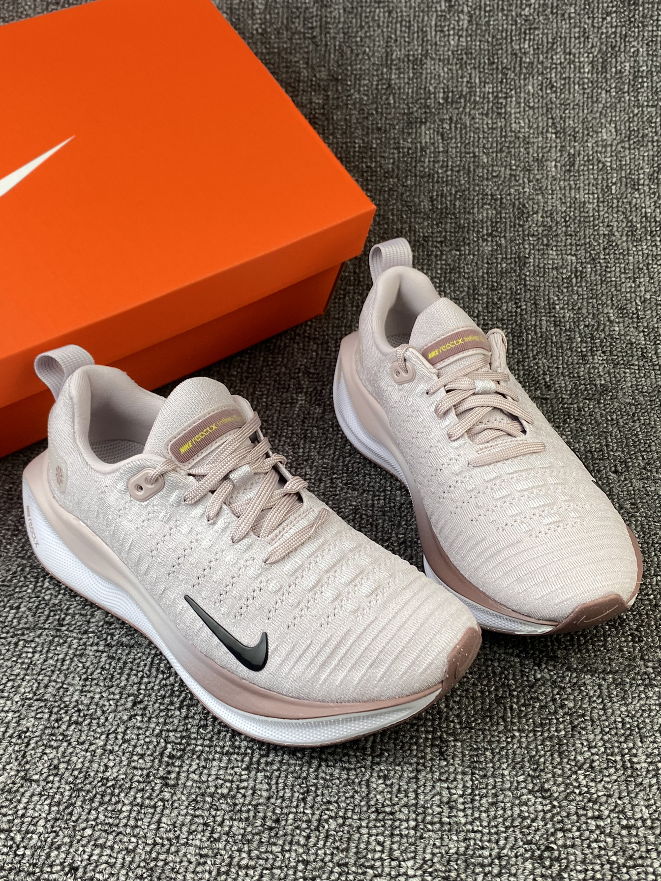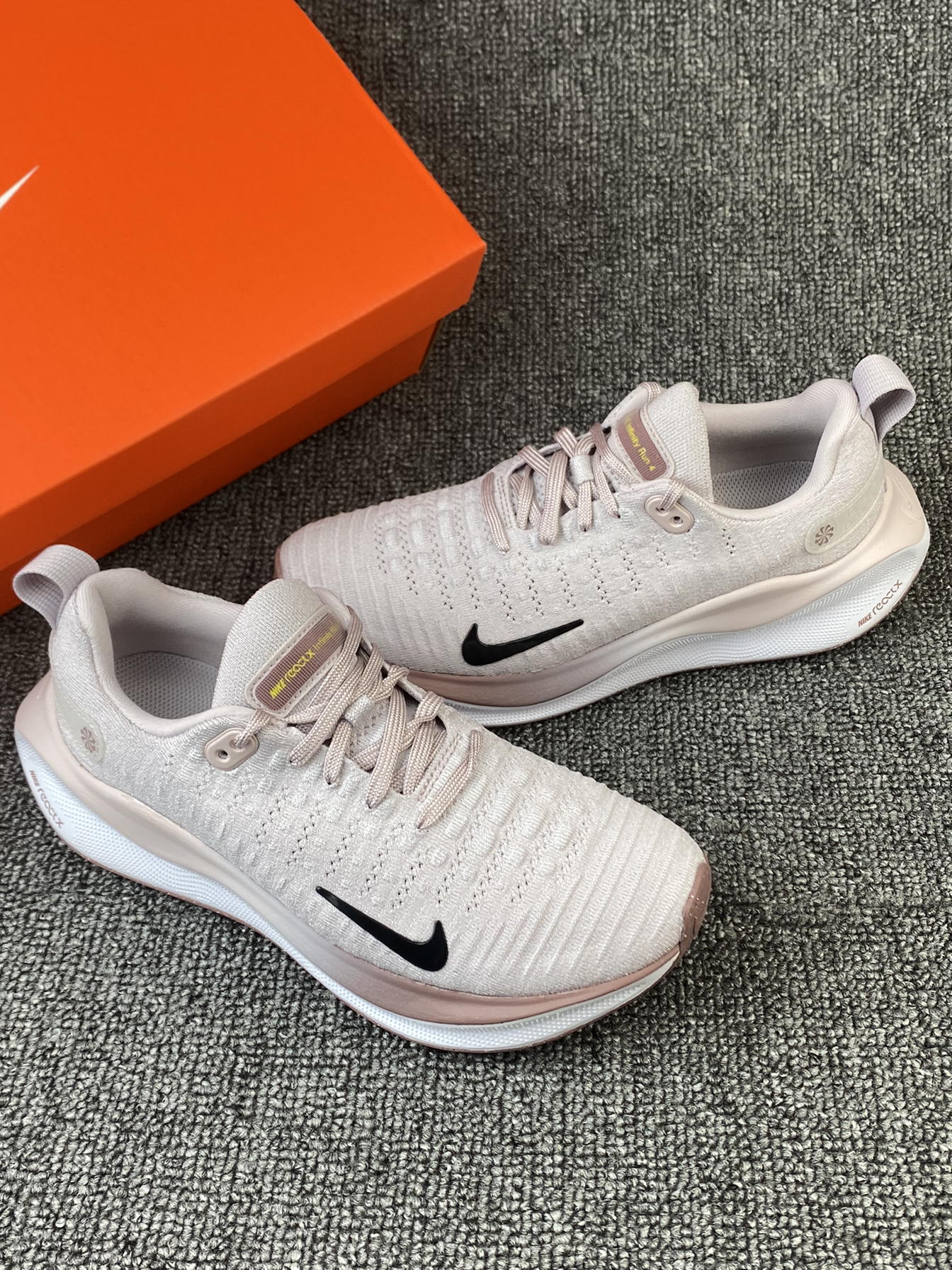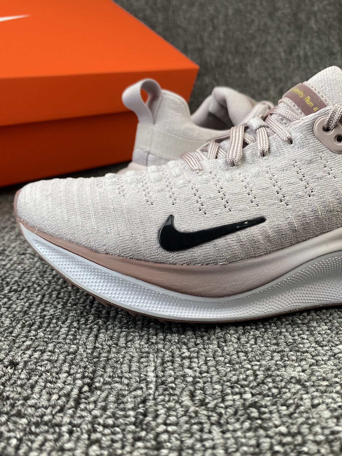 👟Nike Infinity 4 ✨这个脏脏粉太🉑️啦!鞋子是灰粉色为主的,侧边有渐变粉的设计,整体有活力感还有个性! 🌸鞋子鞋面是Flyknit材质,透气性和包裹感我觉得都很好。中底是ReactX泡棉,上脚回弹好舒适,可以明显感受到鞋子带来的缓震感,比较适合慢跑~ 💫尺码方面按平常穿的选择就可以啦~很好穿!