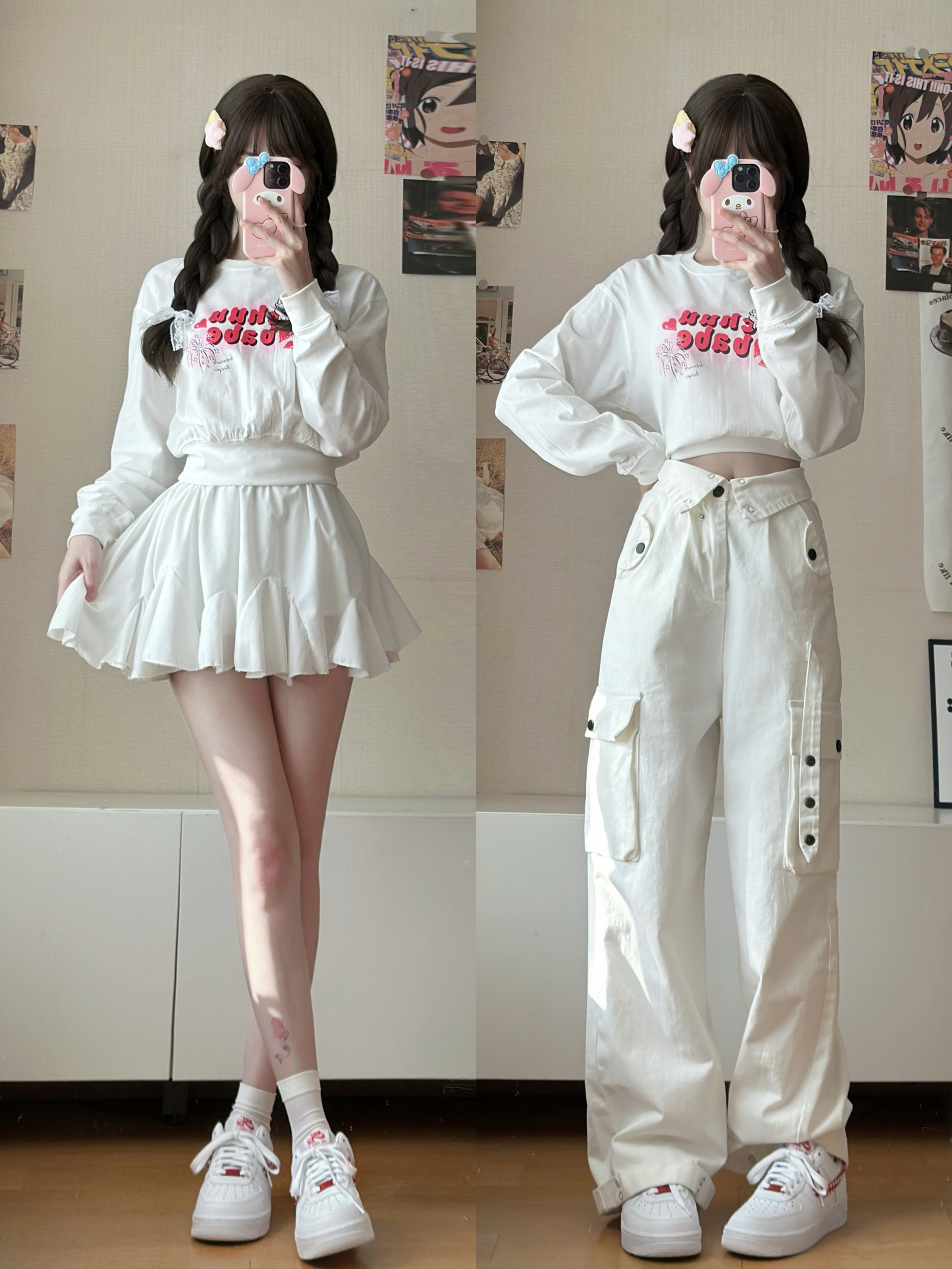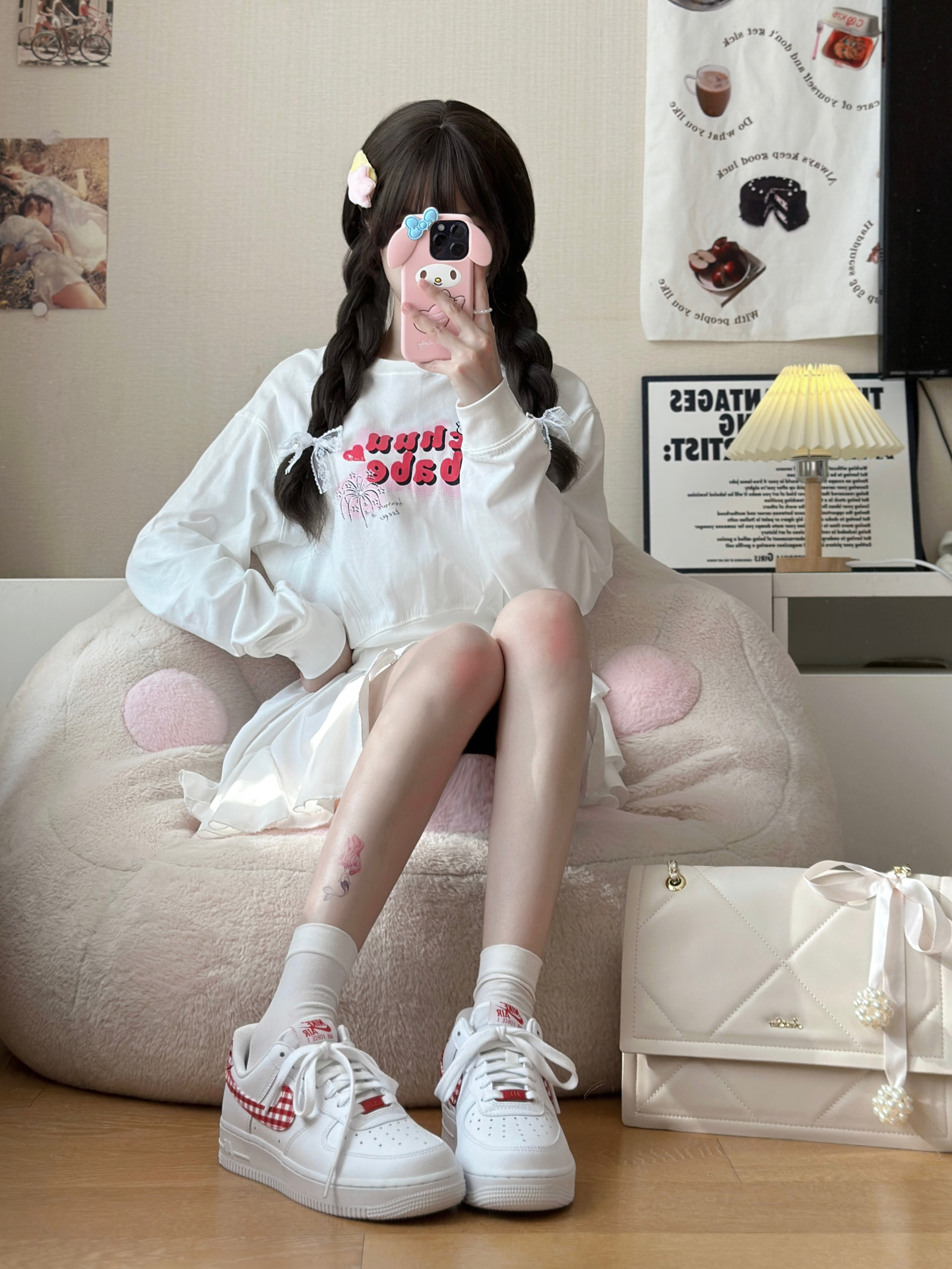 身高|体重:164-42 🧍♂️ 穿搭风格:早春奶呼呼卫衣穿搭 👔 上衣:字母卫衣 👖 下装:小白裙/牛仔裤 👟 鞋子:红白格子空军一号 🎒配饰:小香风链条包