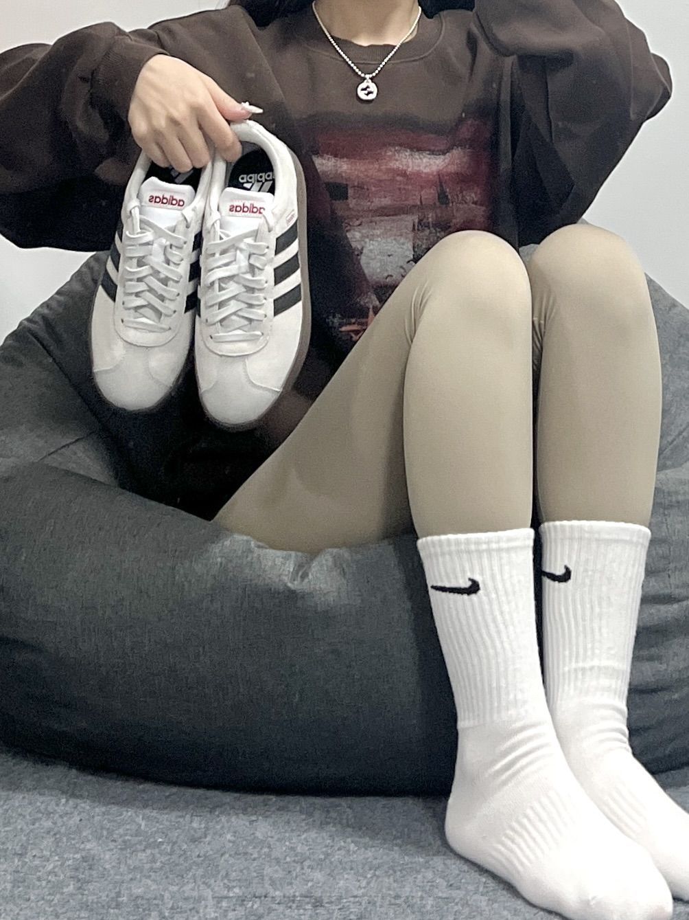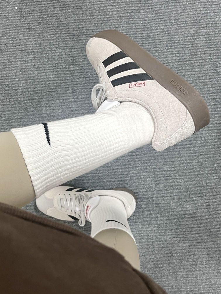 阿迪的这双T头鞋狠狠的拿捏我啦 喜欢美拉德风格的女宝们就这么搭就对啦 麂皮的鞋面质感尊嘟很Nice~ 上脚效果超显腿细 出门上街拍照打卡都炒鸡出片呢 尺码选择正码就好啦