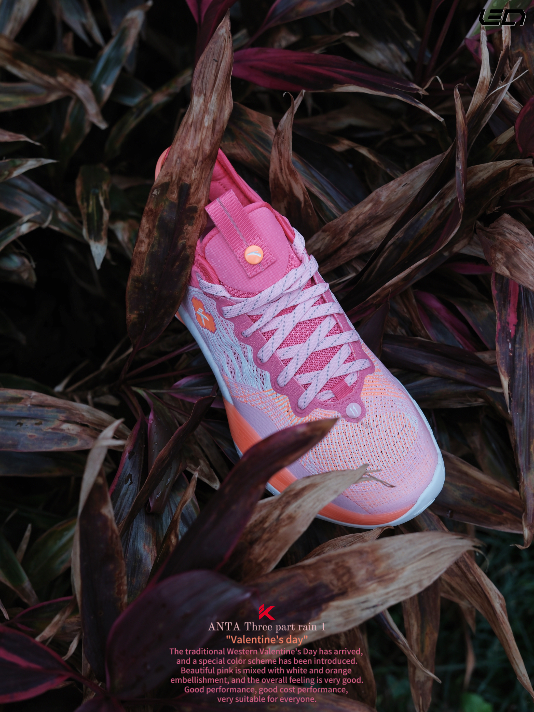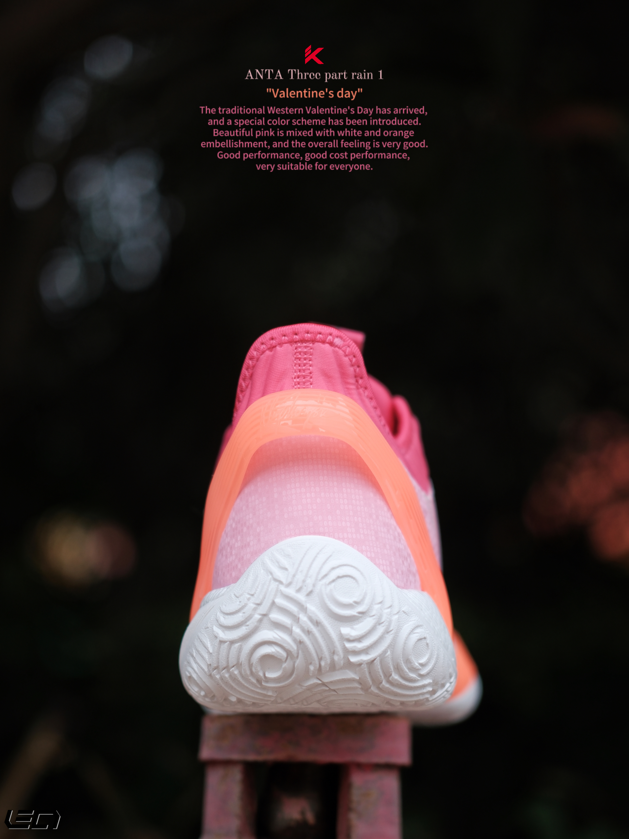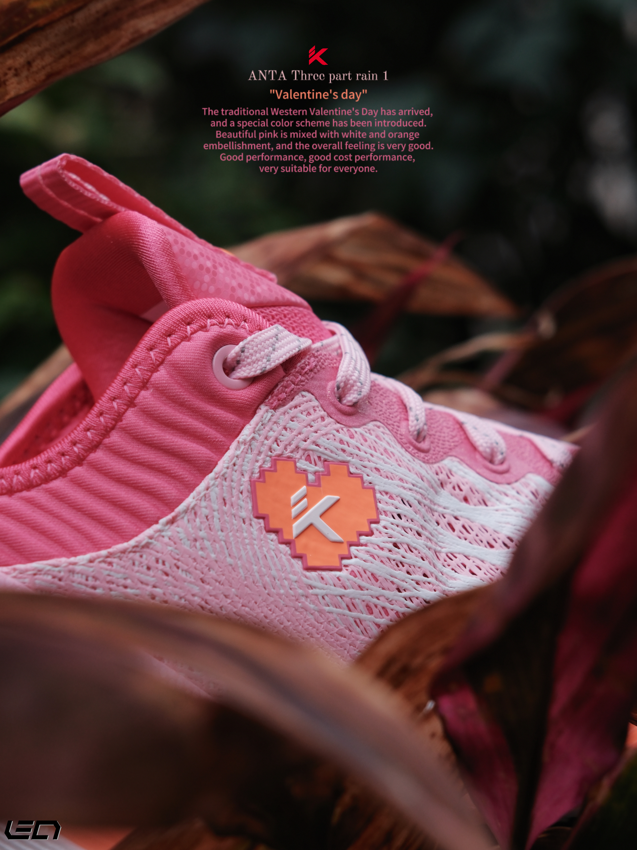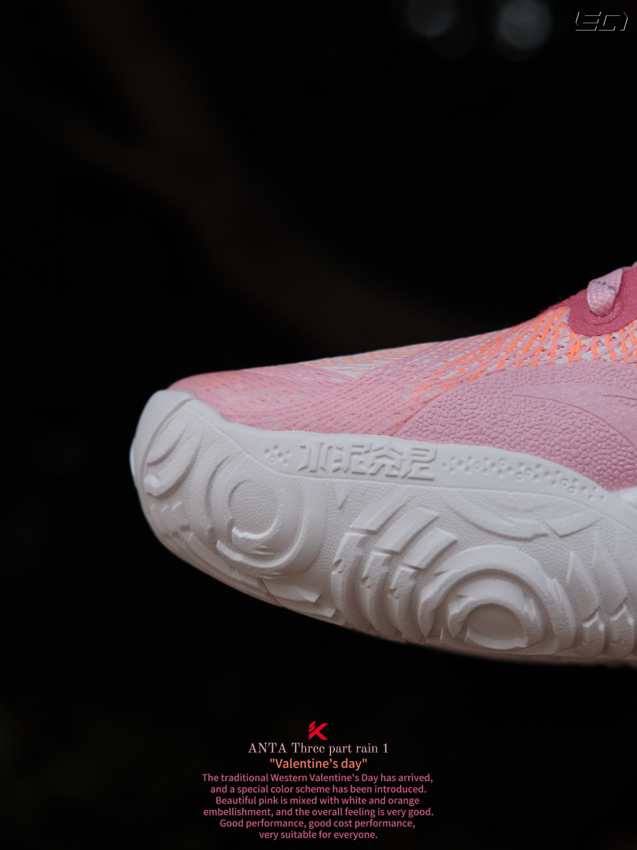 - 只能说这双安踏 三分雨“情人节”配色,真是今年新鞋的标准啦😎好看的高人气配色搭配不错的性能,打球穿是真的挺好看❗ 用了情人节的主题配色粉色搭配了橙色及白色点缀细节,斜侧的“三分雨Logo”也做了情人节的特殊爱心❤️设计,很有意思。 而且这次也做了女款GS码,女孩子也可以穿起来了😎 -