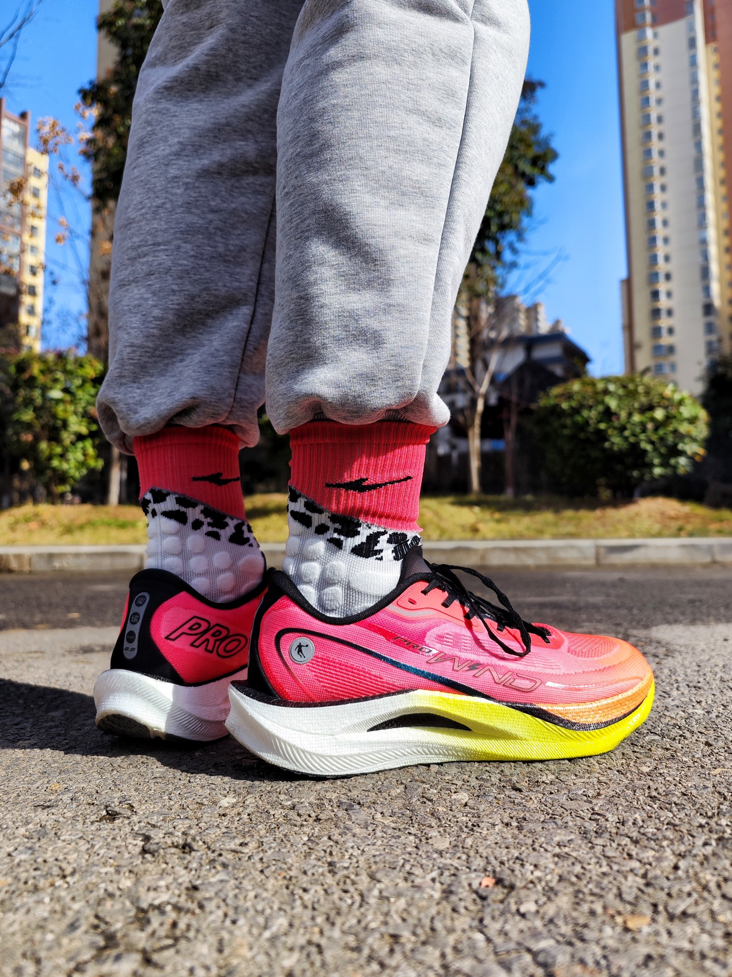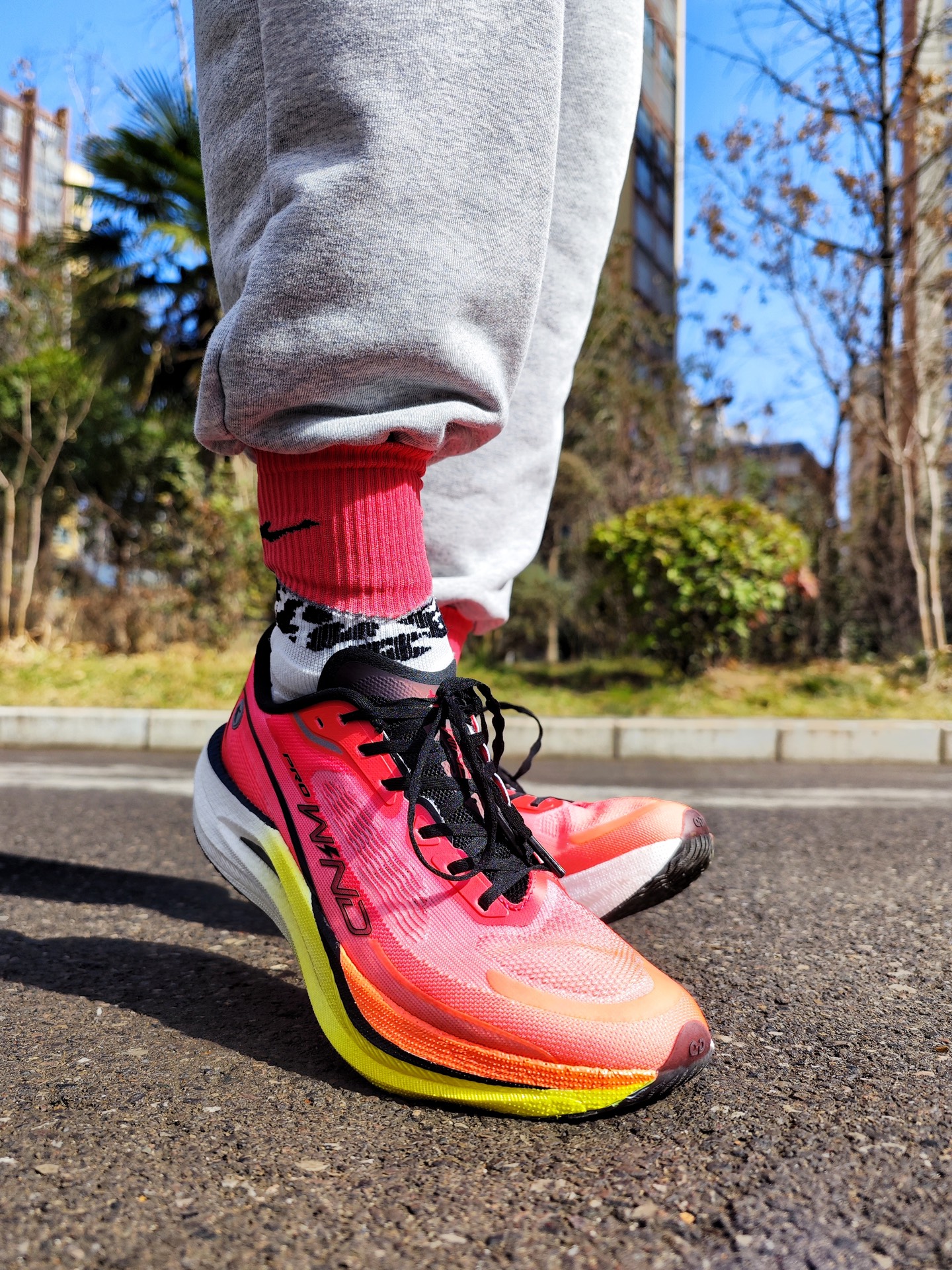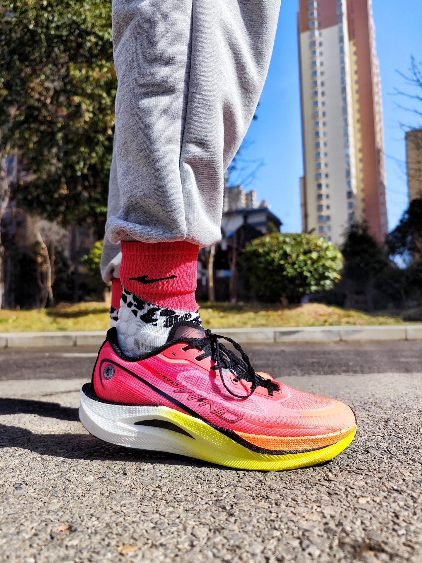 强风2pro是今年第二双让我觉得充满惊喜的鞋子,在于其非常好的楦型、性能、动态感受以及性价比,下面针对以上几点展开谈谈我的感受。 尺码选择:不再像强风SE一样需要买大半码,本身的楦型就是中等偏宽且不磨脚趾,所以按照正常尺码选择,本人脚长265MM选择43码(强风SE选择44)。 楦型:我是瘦脚,中段包裹不错,鞋头位置不算很贴合,瘦脚宽脚都能穿着,特别瘦的脚型甚至可以选择小半码,支撑做的很好,能...