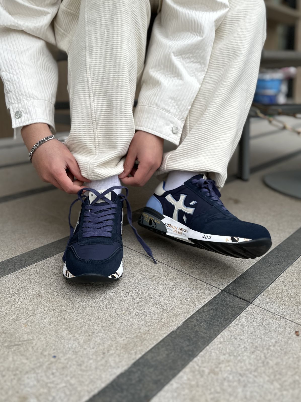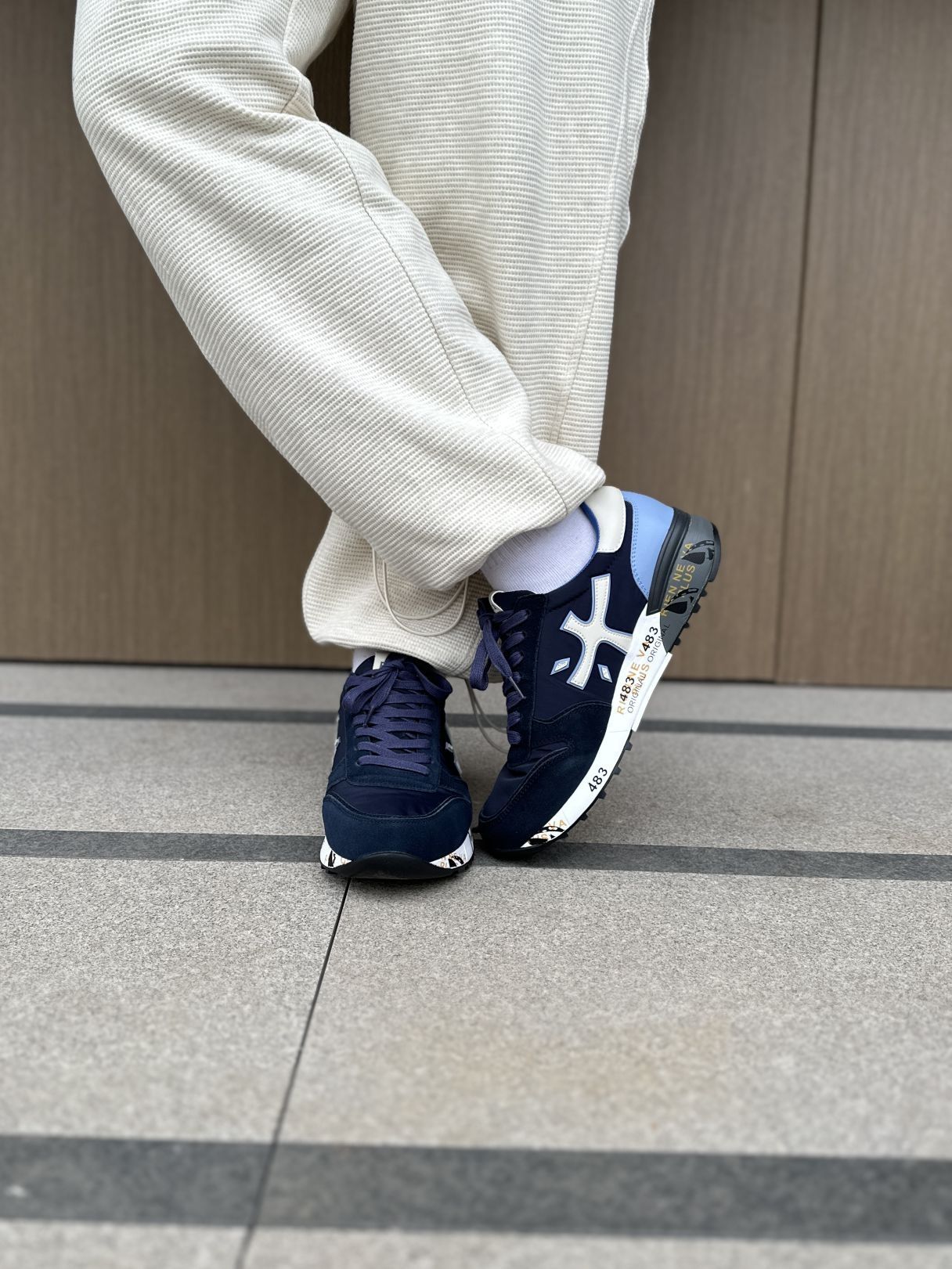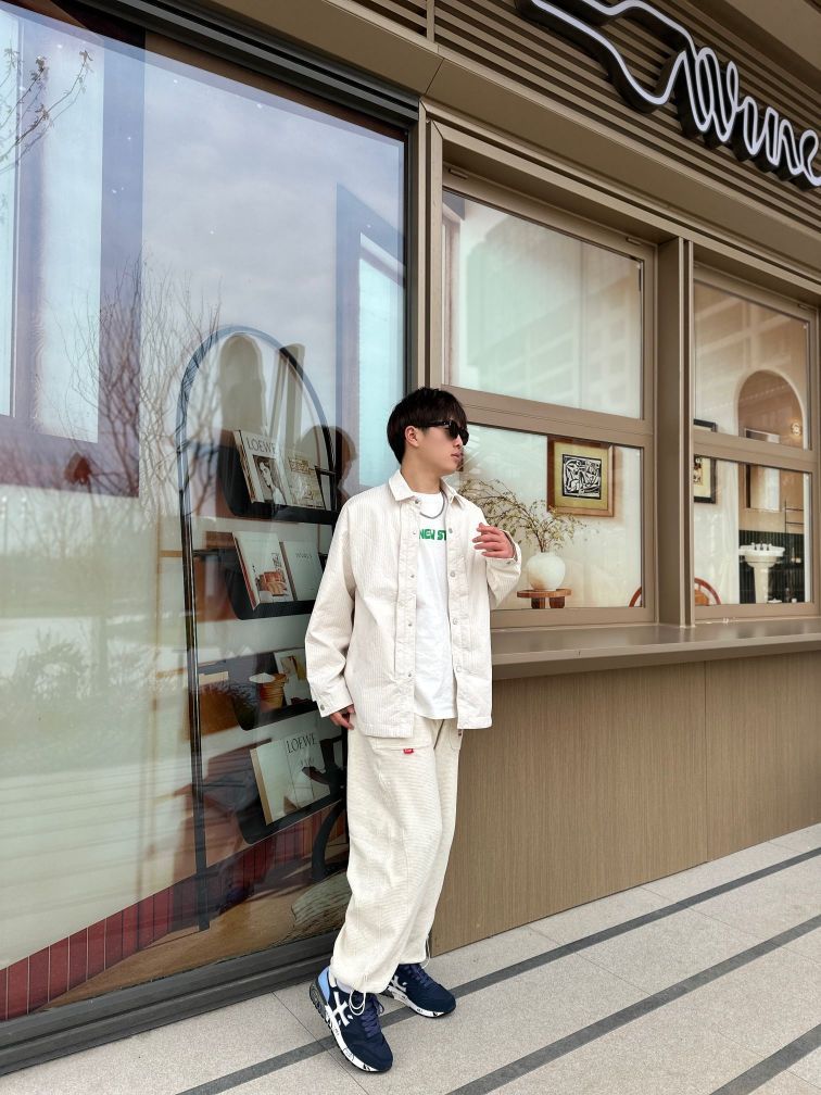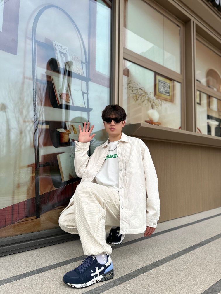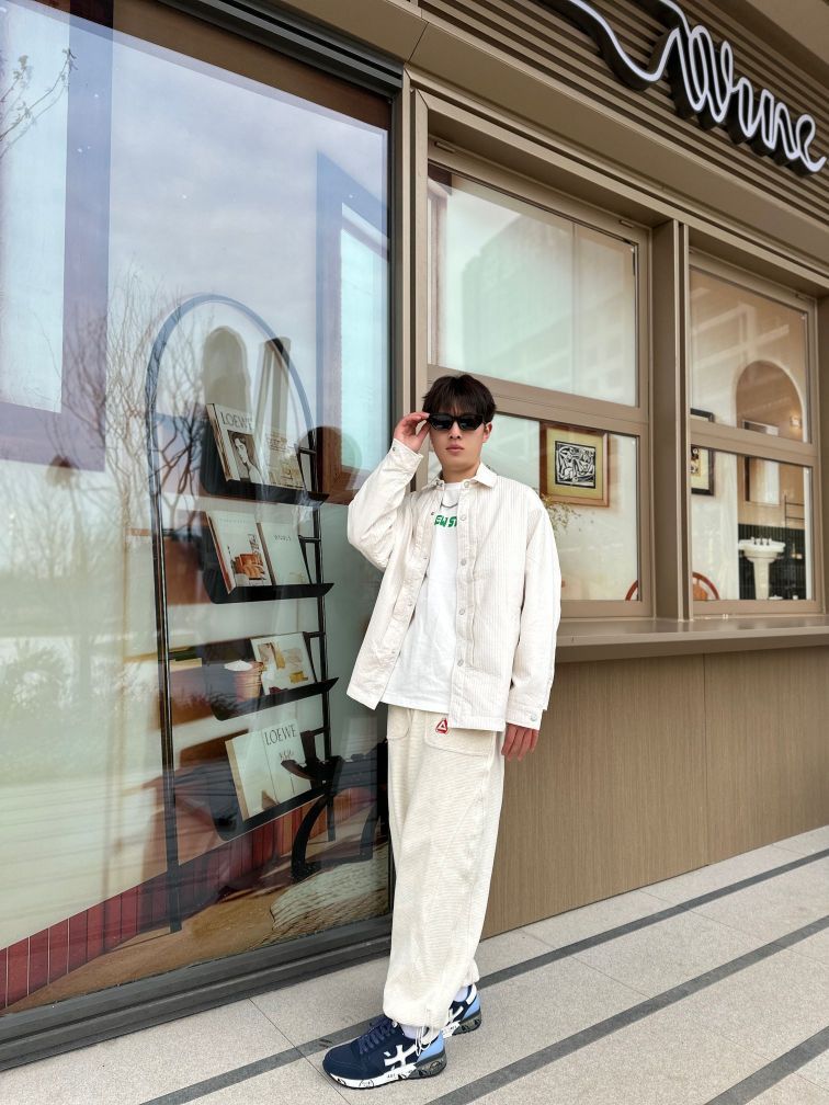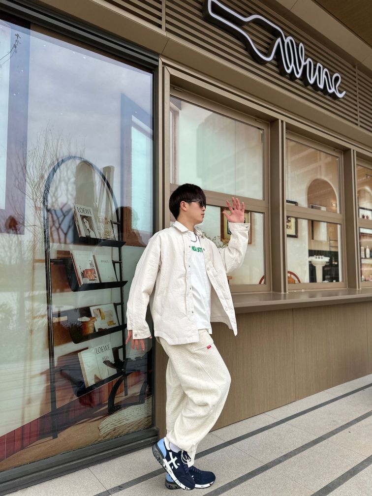 米白色这一套穿搭真的绝了✅ 上身的米白色衬衫搭配选择很多可以外穿,也可以内搭🔥 裤子的版型不挑人❗ 整套穿搭看起来很清爽🤔 搭配上✨PREMIATA的米字运动鞋鞋子穿起来很轻舒适 跑步运动都没有问题! 颜值方面也是没问题的👋