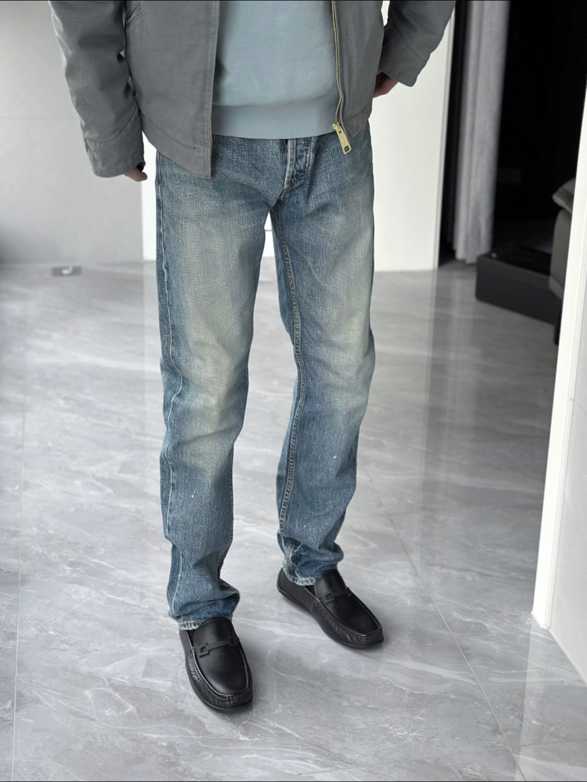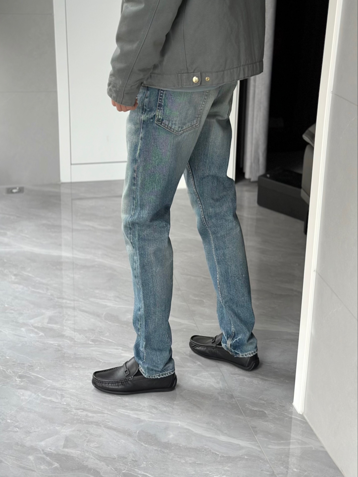 又是穿新鞋的一天 商务休闲两不误 还是第一次穿这种鞋子 脚感也太舒服了 不得不说 搭配牛仔裤还是很好看的 浅色裤子和深色鞋子的对比强烈 更醒目 简洁大方的外观设计 日常通勤好搭配 近期独爱的高颜值通勤鞋 一定是它了