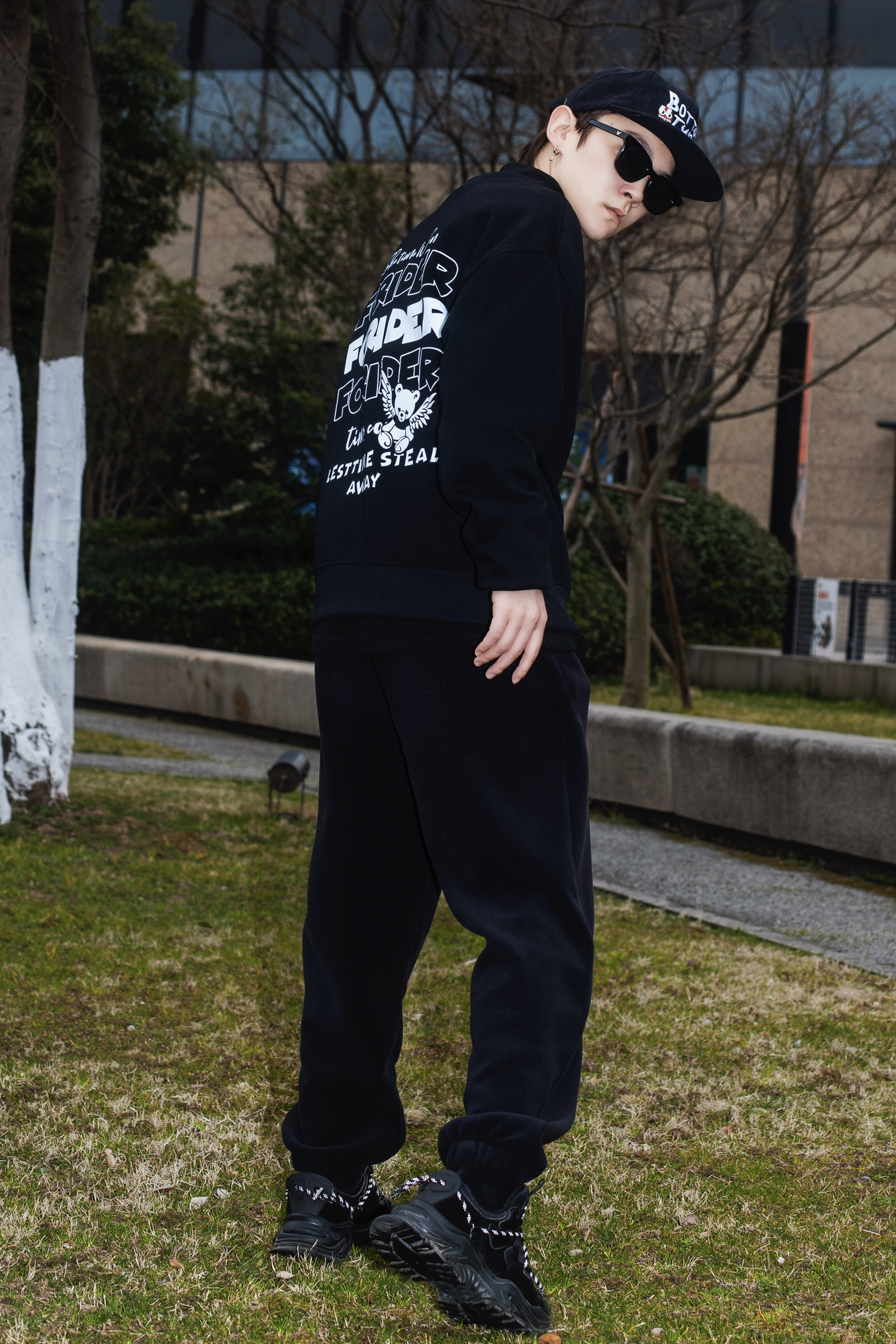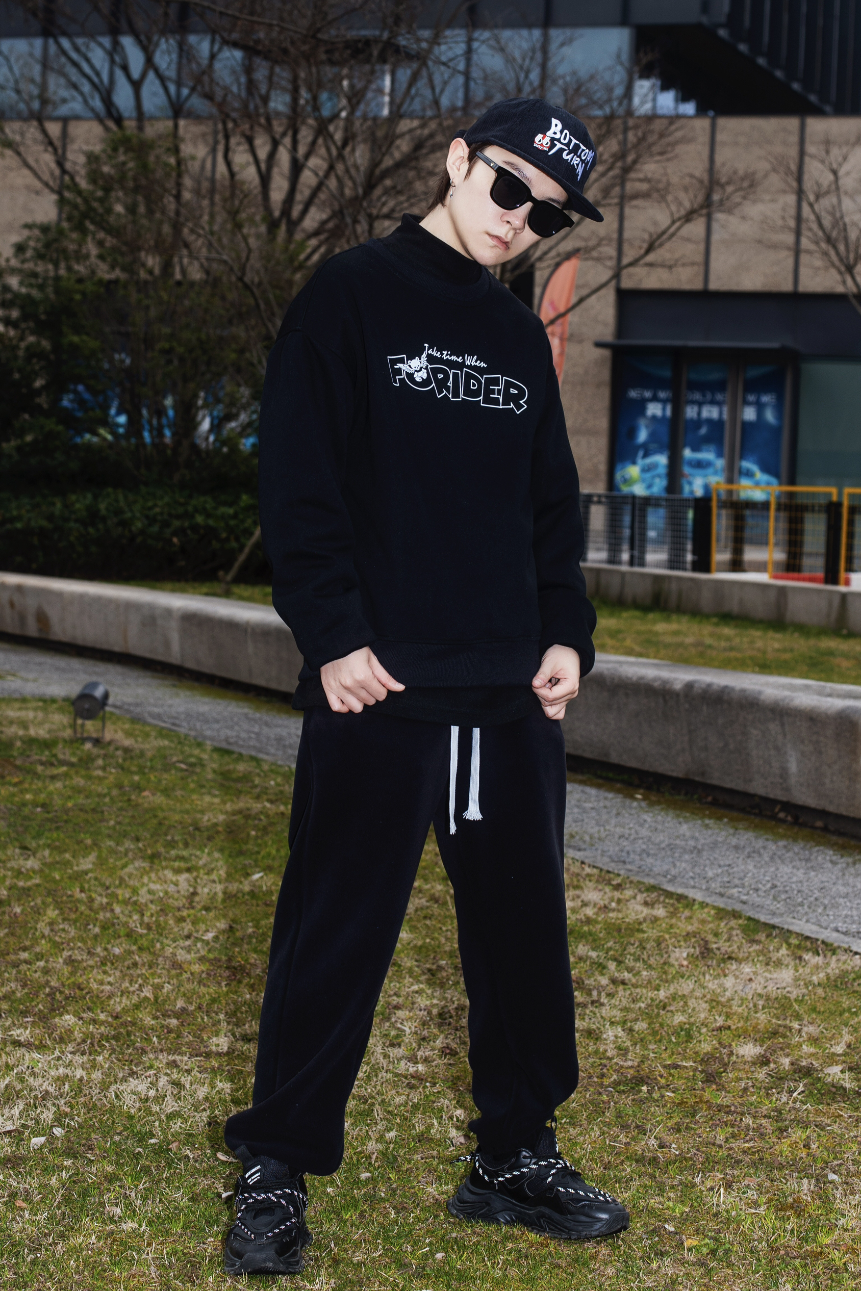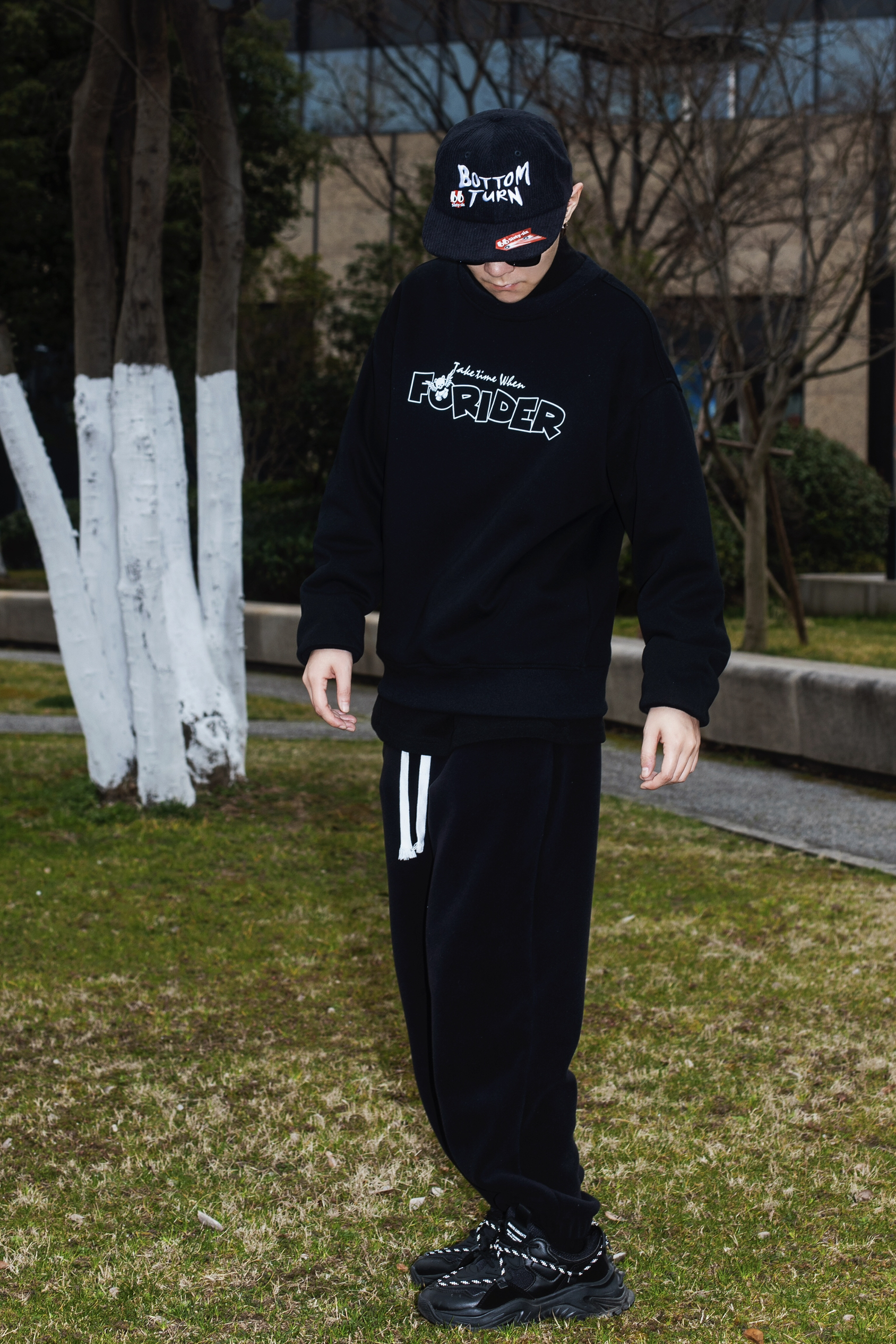 一年四季最百搭当然是卫衣啦 分享我的圆领卫衣穿搭灵感 穿搭指南: 上身一件黑色半高领德绒打底 套一件黑色套头圆领卫衣 叠穿的方式让黑色也有了层次 宽松版型加上复古字母印花logo 休闲自带随性氛围 下身一条黑色运动束脚卫裤 黑色休闲鞋和平檐帽增加一点街头感 日常出街就喜欢这样慵懒的休闲风