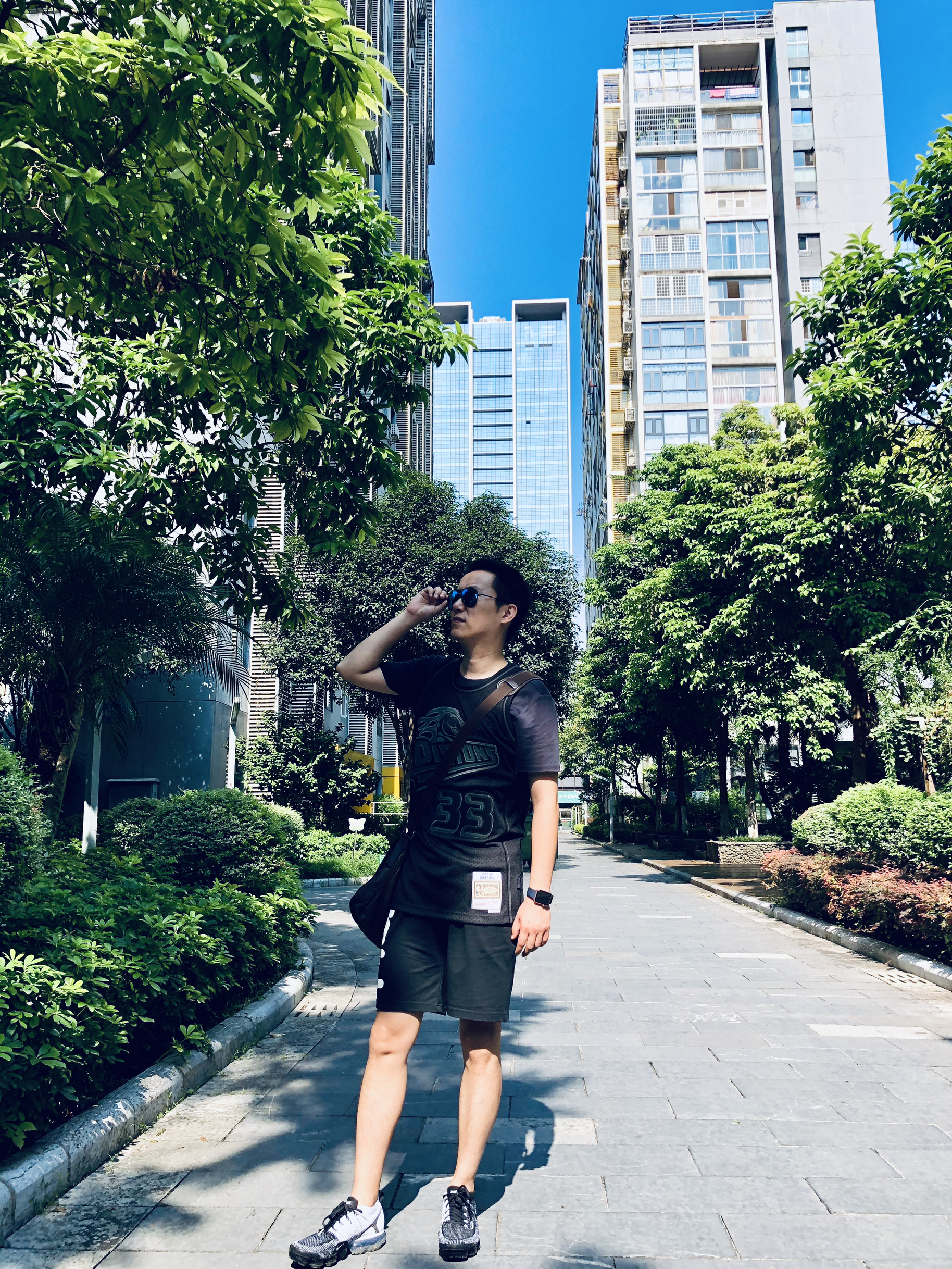 身高|体重:180/70kg 🧍♂️ 穿搭风格:运动 👔 上衣:格兰特希尔活塞球衣 👖 下装:黑色运动短裤 👟 鞋子:adidas Return of mac 🎒配饰:运动单肩包