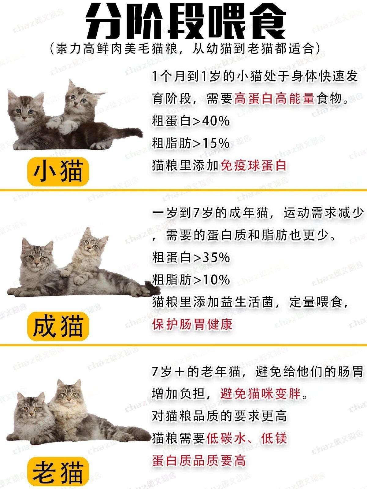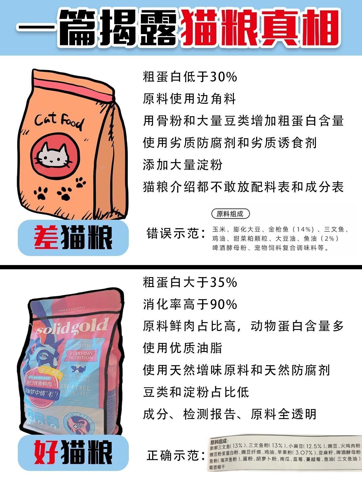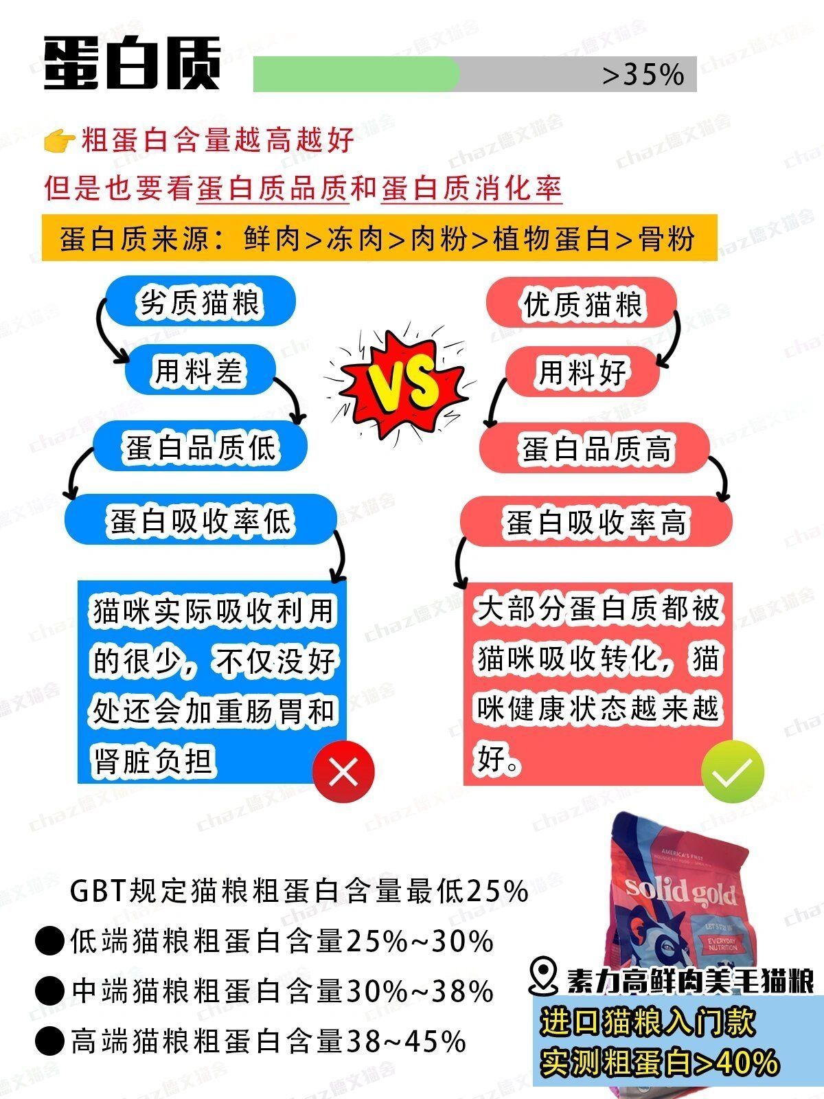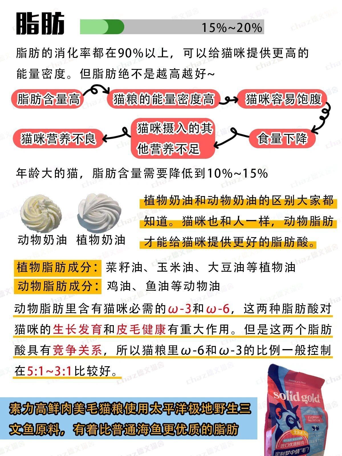 盼星星盼月亮,亚宠展终于要来了!建议赶紧看看我这篇如何挑到好猫粮的方法! 不然一些销售人员分分钟骗你当大冤种好猫粮的关键就在原料上粗蛋白不能只看数据高不高更重要的是看蛋白质品质好不好 消化率高不高 如果猫粮里大量使用植物蛋白和劣质原料 粗蛋白数据高对猫咪的肠胃肾脏反而是负担 因为猫咪根本无法消化 能吸收的蛋白才是好蛋白! 粗脂肪也不是越低越健康或者越高越营养 正常猫:15%~20%;减肥猫:9...